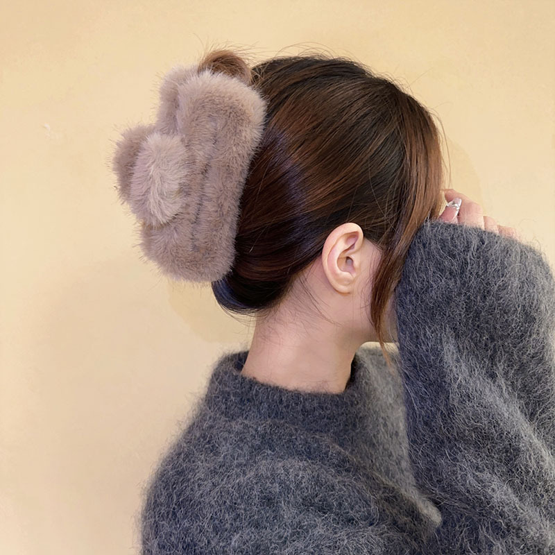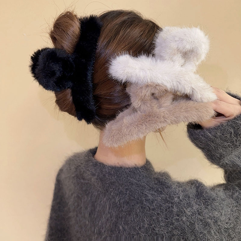 고급 센스 밍크 헤어 클립 여성의 가을과 겨울 헤어 클립 백 헤드 웨이브 헤어 클립 대형 헤어 클립 상어 클립