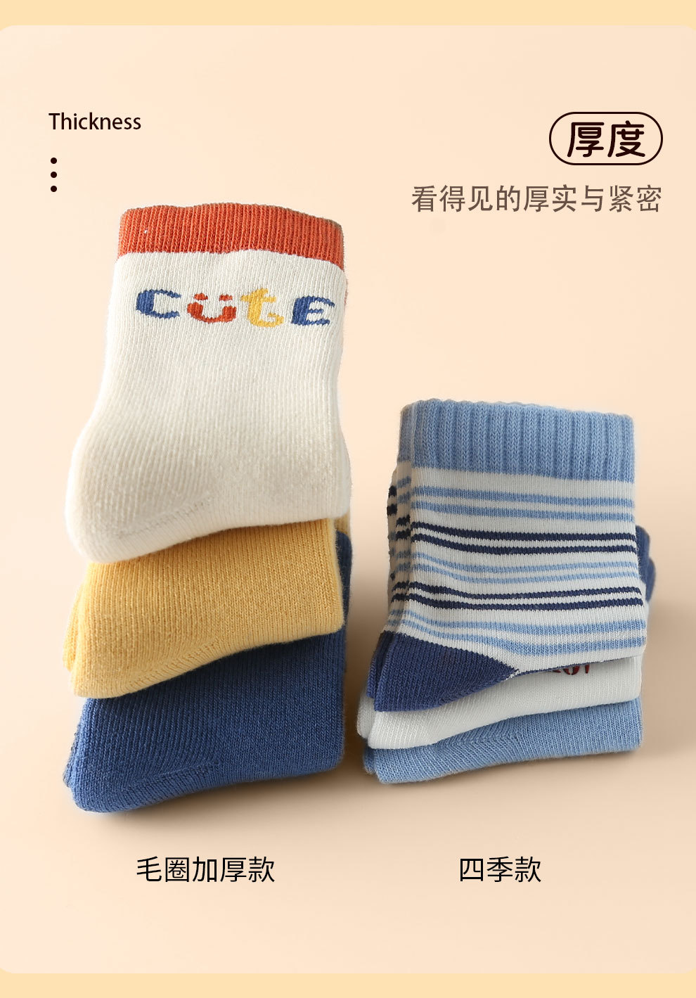 가을과 겨울 새로운 두꺼운 소년 양말 땀 흡수 따뜻한 어린이 수건 양말 면 아기 테리 양말