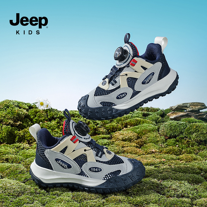 Jeep Jeep 여아 운동화 2025 봄, 가을 새로운 버튼 어린이 미끄럼 방지 등산 신발 소년 운동화