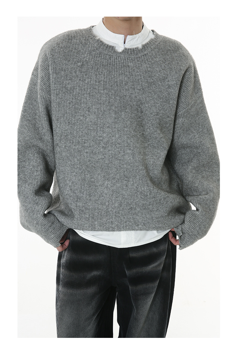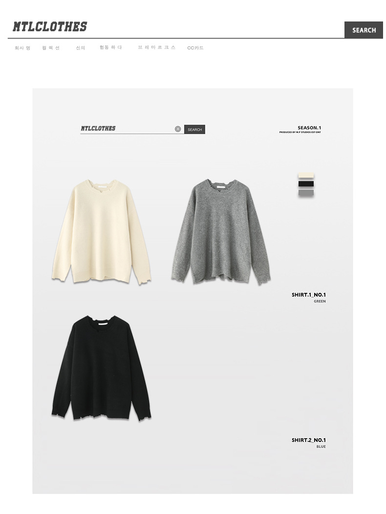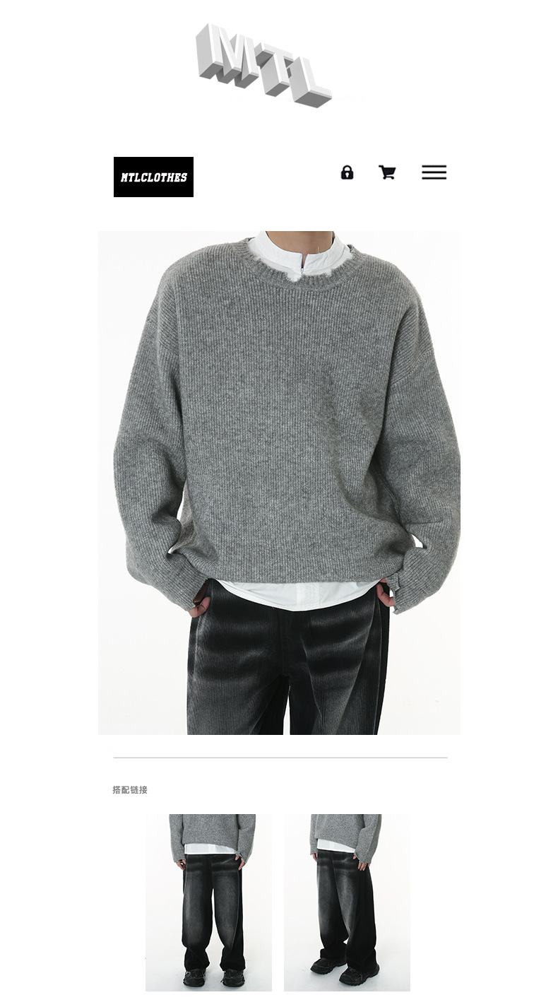 MTLCLOTHES 남성복 | 한국 스타일의 인스 감성, 레이지 스타일, 불규칙한 칼라 니트 스웨터, 긴 소매, 루즈핏, 캐주얼스토어 가기