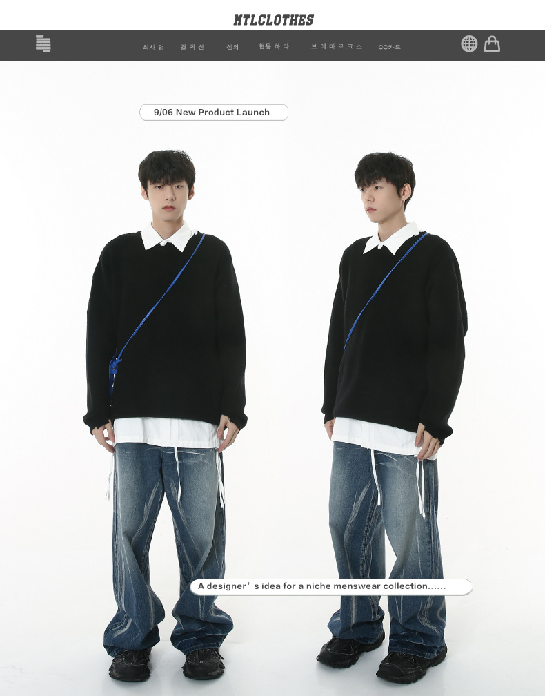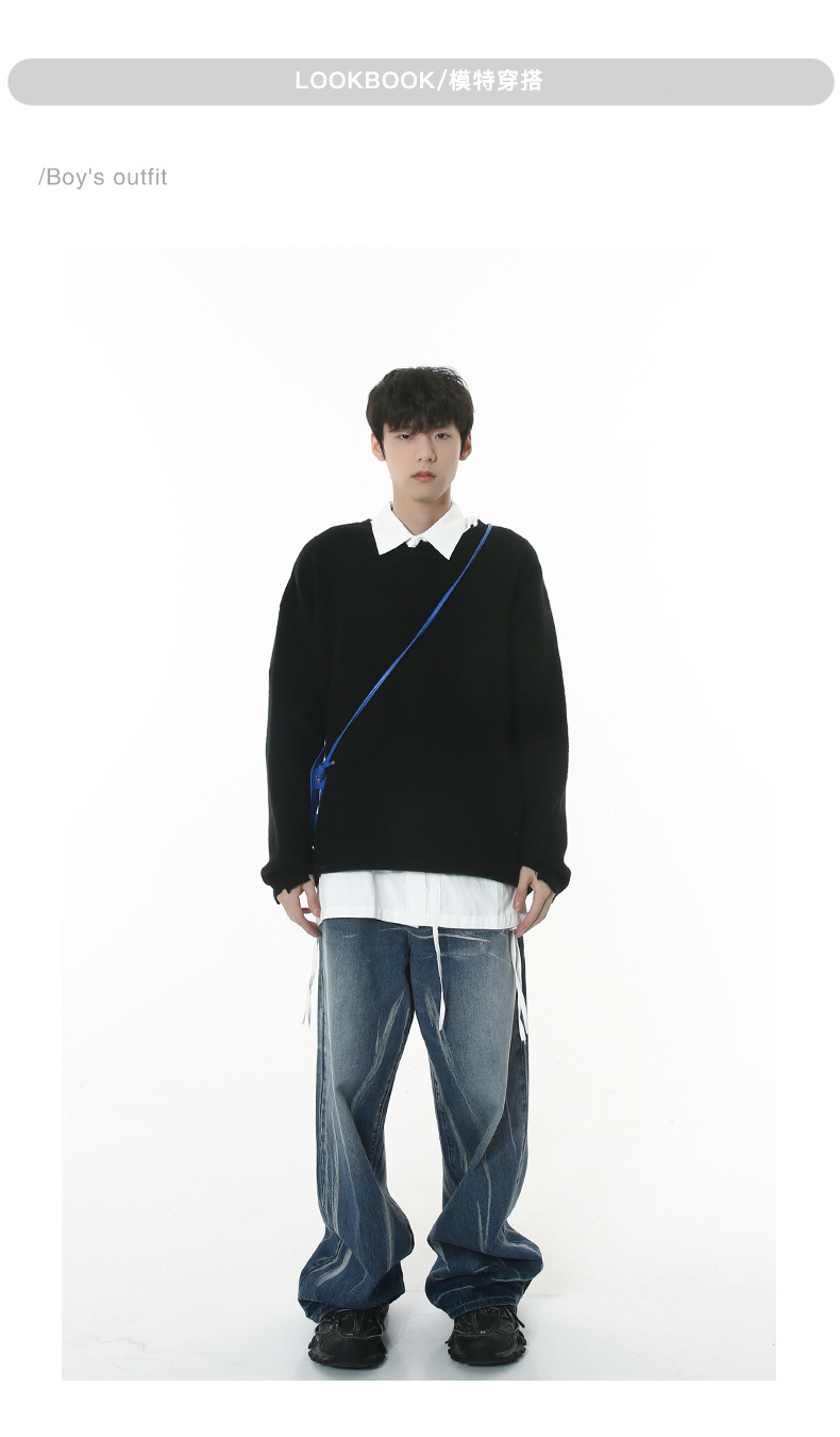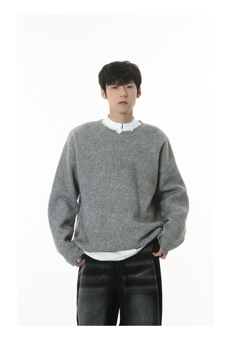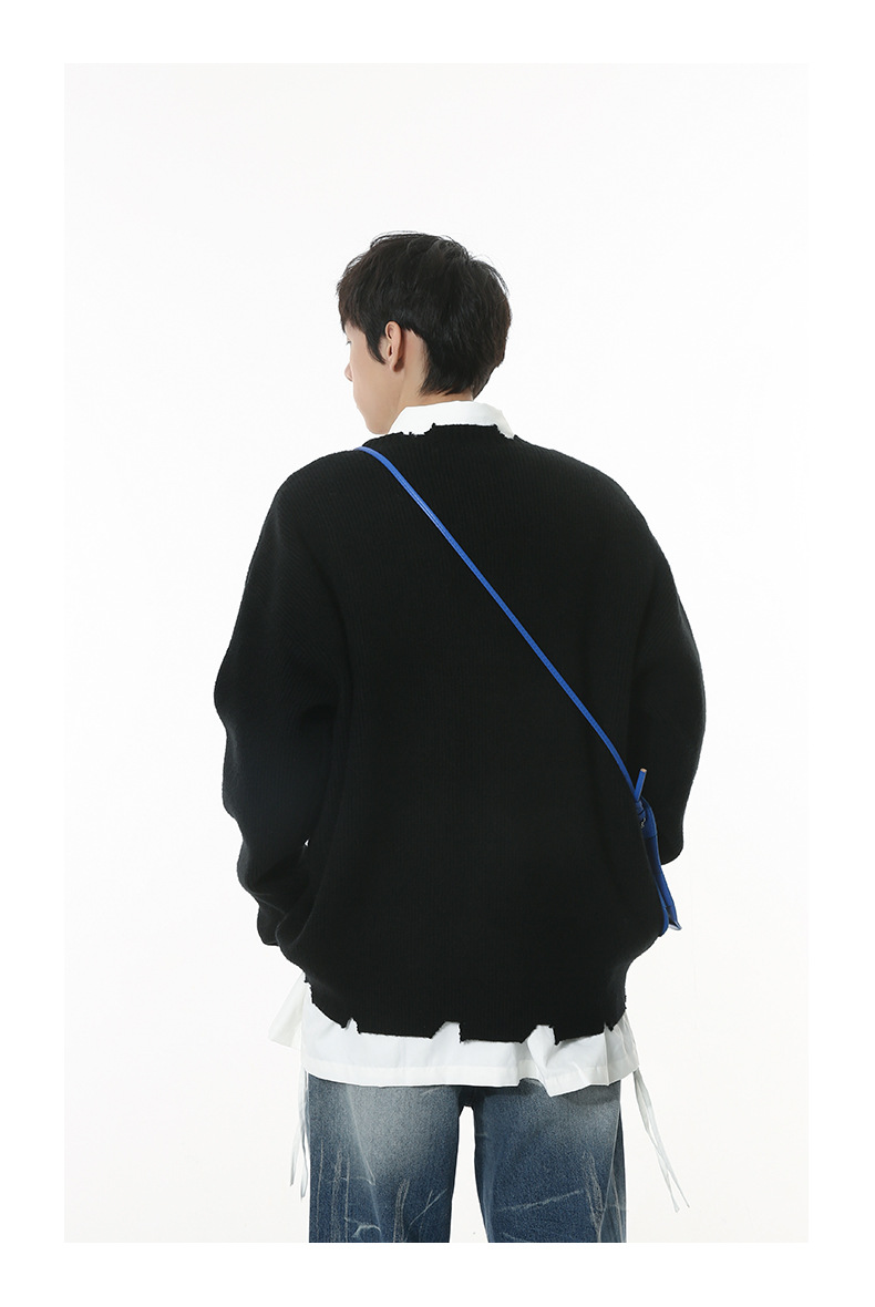 MTLCLOTHES 남성복 | 한국 스타일의 인스 감성, 레이지 스타일, 불규칙한 칼라 니트 스웨터, 긴 소매, 루즈핏, 캐주얼스토어 가기