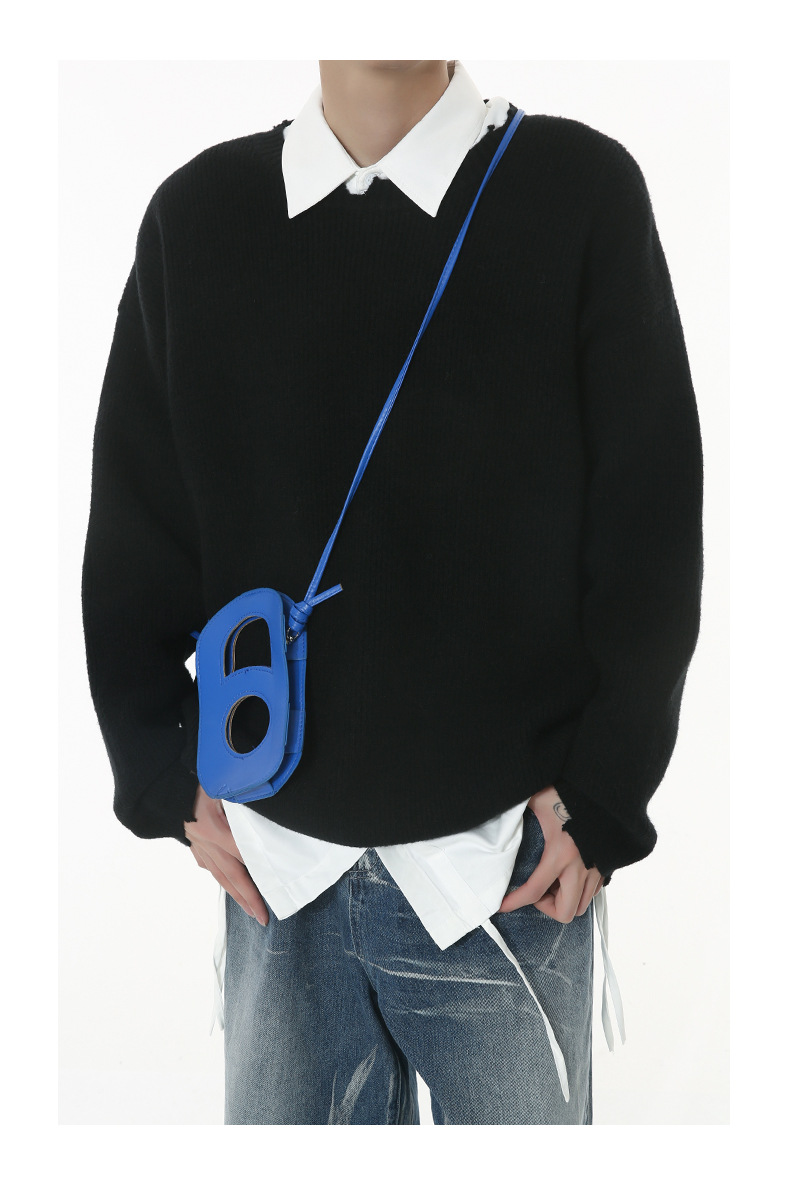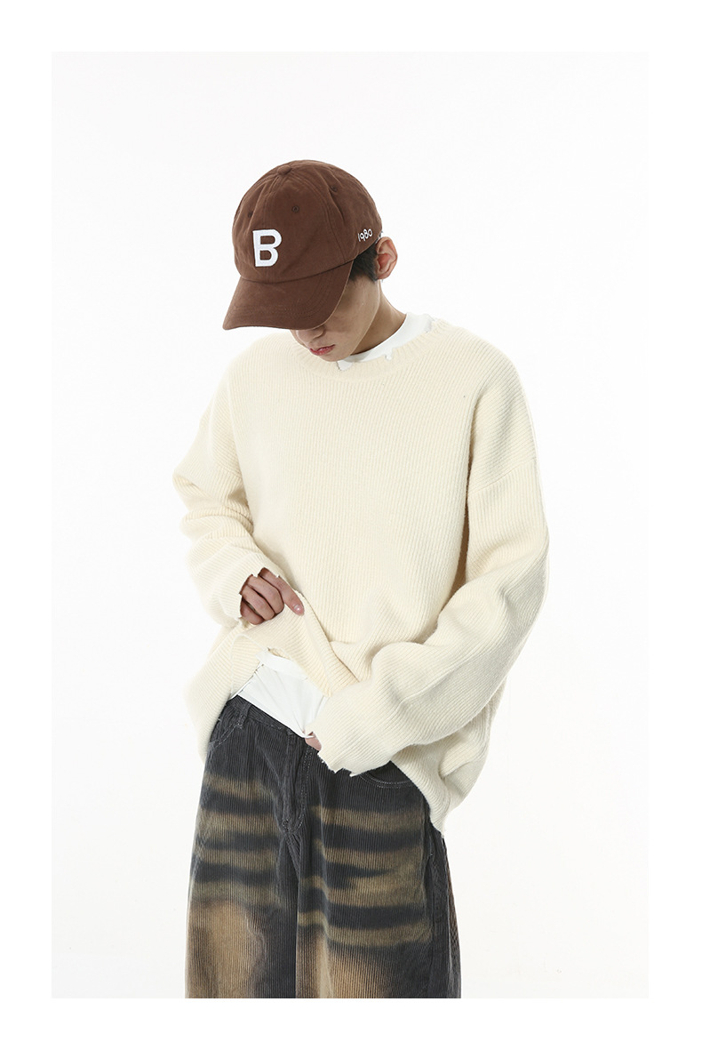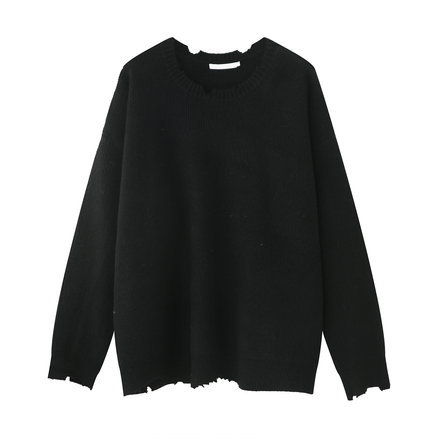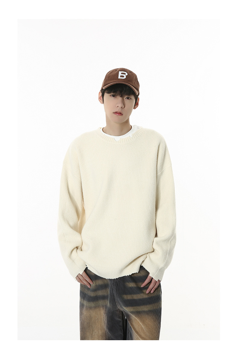 MTLCLOTHES 남성복 | 한국 스타일의 인스 감성, 레이지 스타일, 불규칙한 칼라 니트 스웨터, 긴 소매, 루즈핏, 캐주얼