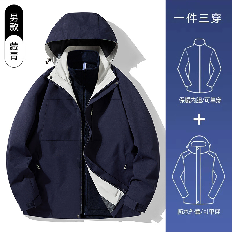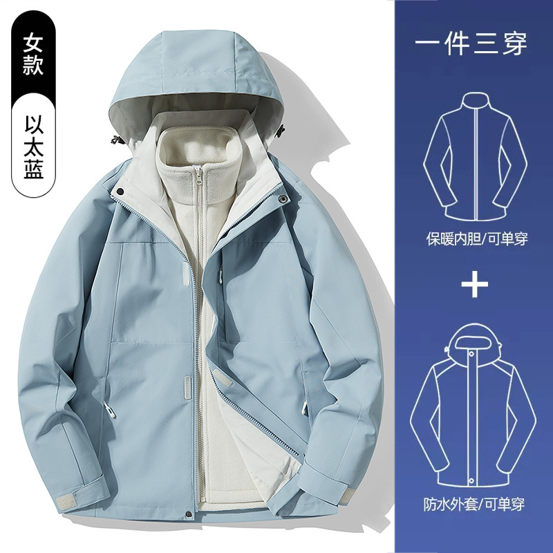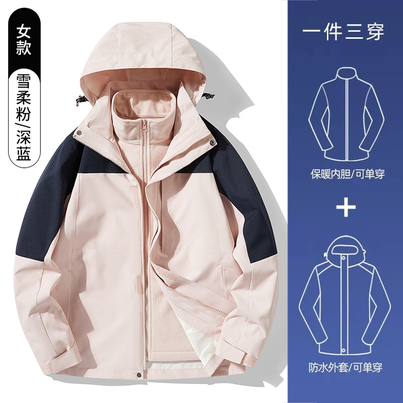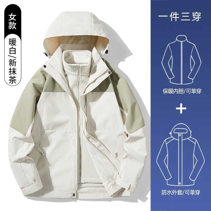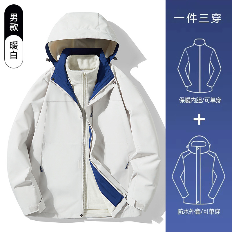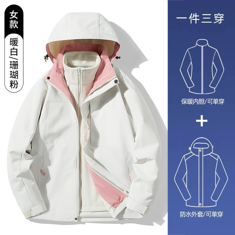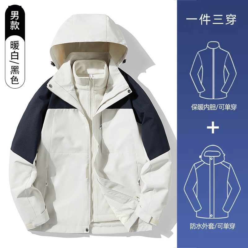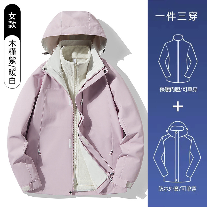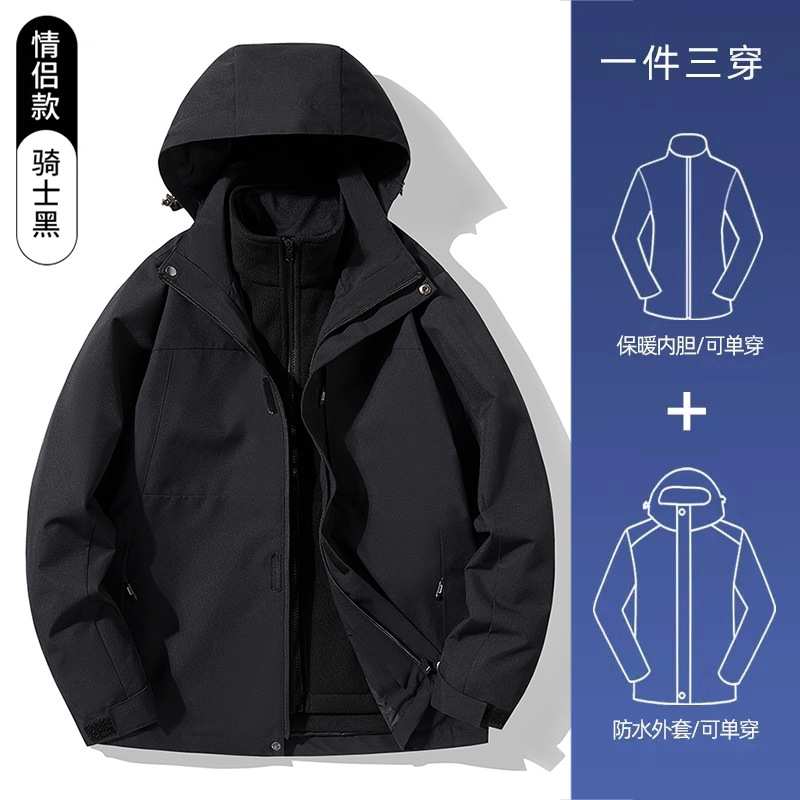 3-in-1 여성 가을, 겨울 커플 투피스 실버 폭스 벨벳 라이너 남성용 방풍 따뜻한 패션 통근 자켓