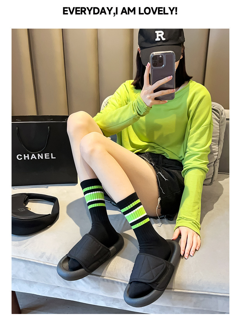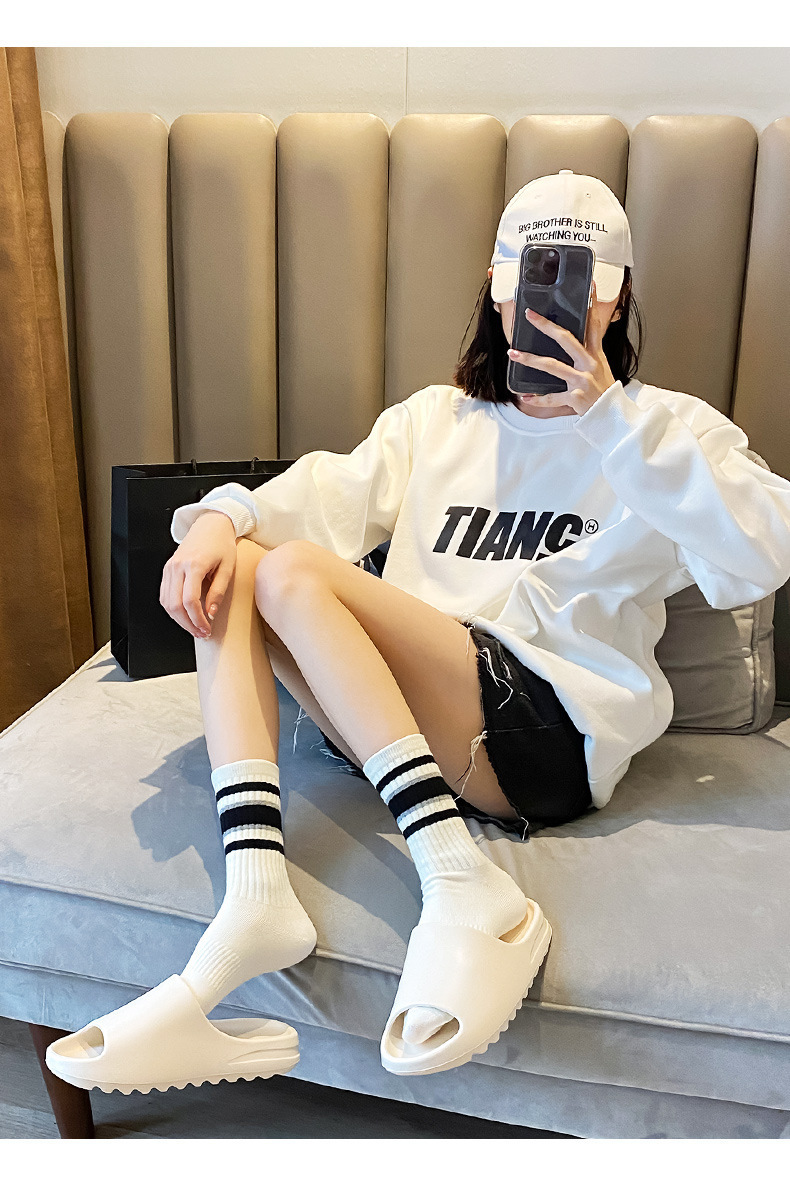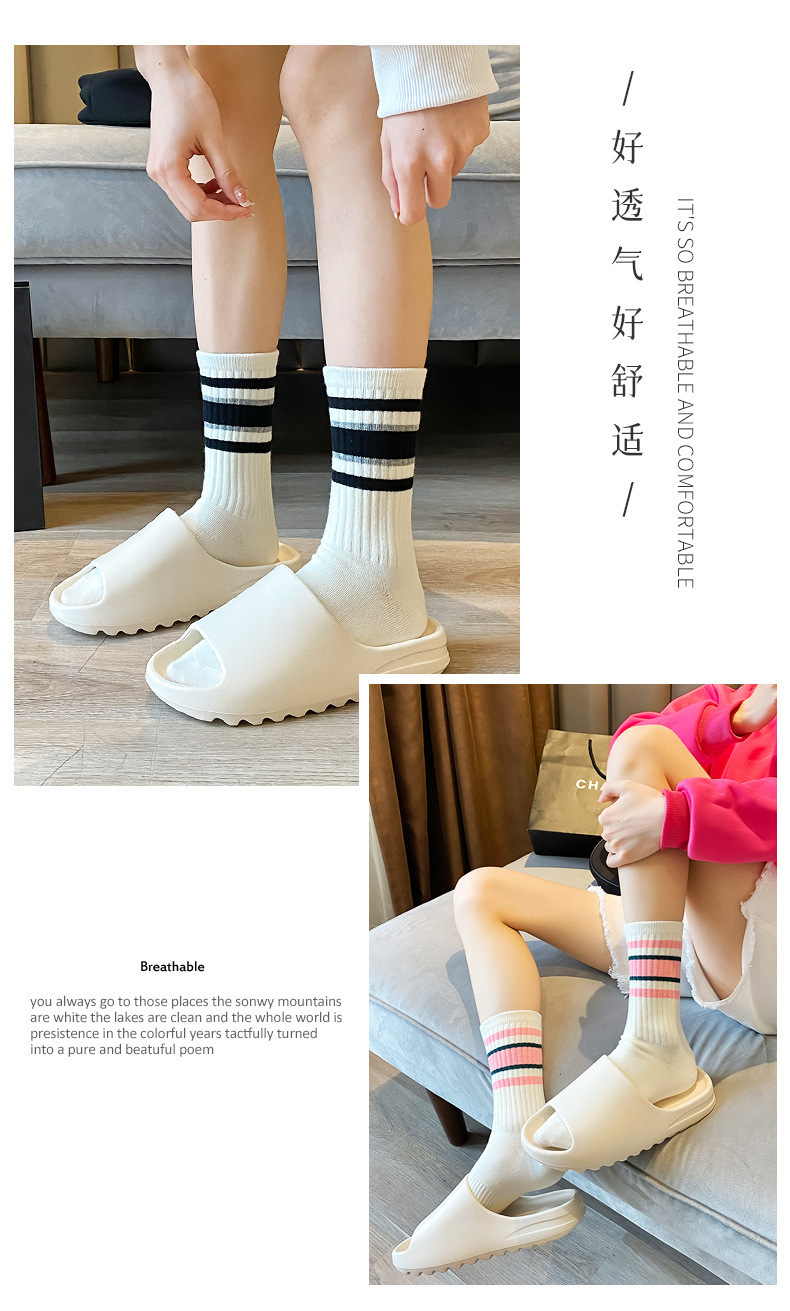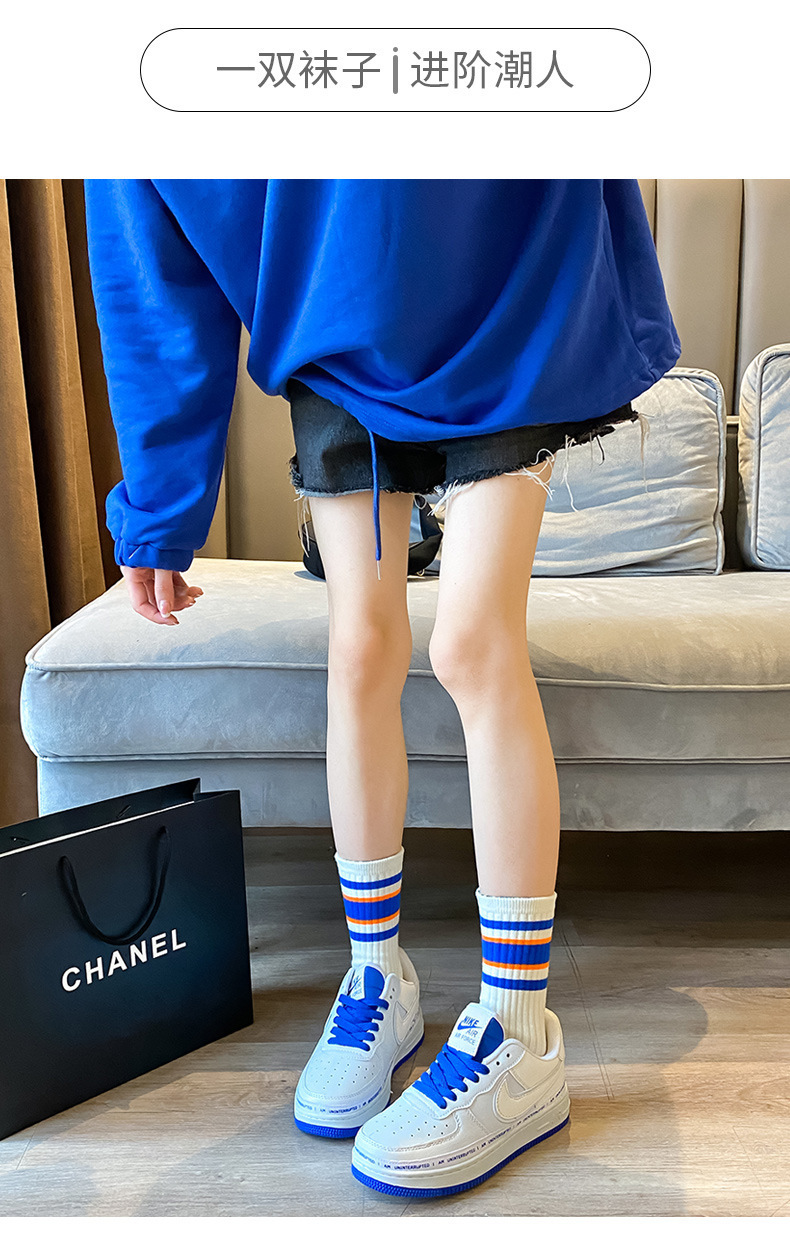 상어 바지 양말 여성용 흑백 줄무늬 스포츠 양말 여성용 여름 중간 배럴 봄과 가을 인터넷 인기있는 학생 스타킹스토어 가기