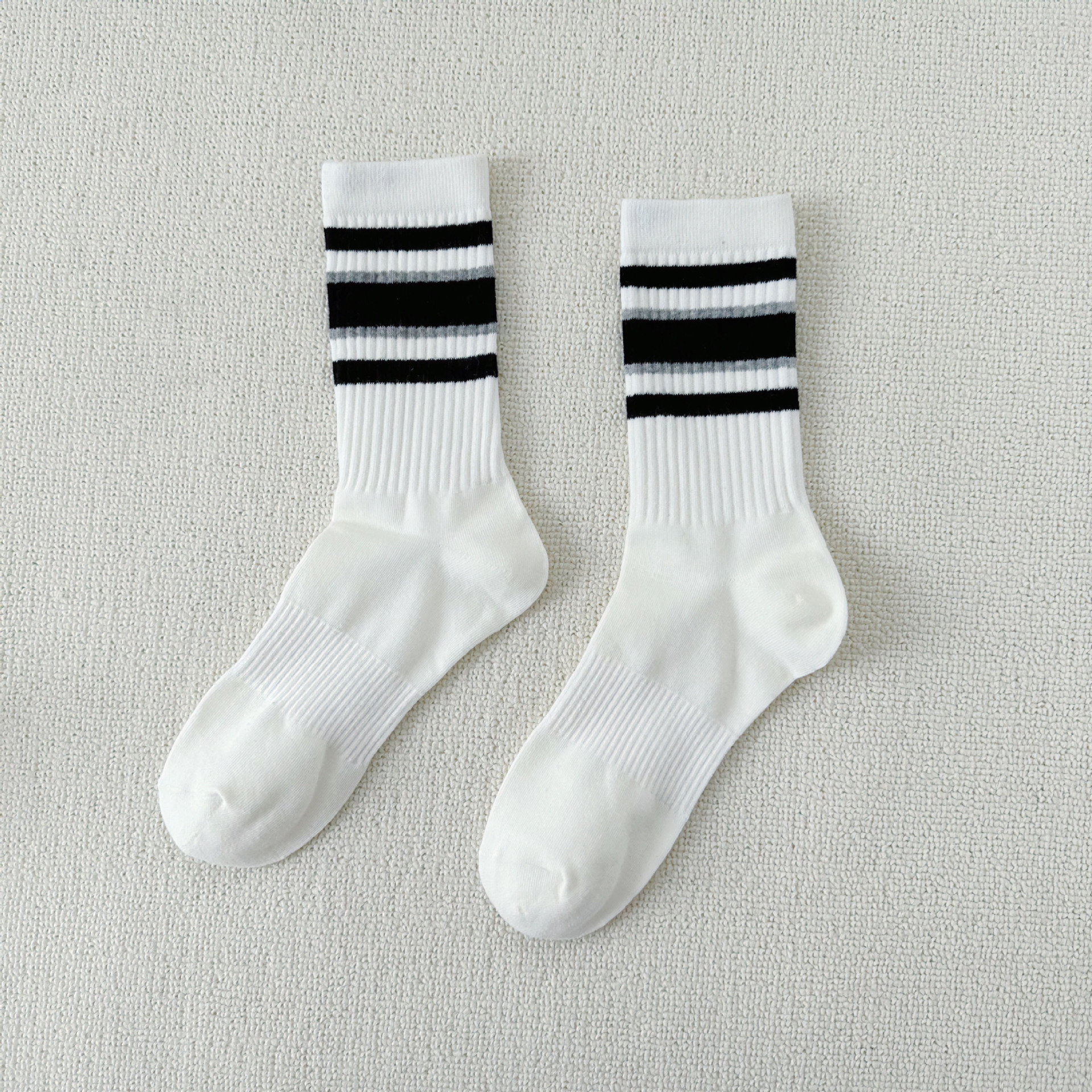 상어 바지 양말 여성용 흑백 줄무늬 스포츠 양말 여성용 여름 중간 배럴 봄과 가을 인터넷 인기있는 학생 스타킹