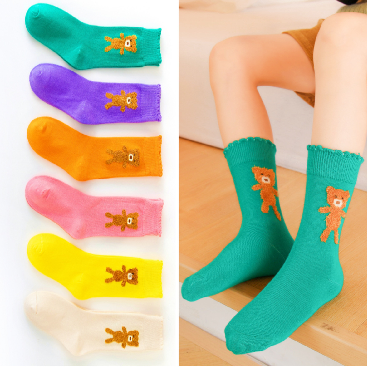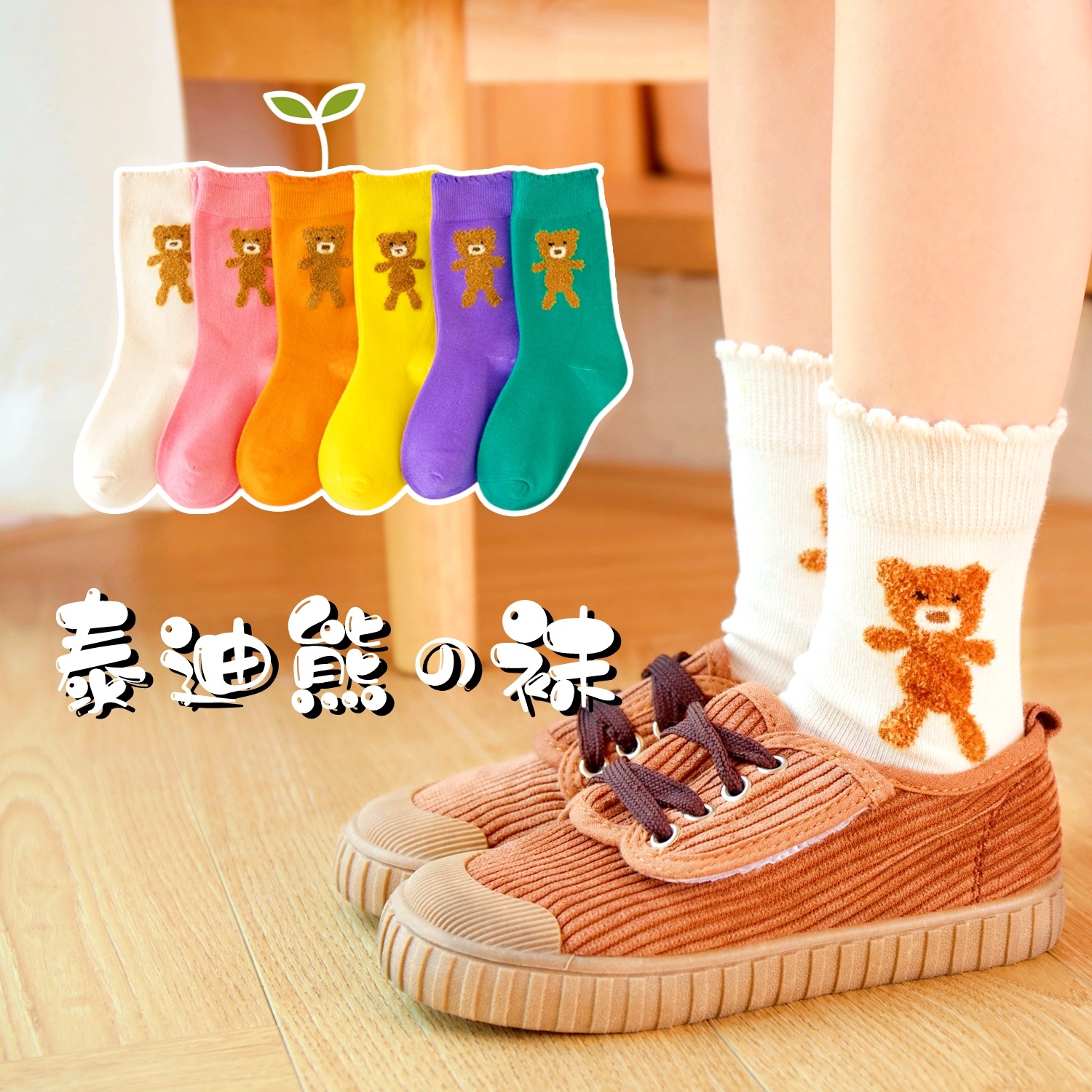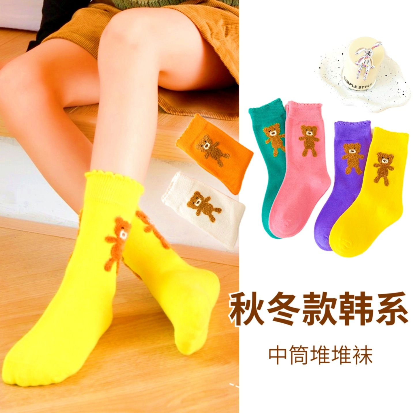 23 어린이 양말 도매 가을과 겨울 새 곰 인형 곰 높은 배럴 더미 남녀 아기 양말 소, 중, 대 어린이스토어 가기