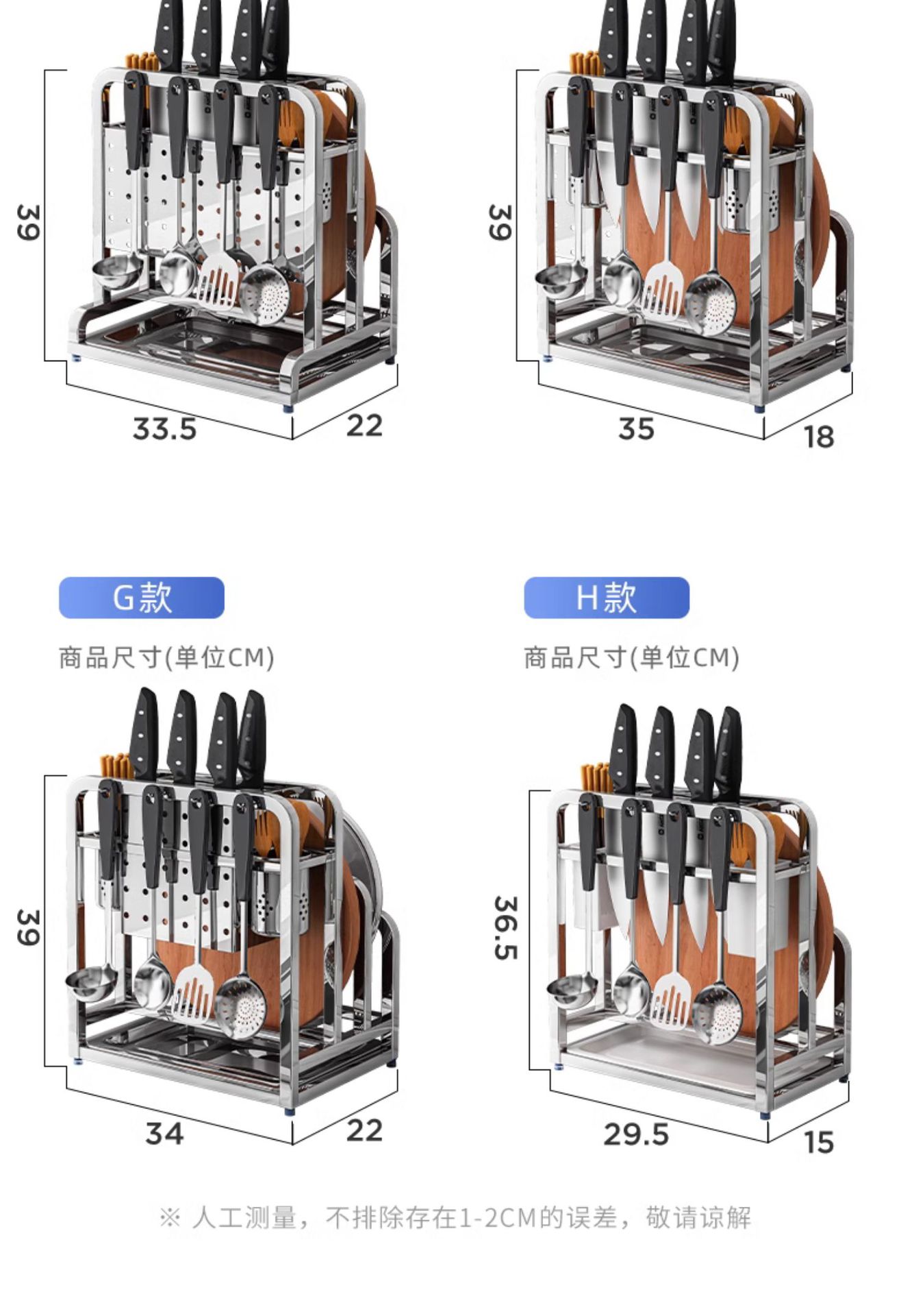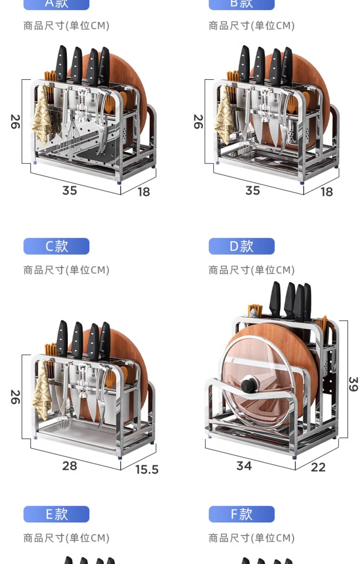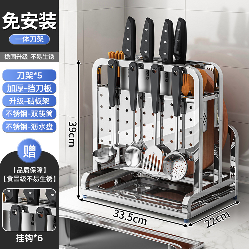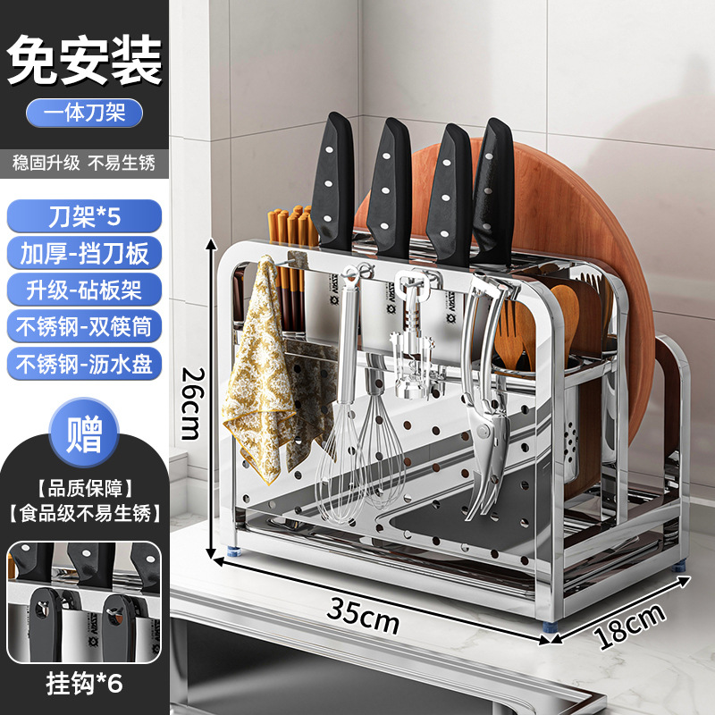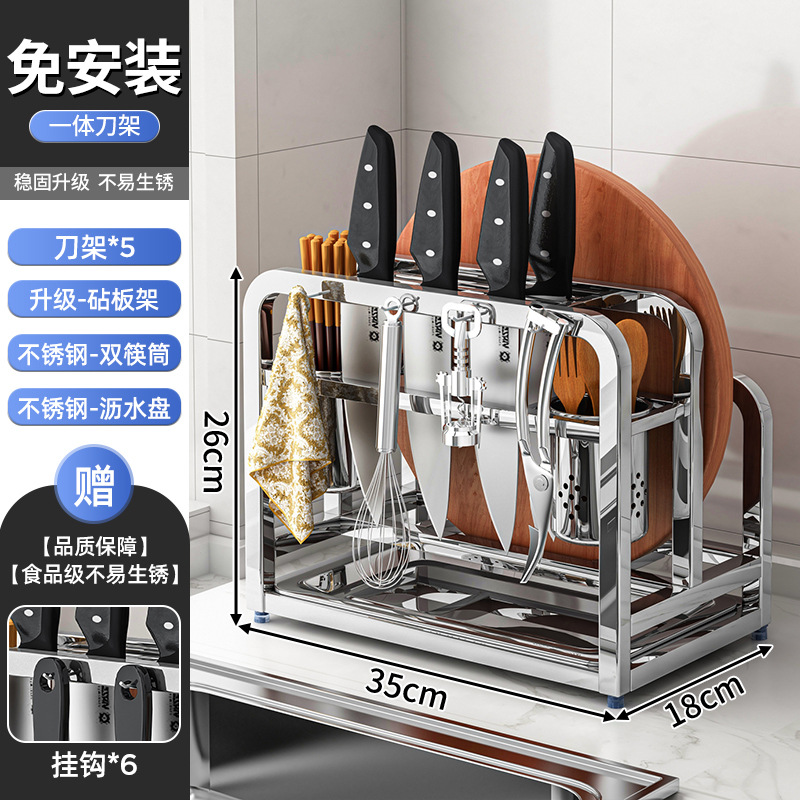 304不锈钢厨房刀架置物架放砧板锅盖菜刀架筷子笼刀具收纳架一体