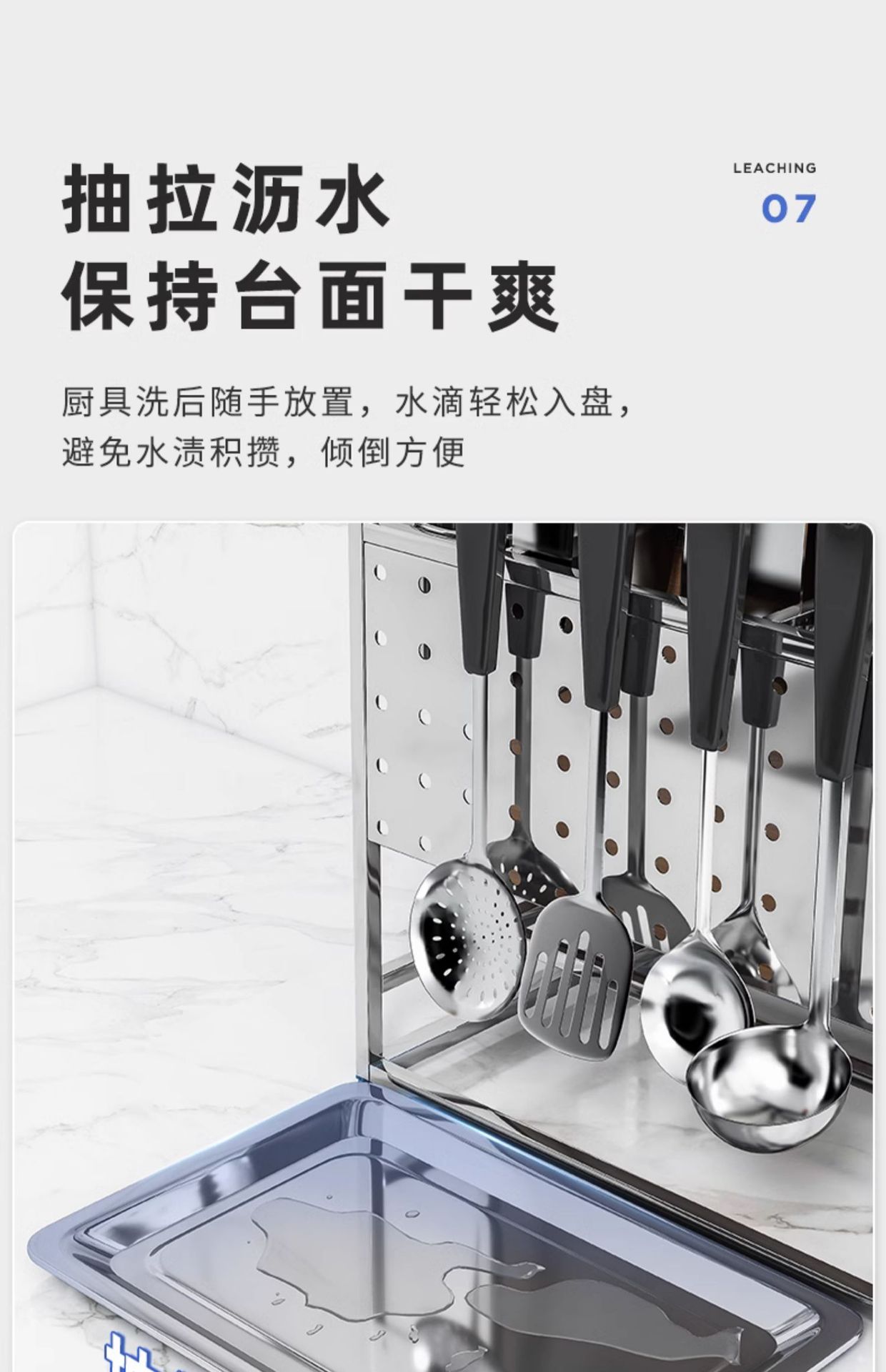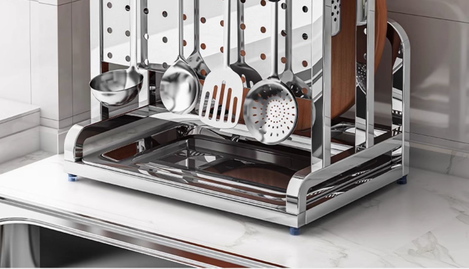 • [높이 및 확장 업그레이드] 스테인레스 스틸 기본 색상 (이중 도마 랙 + 이중 젓가락 홀더 + 배수 플레이트 + 냄비 커버 랙 + 나이프 가드 플레이트)