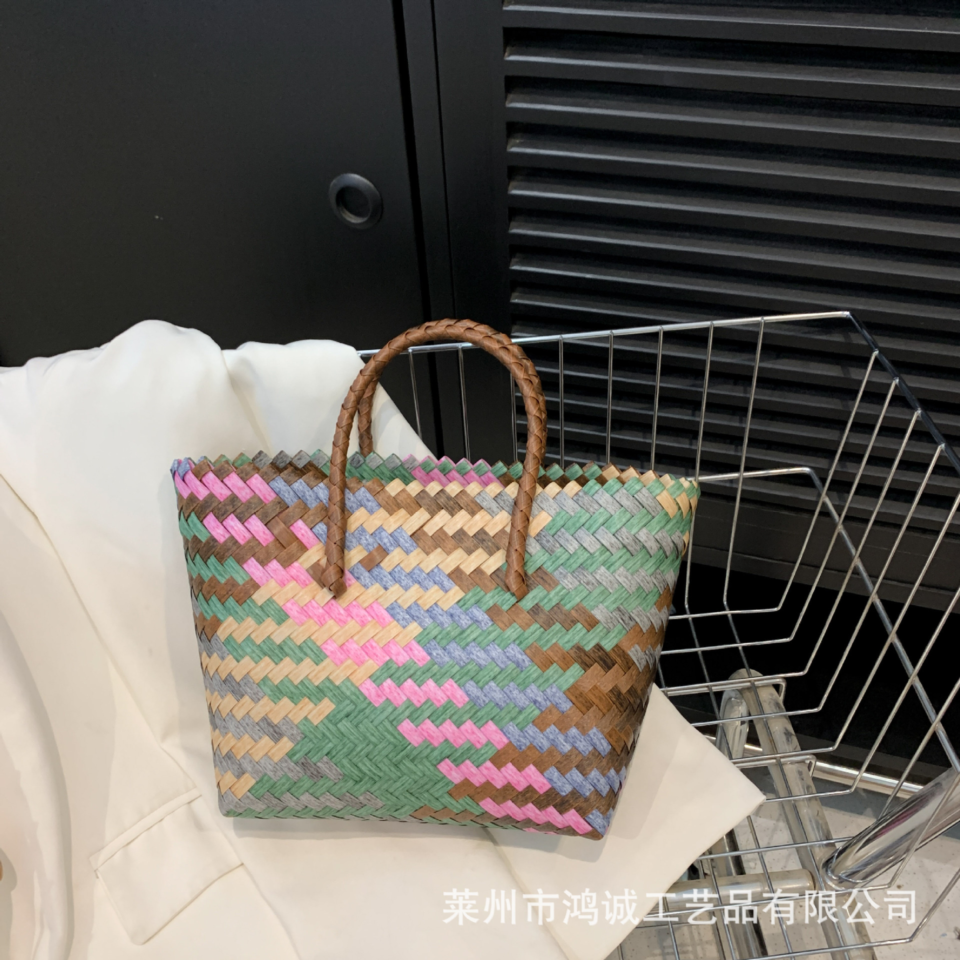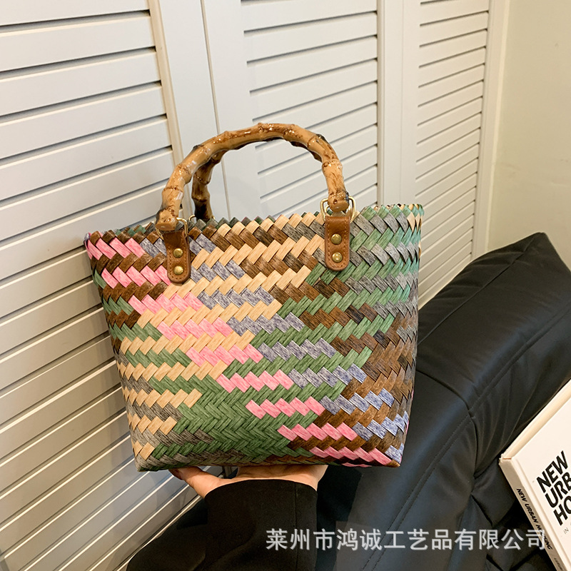 Hongcheng 빈티지 모조 등나무 대용량 짠 가방 동반 선물 음식 바구니 여성용 핸드백 숄더백 가방 여성