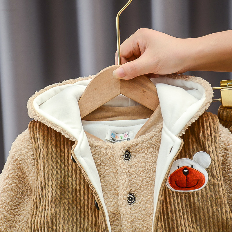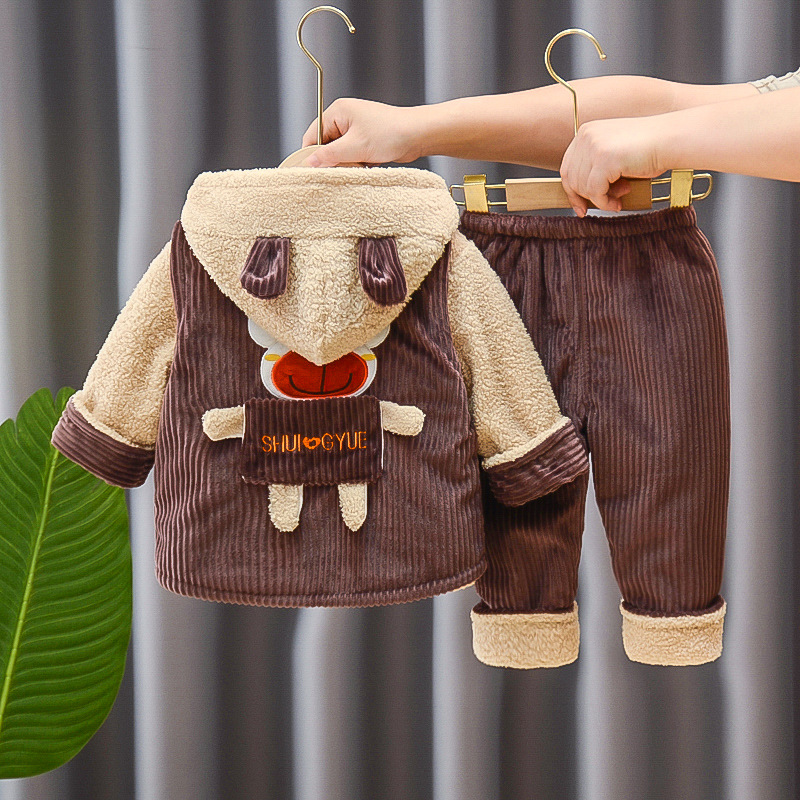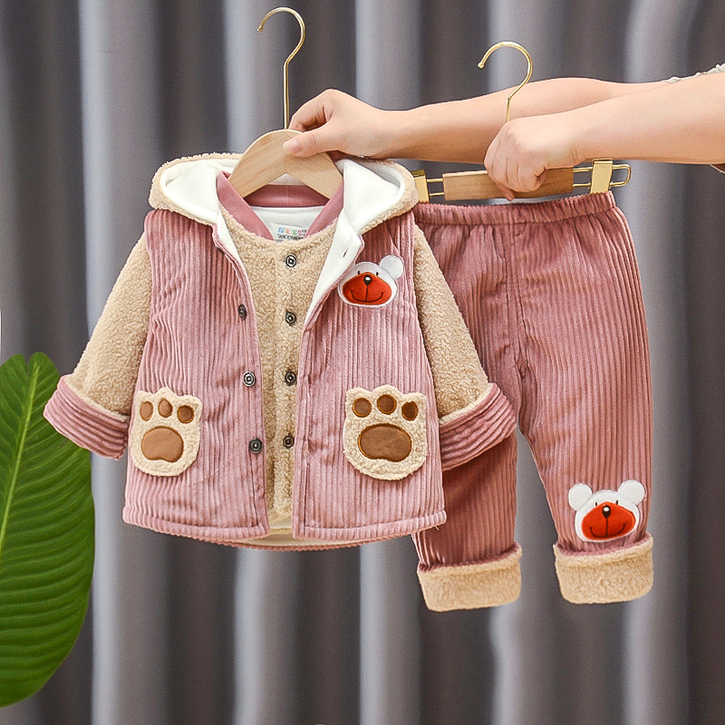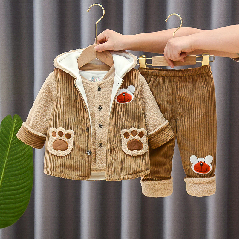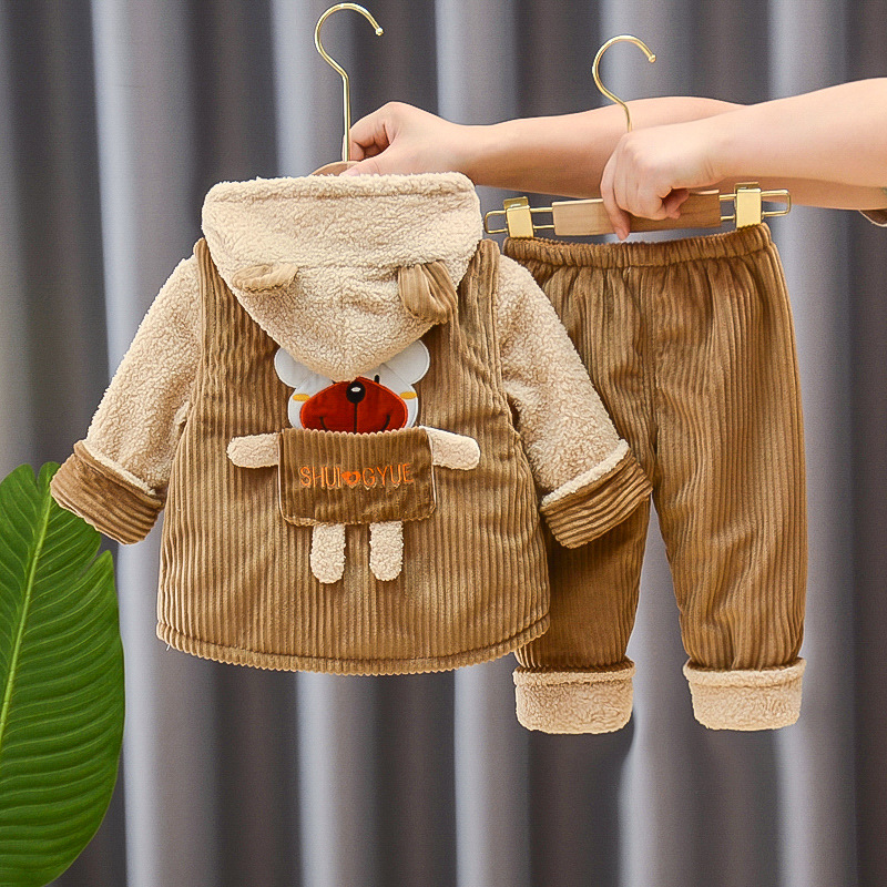 남자와 여자의 아기 옷 코듀로이 조끼 3 피스 가을과 겨울 옷 밖으로 0-2 세 외국 스타일 아기 세트 두껍게