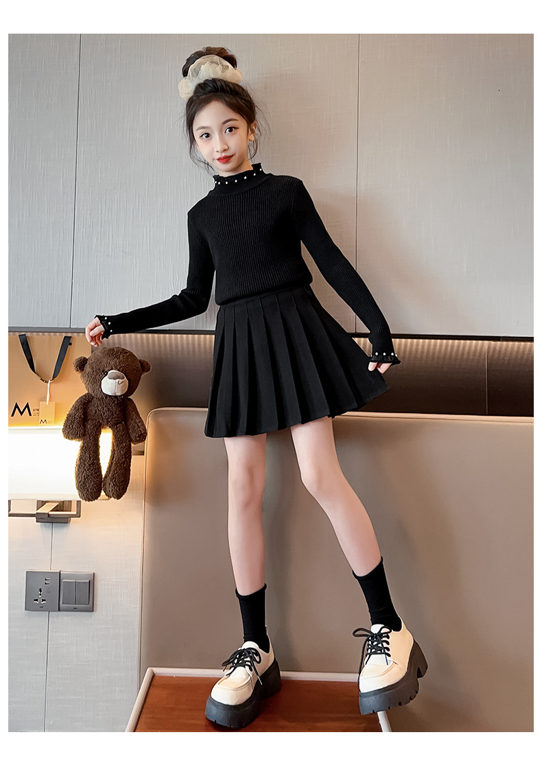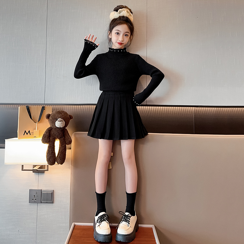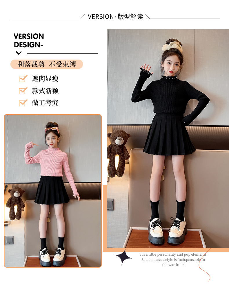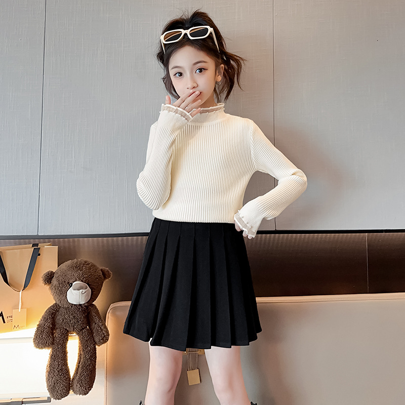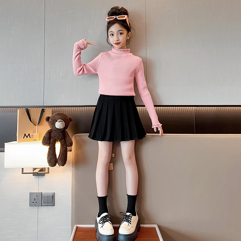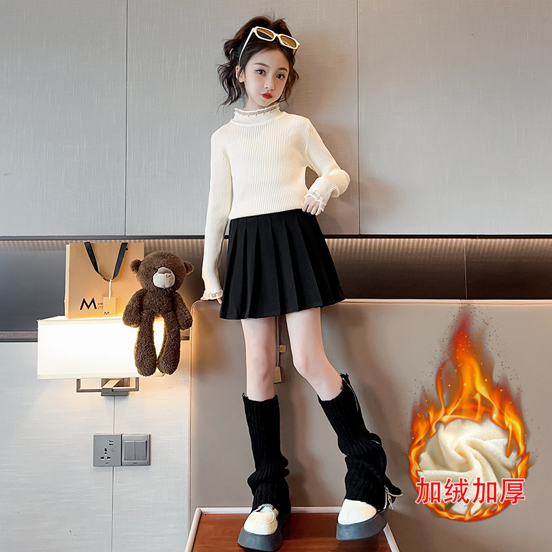 소녀 겨울 스웨터 2023 새로운 스타일 중대형 어린이 풀오버 기모 두꺼운 니트 유행 캐주얼 아동복스토어 가기