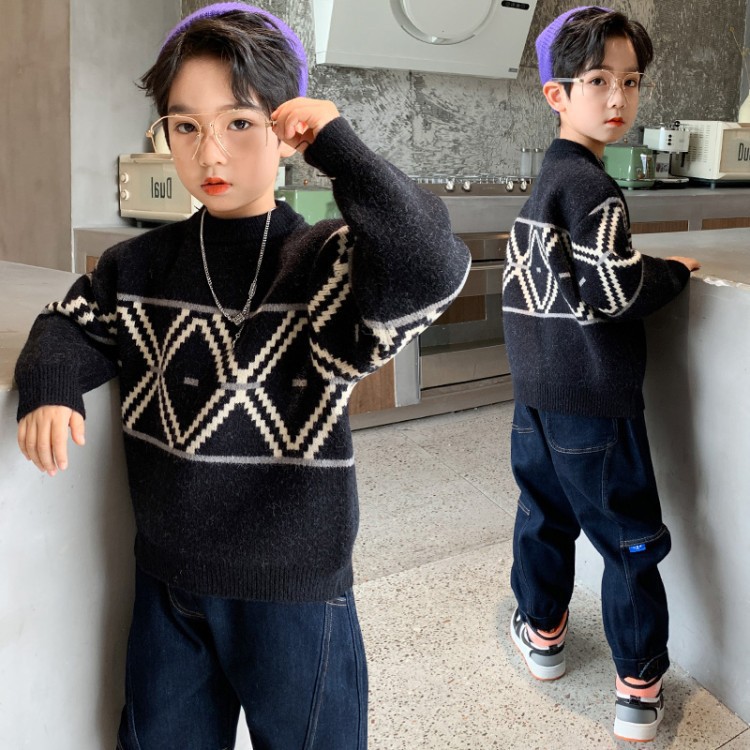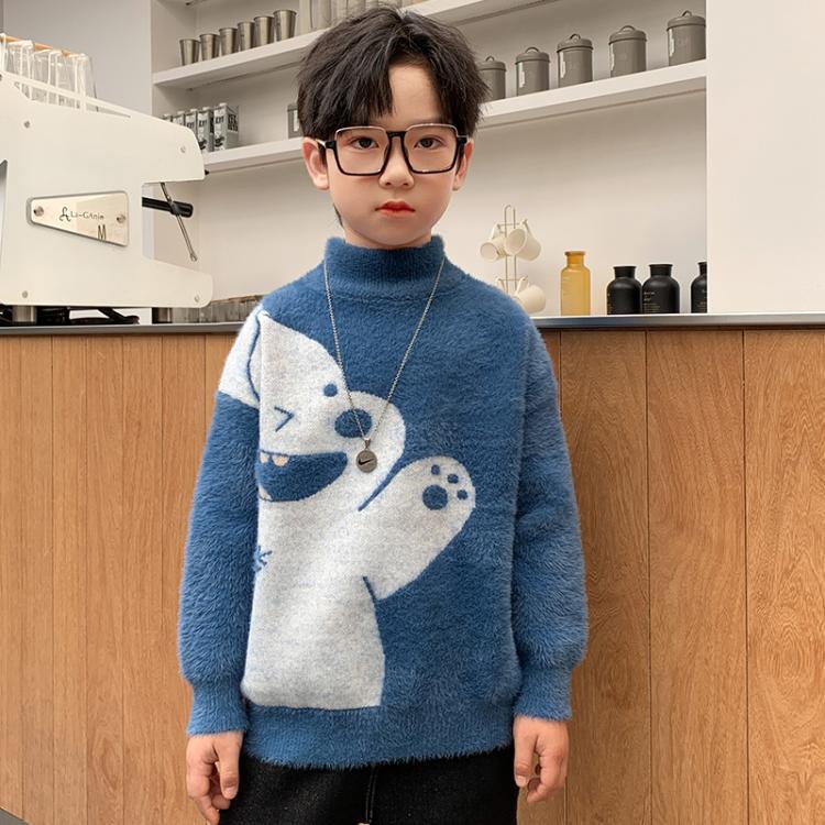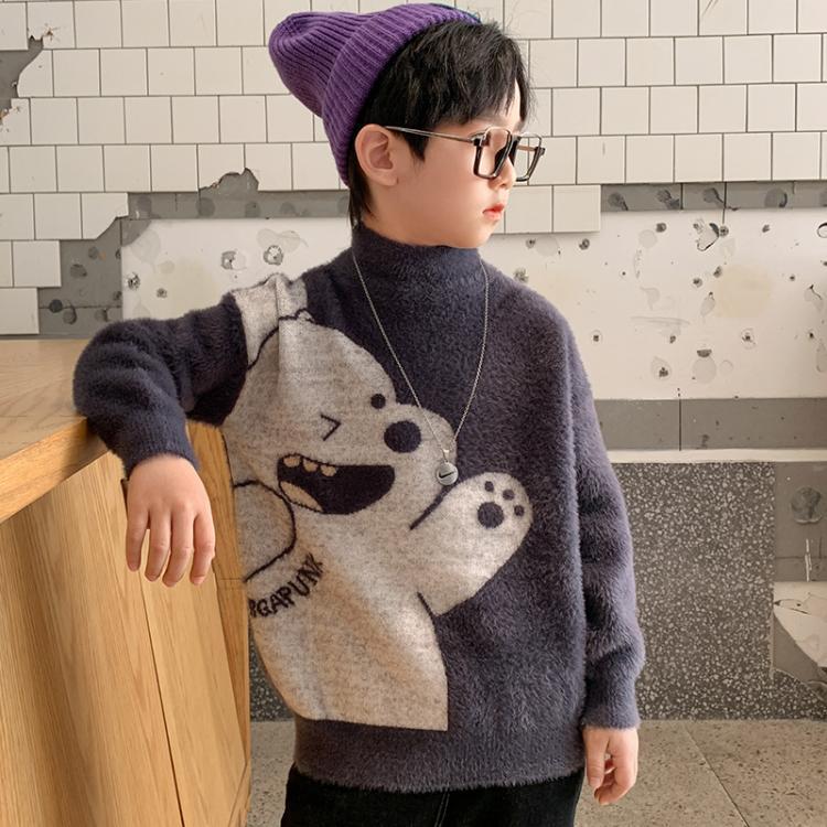 남아용 가을 겨울 스웨터, 중대형 어린이용 만화 캐릭터 겨울옷, 두꺼운 니트 스웨터 상의, 중간 칼라 보온 이너웨어, 트렌디스토어 가기
