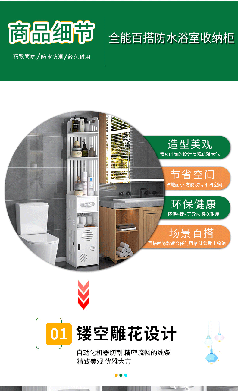 욕실 코너 수납장 화장실 대용량 다층 수납장 욕실 바닥 수납장 라이트 럭셔리 스타일
