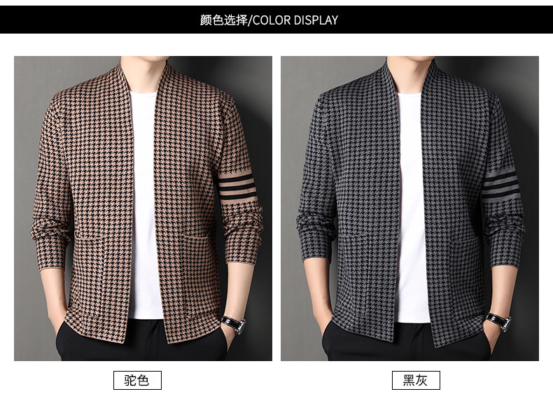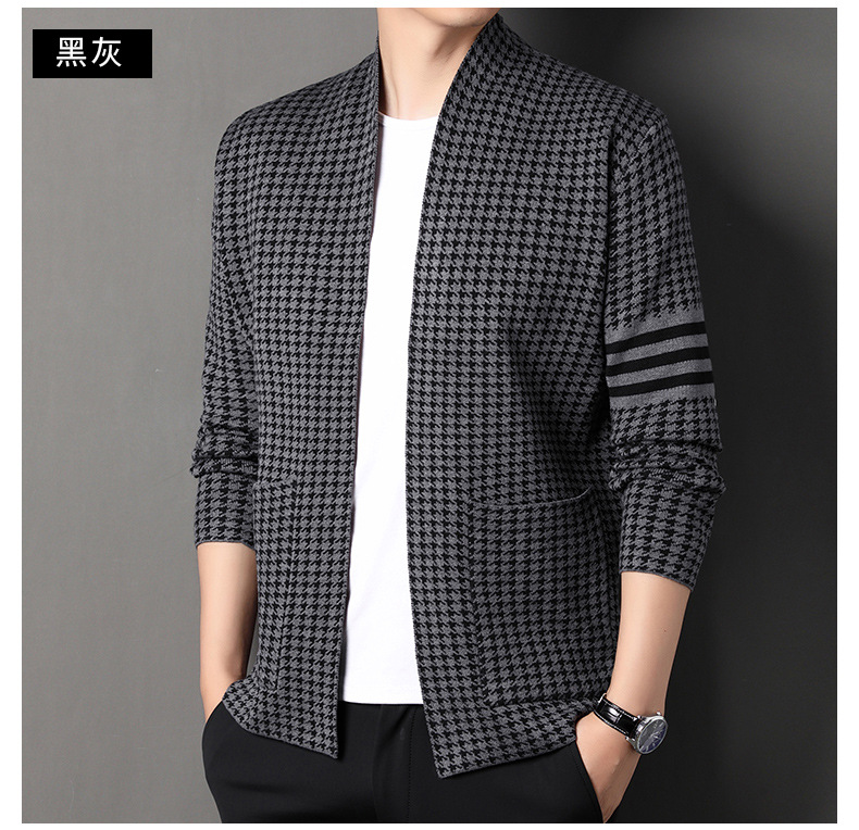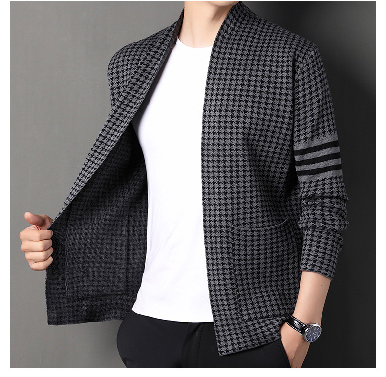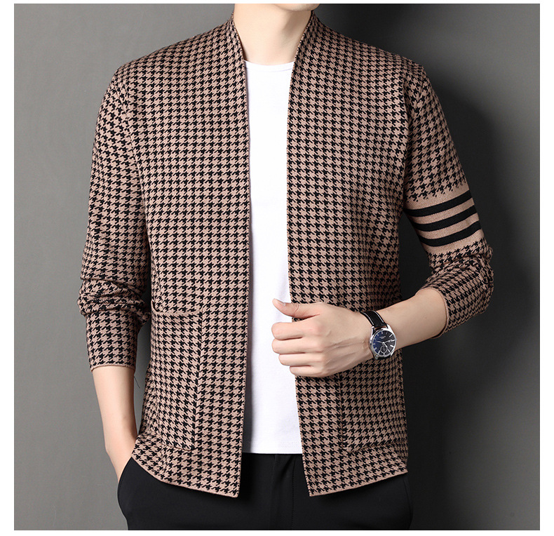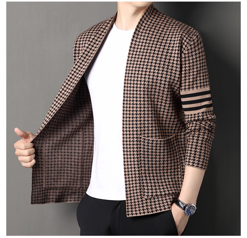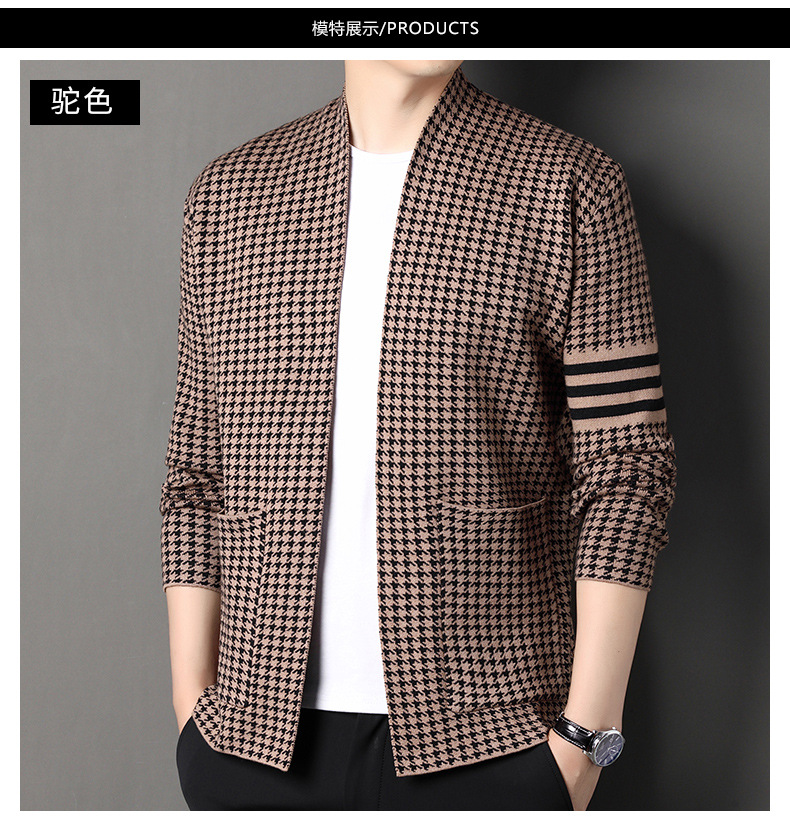 2022 새로운 봄과 가을 얇은 Houndstooth 니트 카디건 재킷 남성용 루즈한 탑 중년 스웨터 니트 스웨터스토어 가기