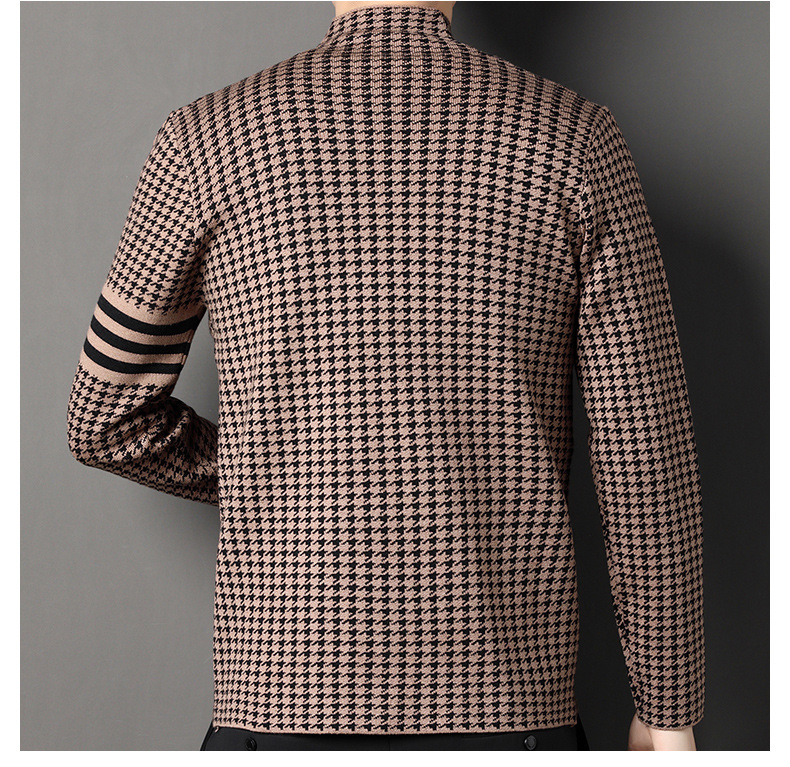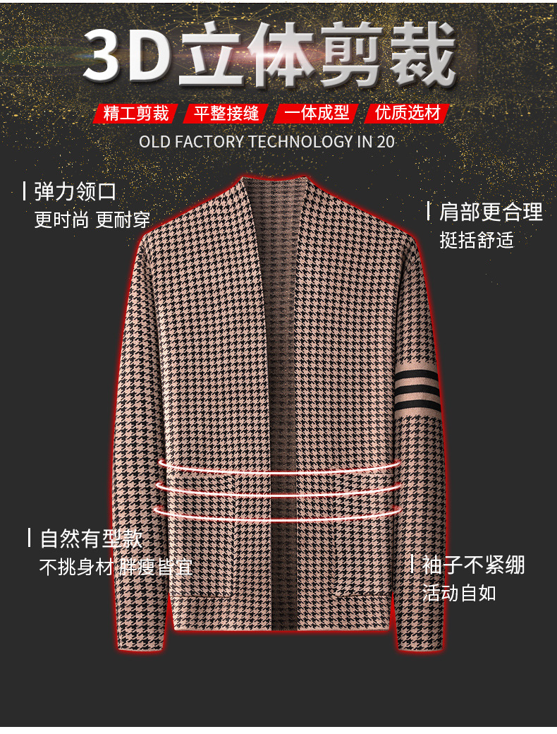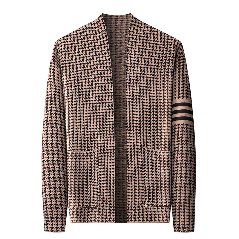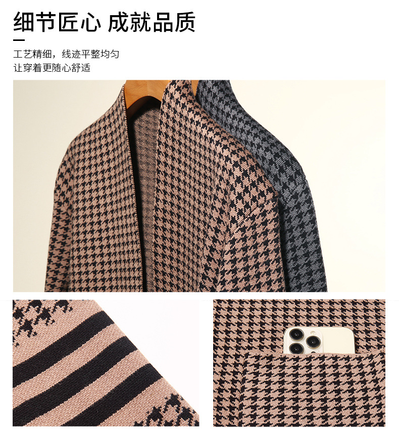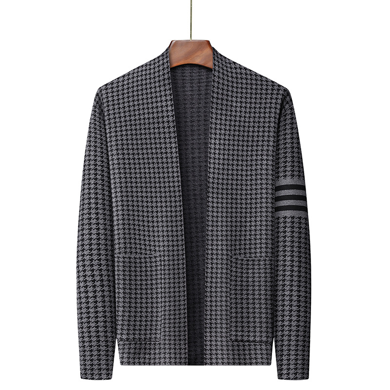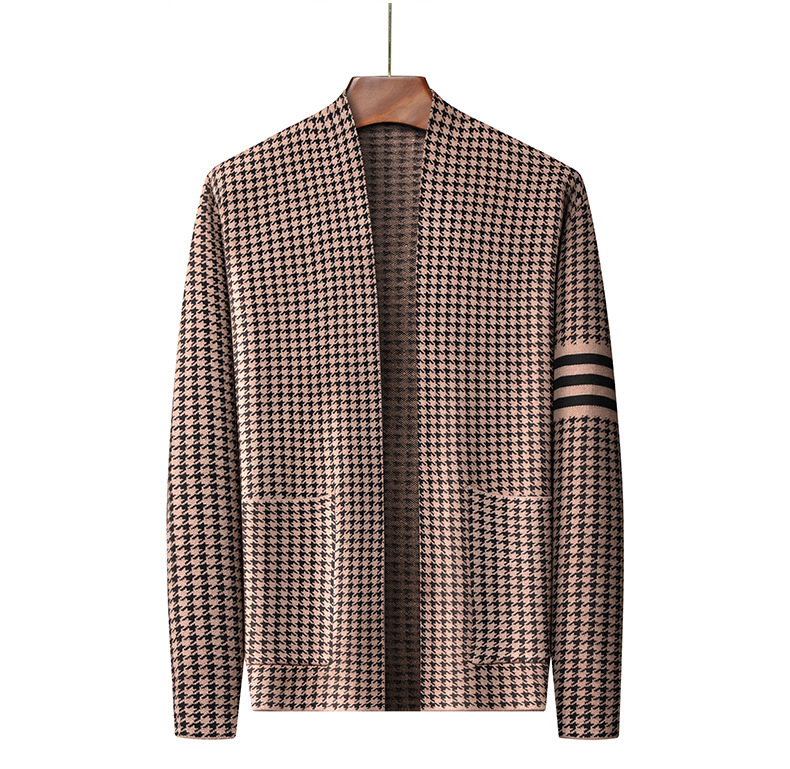 2022 새로운 봄과 가을 얇은 Houndstooth 니트 카디건 재킷 남성용 루즈한 탑 중년 스웨터 니트 스웨터스토어 가기