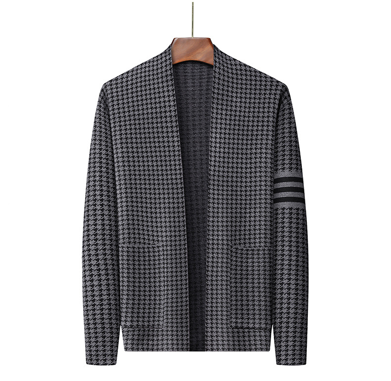 2022 새로운 봄과 가을 얇은 Houndstooth 니트 카디건 재킷 남성용 루즈한 탑 중년 스웨터 니트 스웨터
