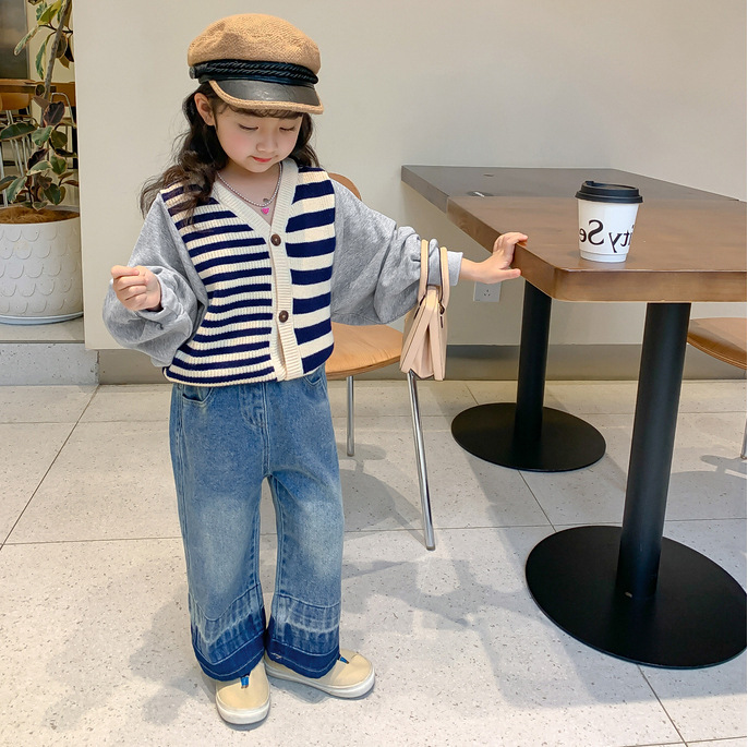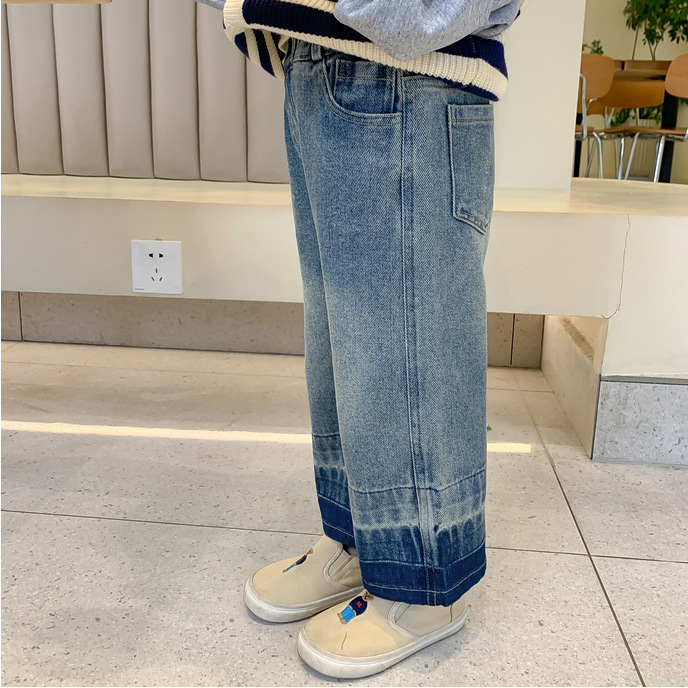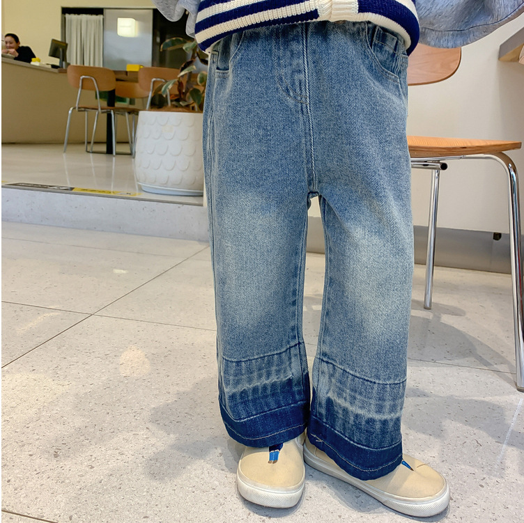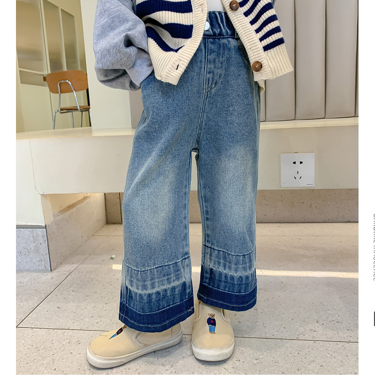 여자 넓은 다리 바지 봄과 가을 새로운 한국 데님 바지 서양 스타일 가을 청바지 어린이 세대의 머리카락스토어 가기