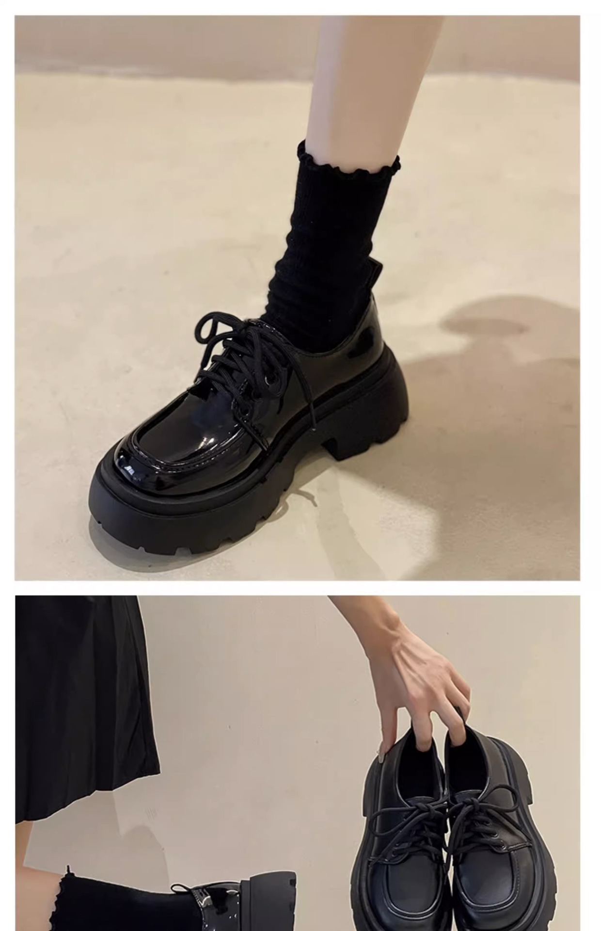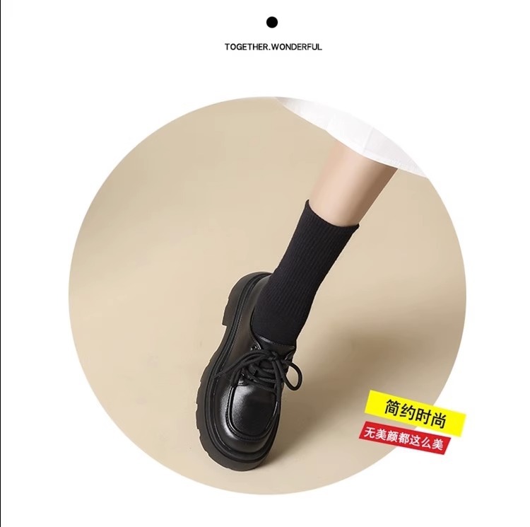 영국 스타일 두꺼운 바닥 작은 가죽 신발 여성용 2023 새로운 모든 매치 블랙 jk 싱글 슈즈 플랫폼 로프 로퍼 Instagram 스타일 트렌디스토어 가기
