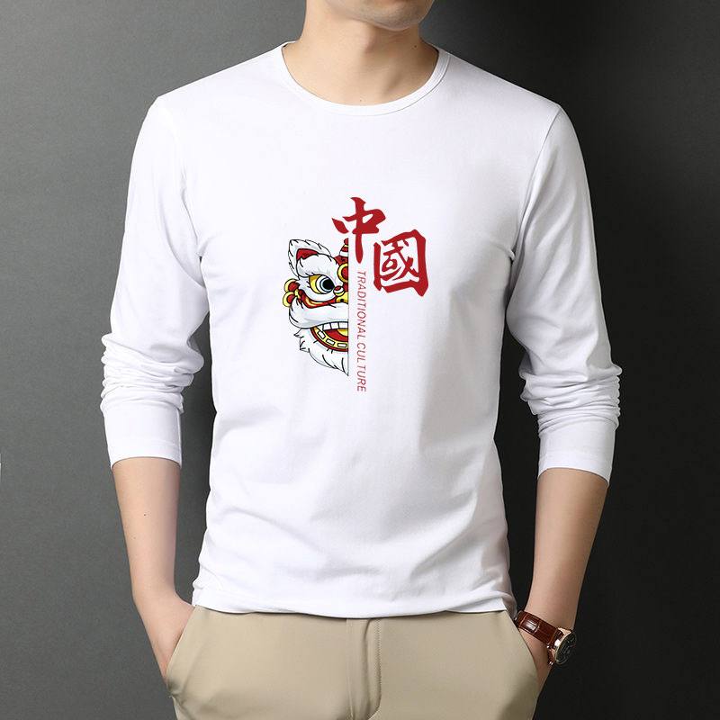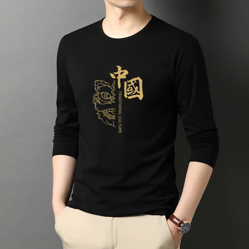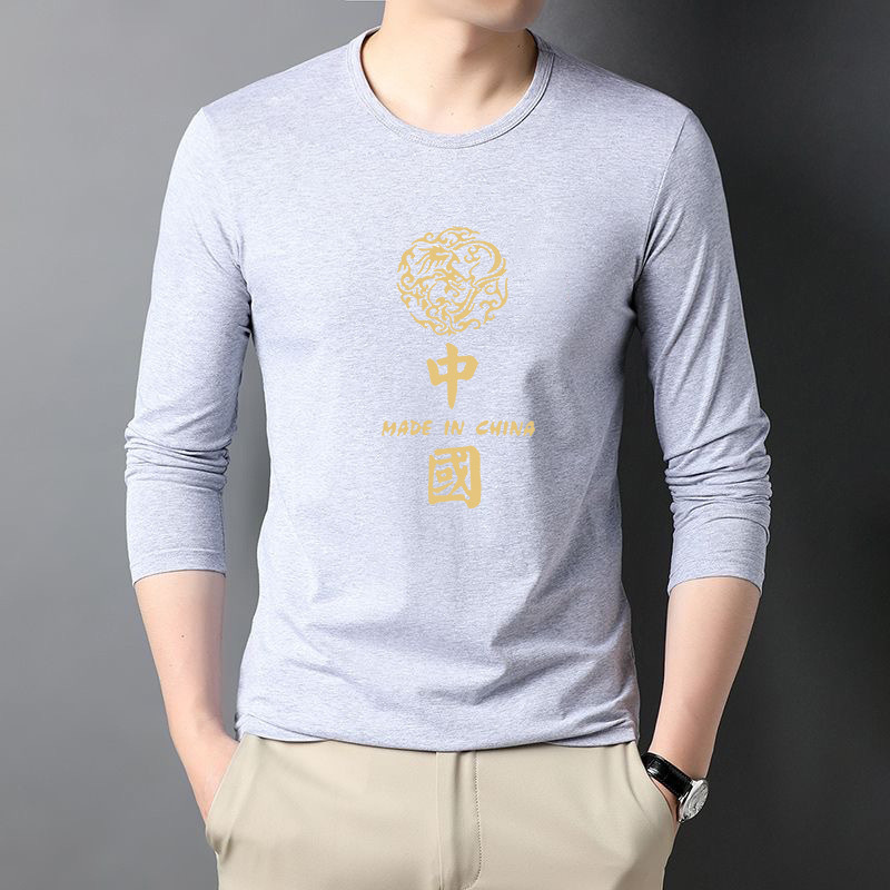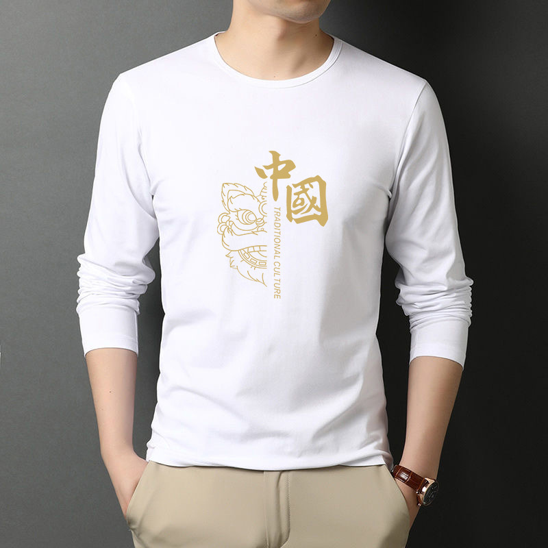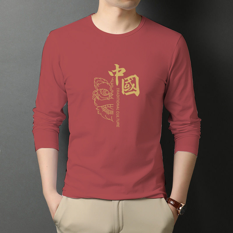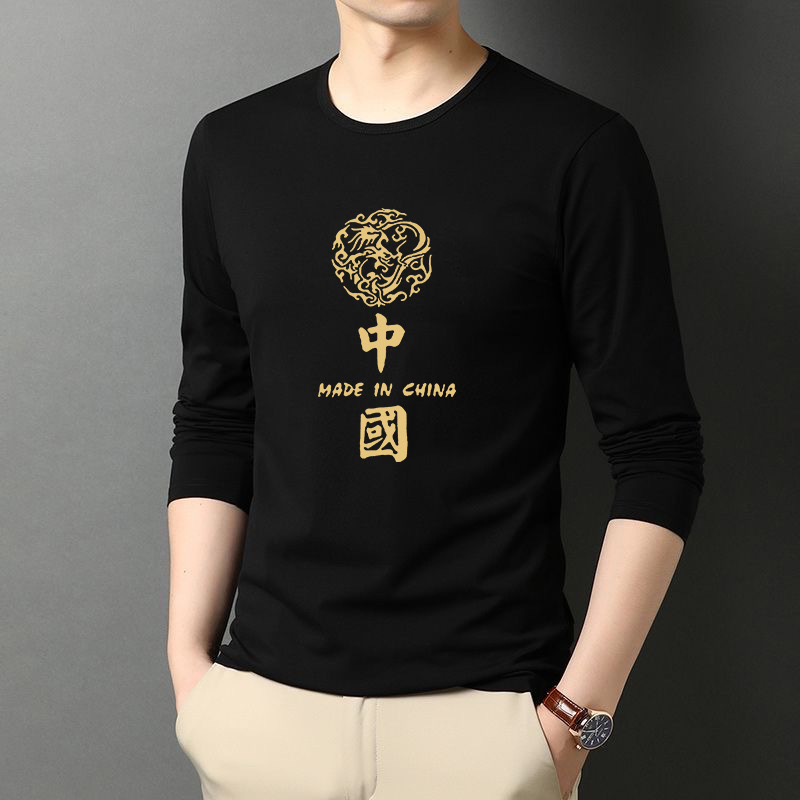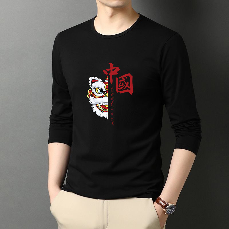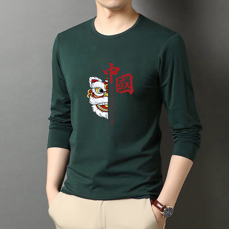남자의 내셔널 패션 그린 긴팔 티셔츠 남성 캐주얼 이너베이스 셔츠 겉옷 입고 Instagram 스타일 유행 탑 의류스토어 가기