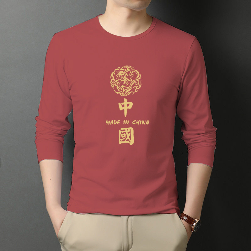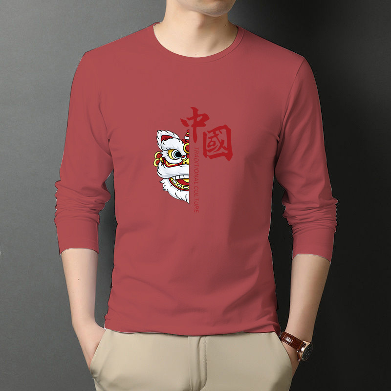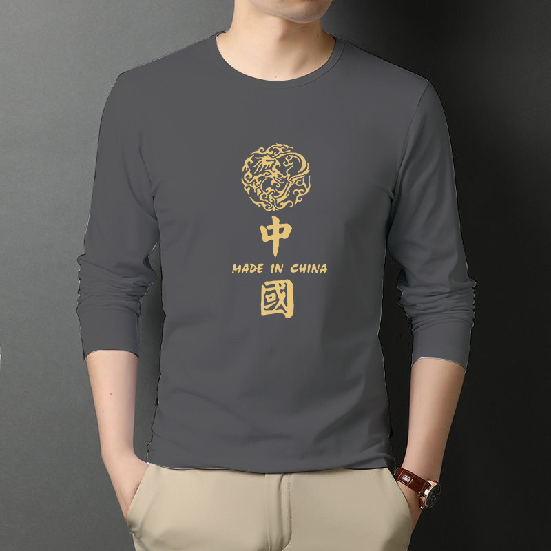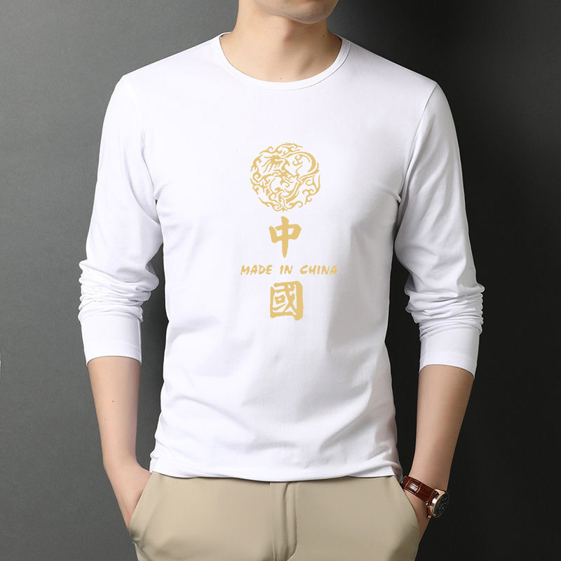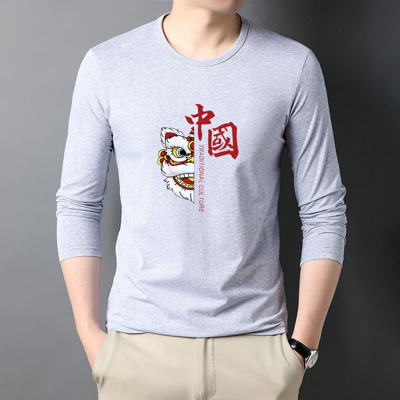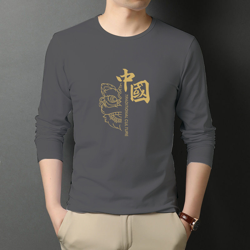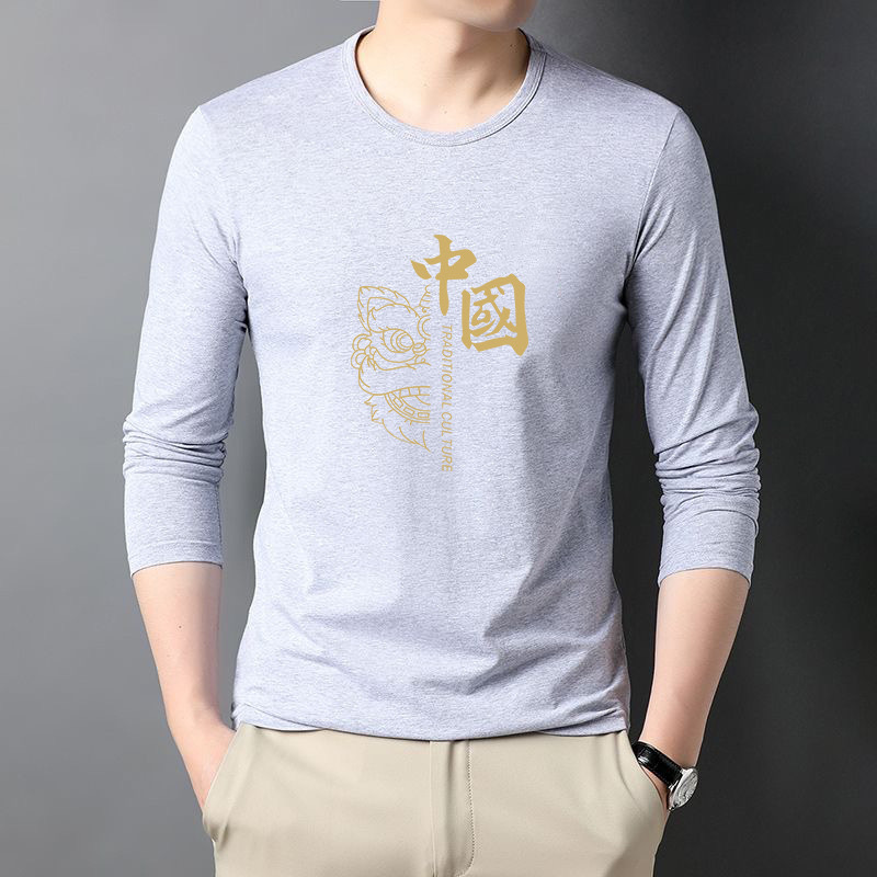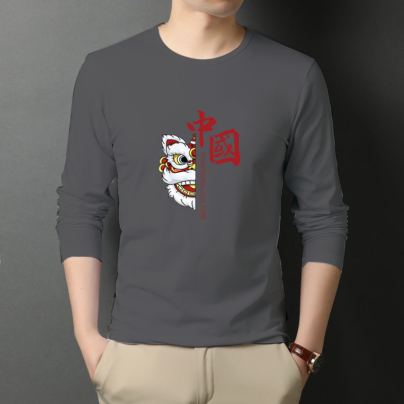 남자의 내셔널 패션 그린 긴팔 티셔츠 남성 캐주얼 이너베이스 셔츠 겉옷 입고 Instagram 스타일 유행 탑 의류스토어 가기