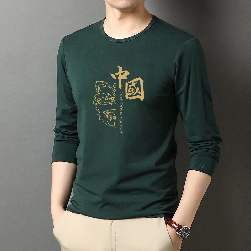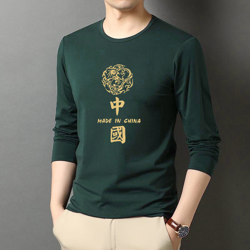 남자의 내셔널 패션 그린 긴팔 티셔츠 남성 캐주얼 이너베이스 셔츠 겉옷 입고 Instagram 스타일 유행 탑 의류