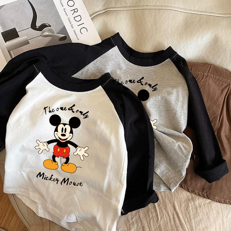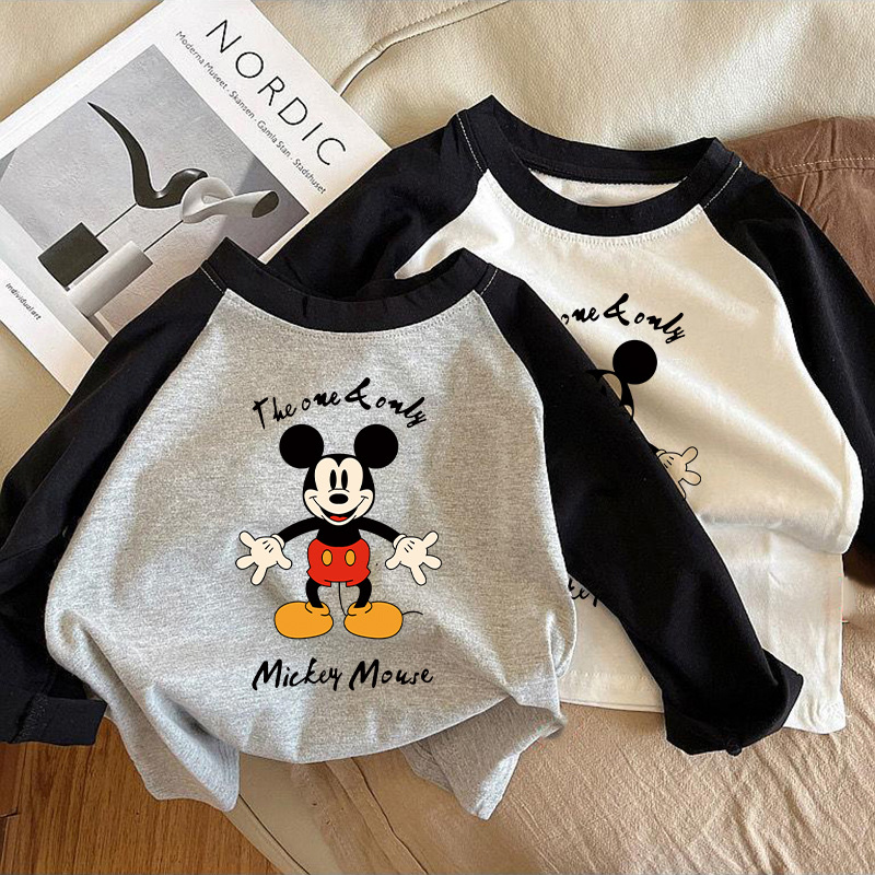 면 어린이 티셔츠 긴팔 남성 및 여성 아동복 2023 귀여운 만화 애니메이션 어린이 바닥 탑 봄과 가을스토어 가기