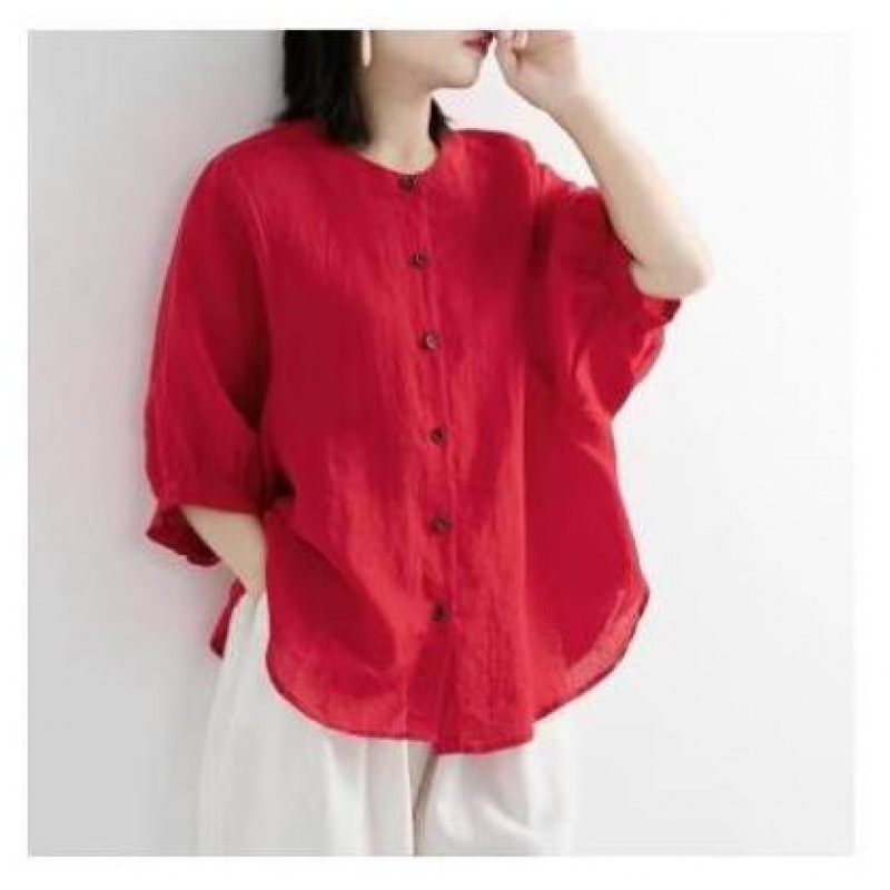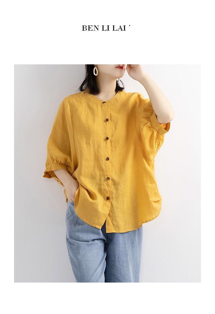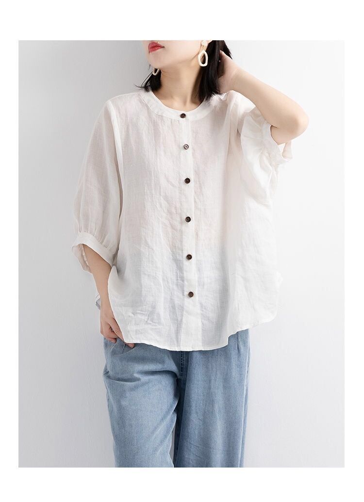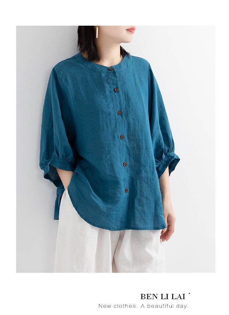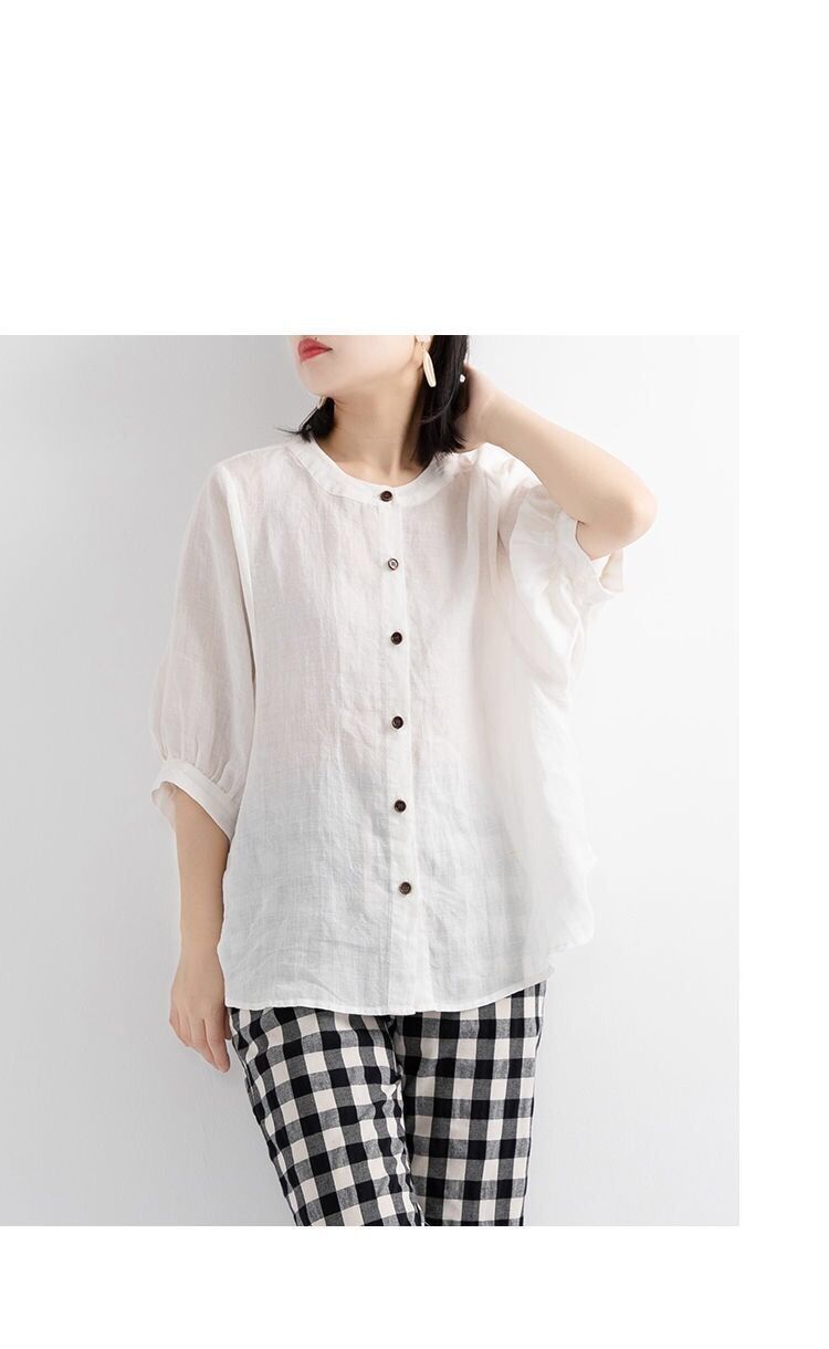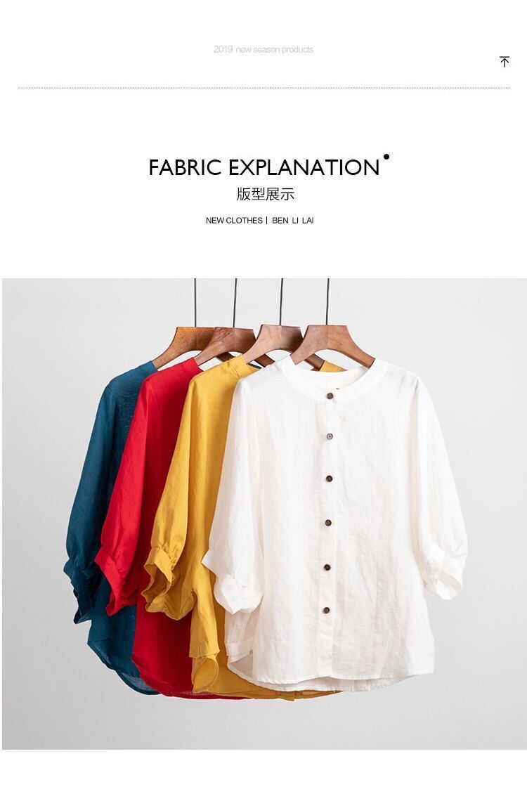 새로운 코튼 린넨 셔츠 여성의 중간 소매 랜턴 슬리브 빈티지 예술적 탑 플러스 사이즈 느슨한 슬리밍 여성의 셔츠