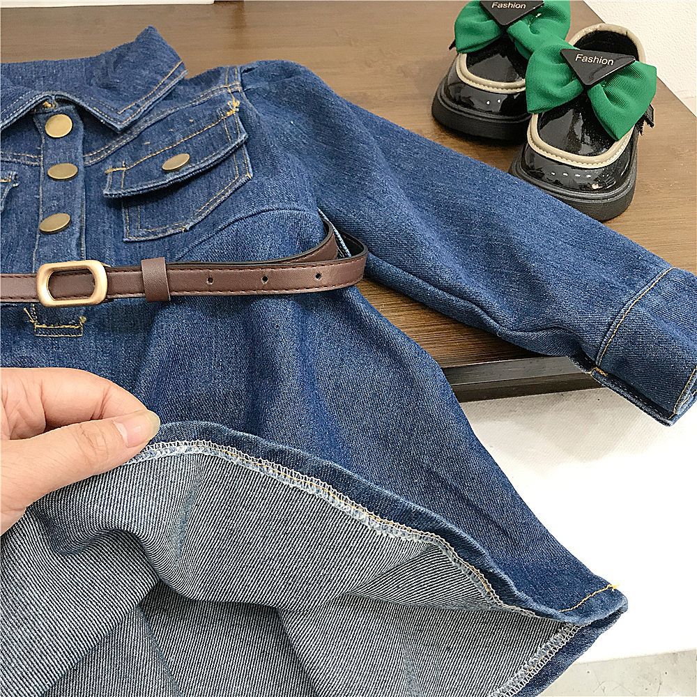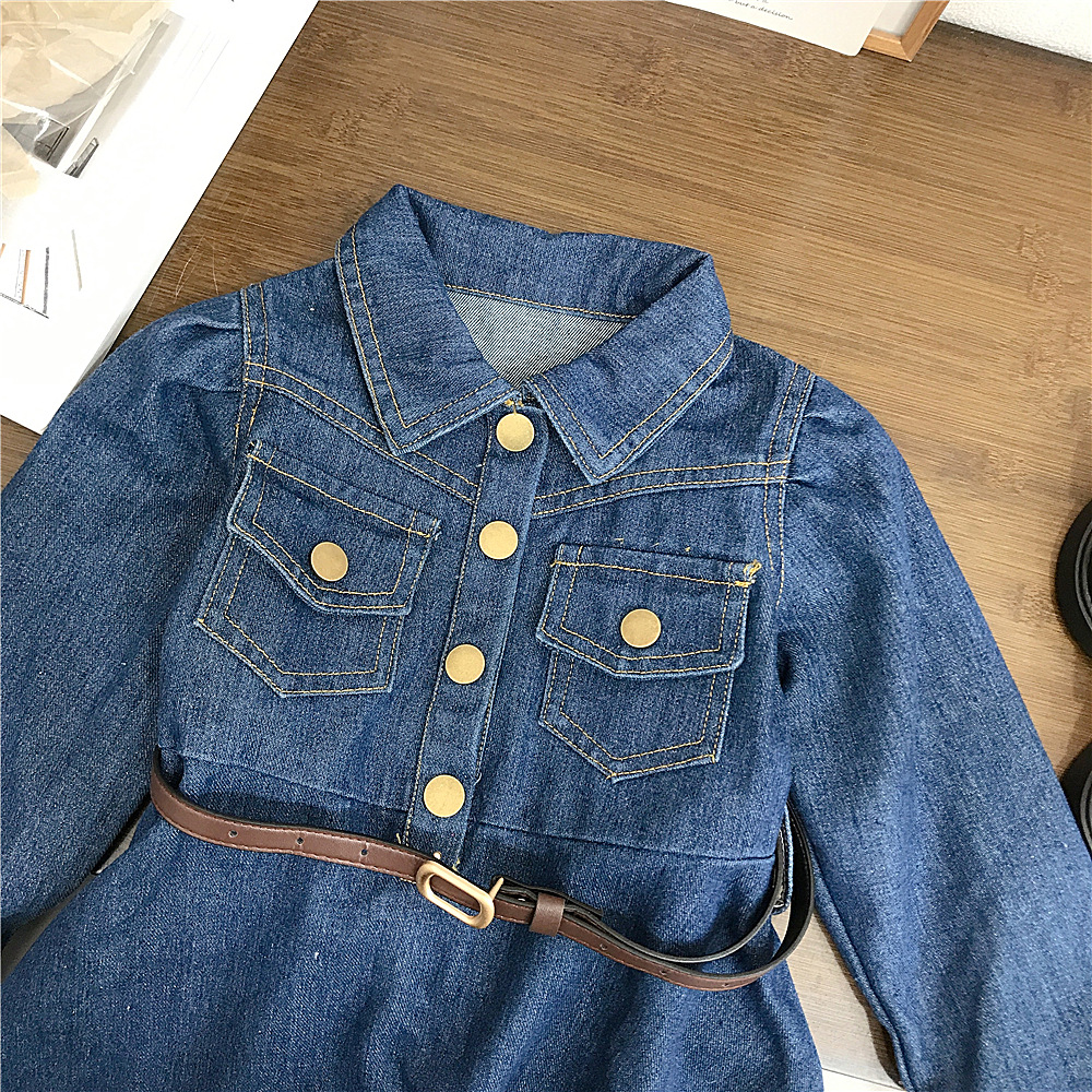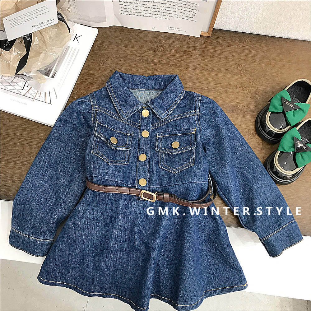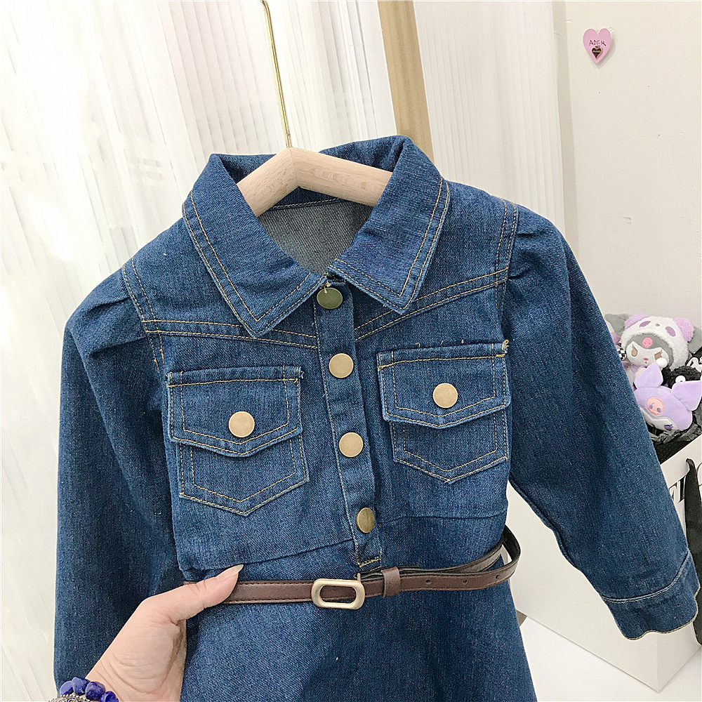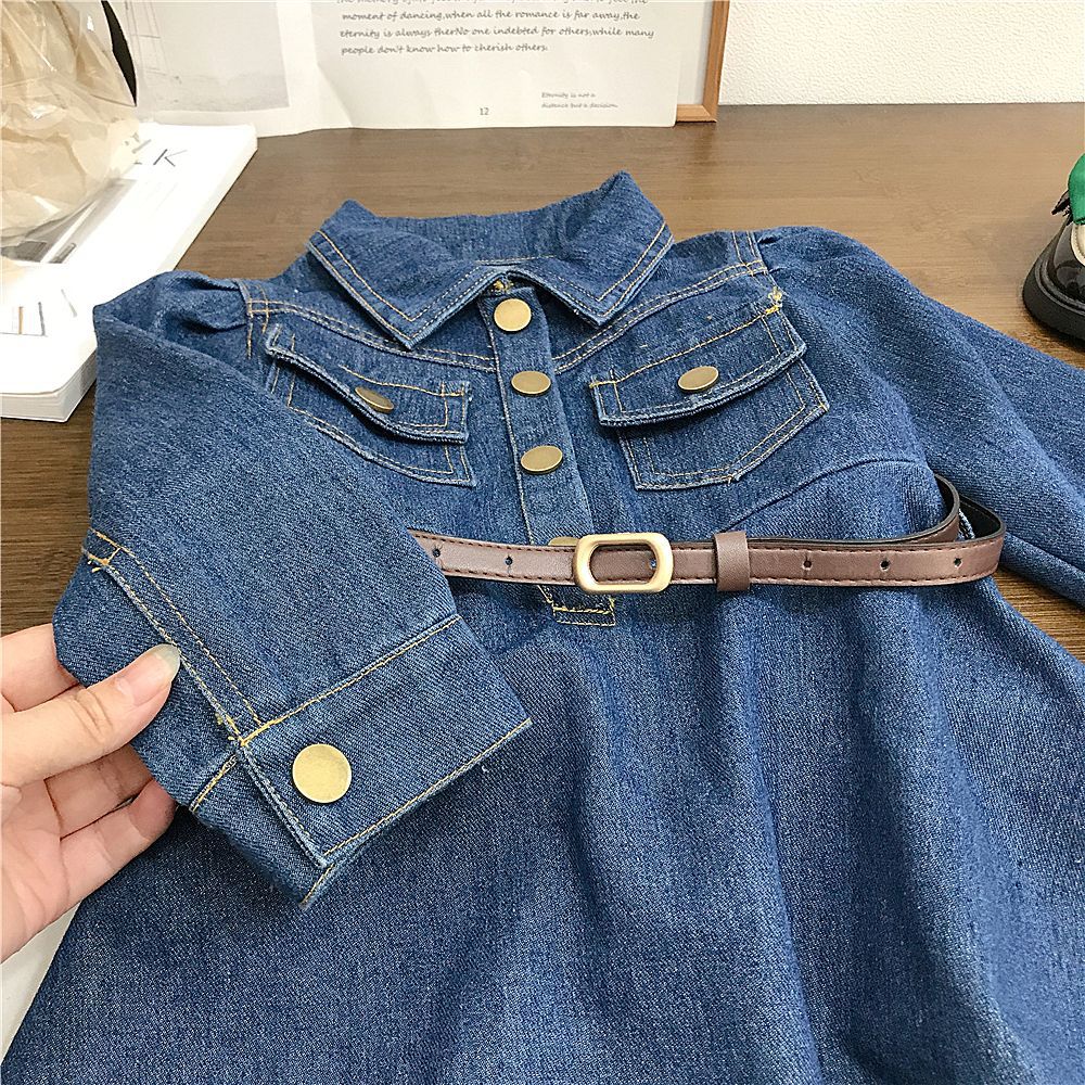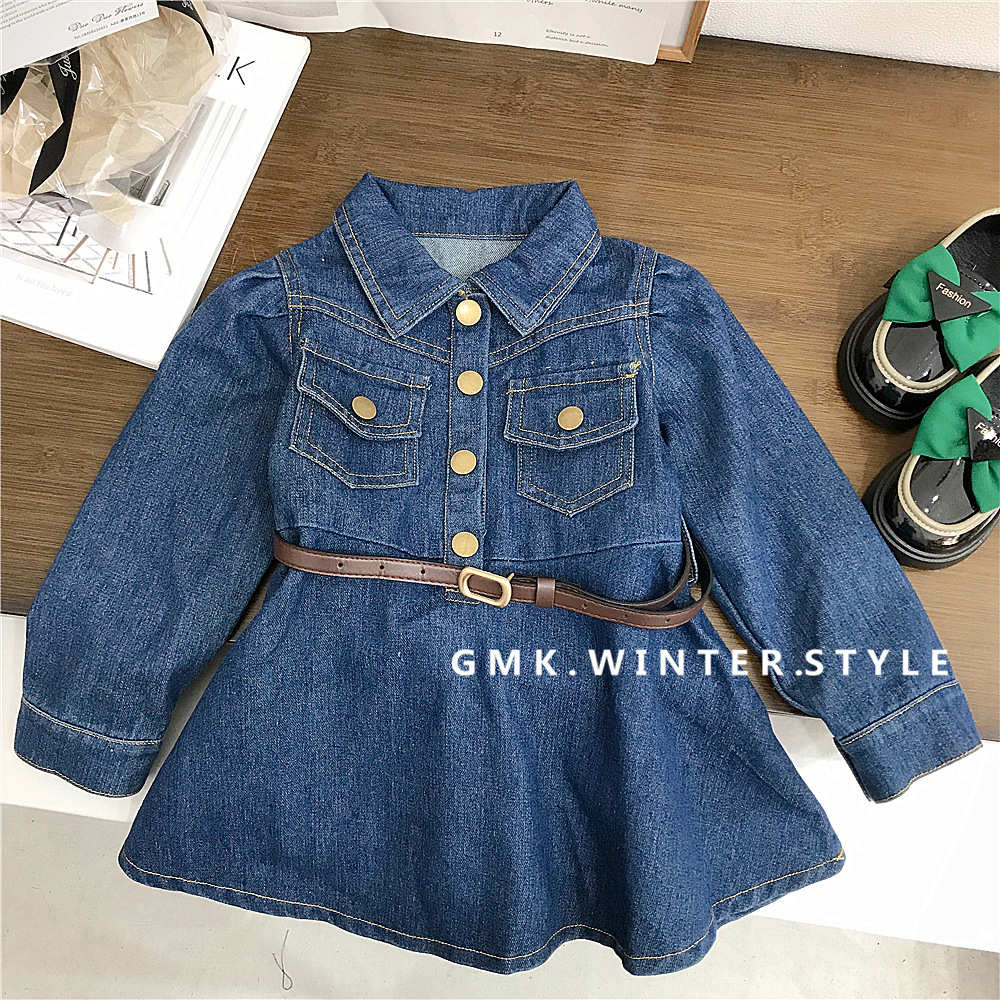 여아 가을 데님 스커트 새로운 아이들의 아기 소녀 유행 이른 가을 한국 스타일 슬림 핏 원피스 대외 무역스토어 가기