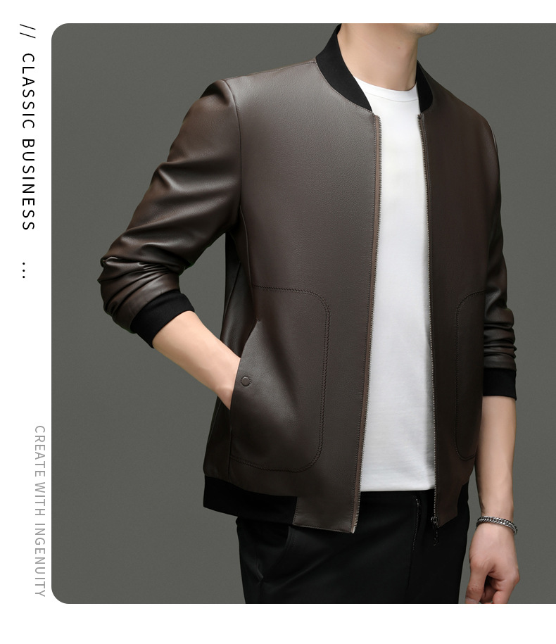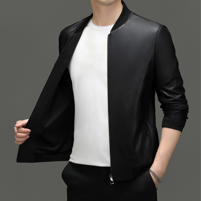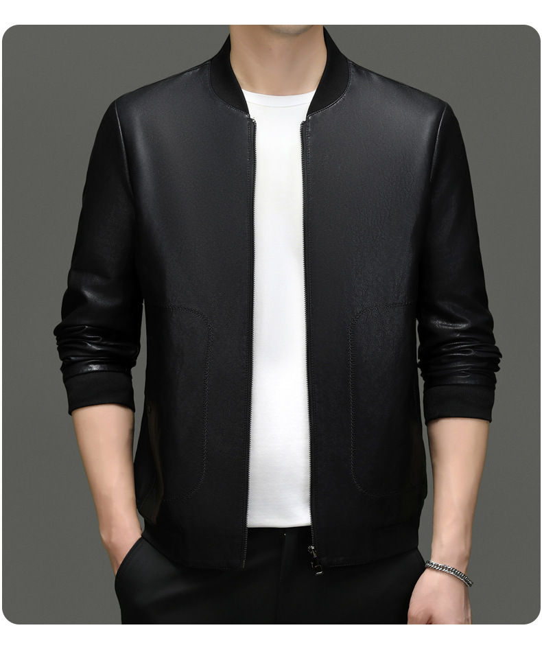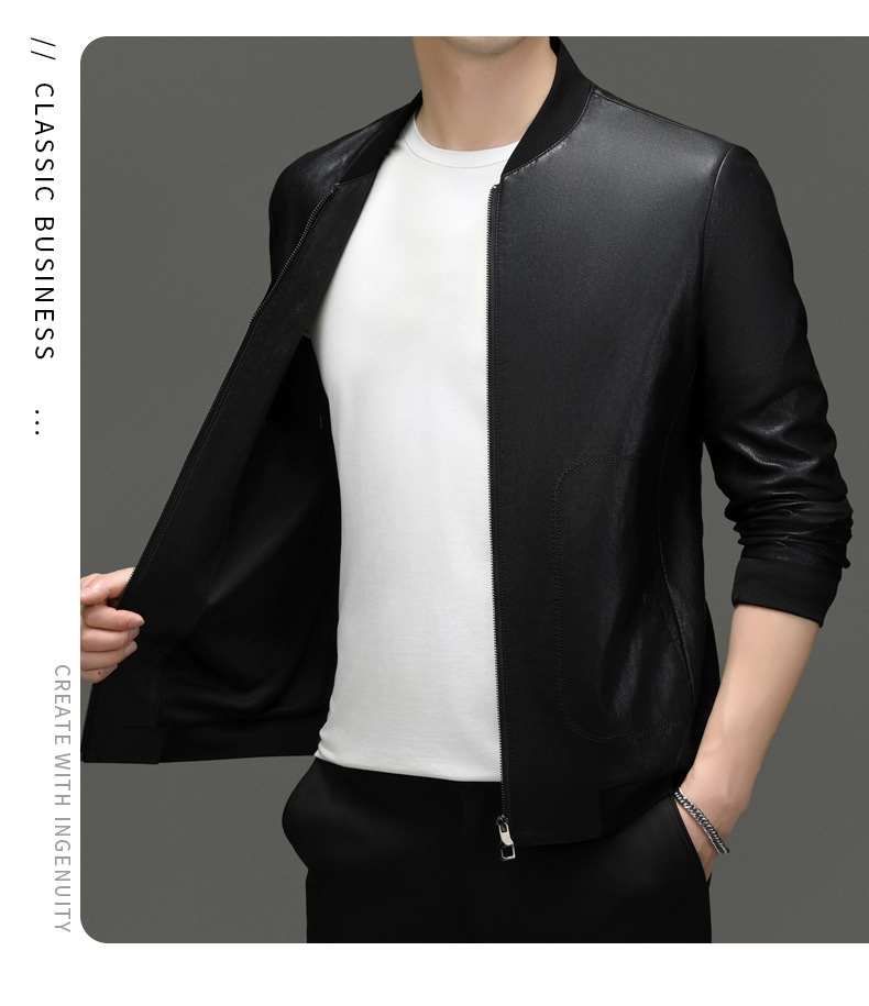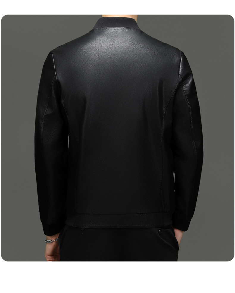 가을과 겨울 새로운 모조 정품 가죽 자켓 남자의 PU 가죽 자켓 얇은 haining 기모 야구 칼라 남자의 캐주얼 재킷