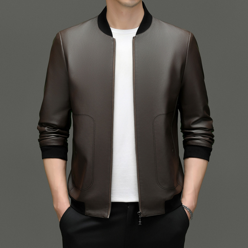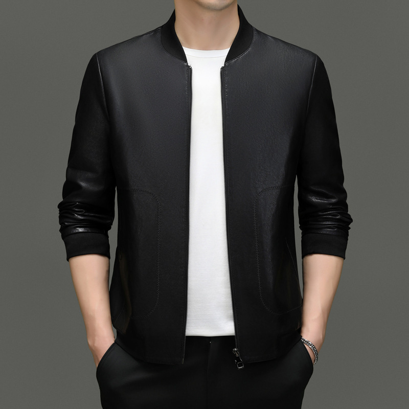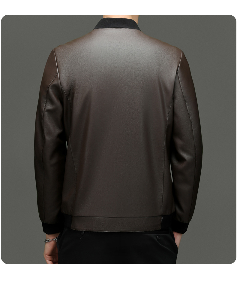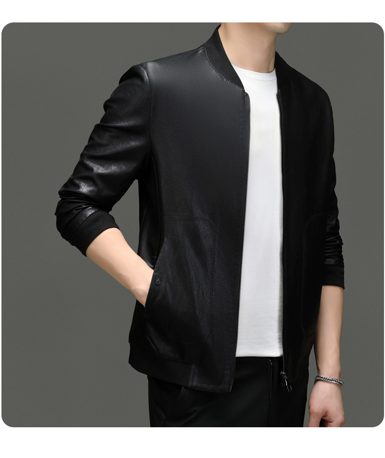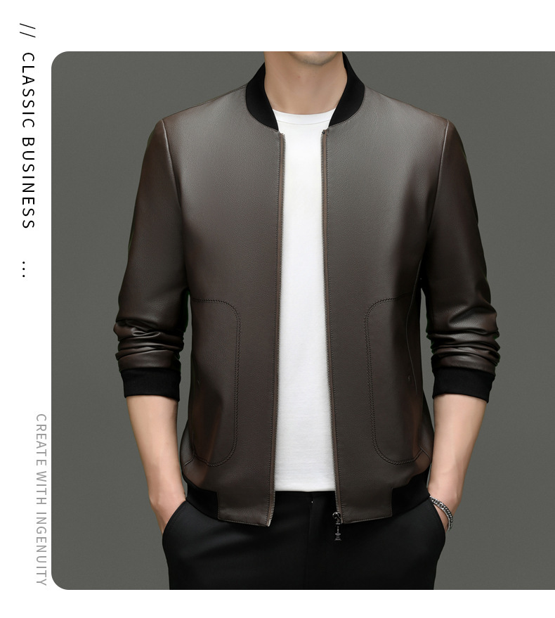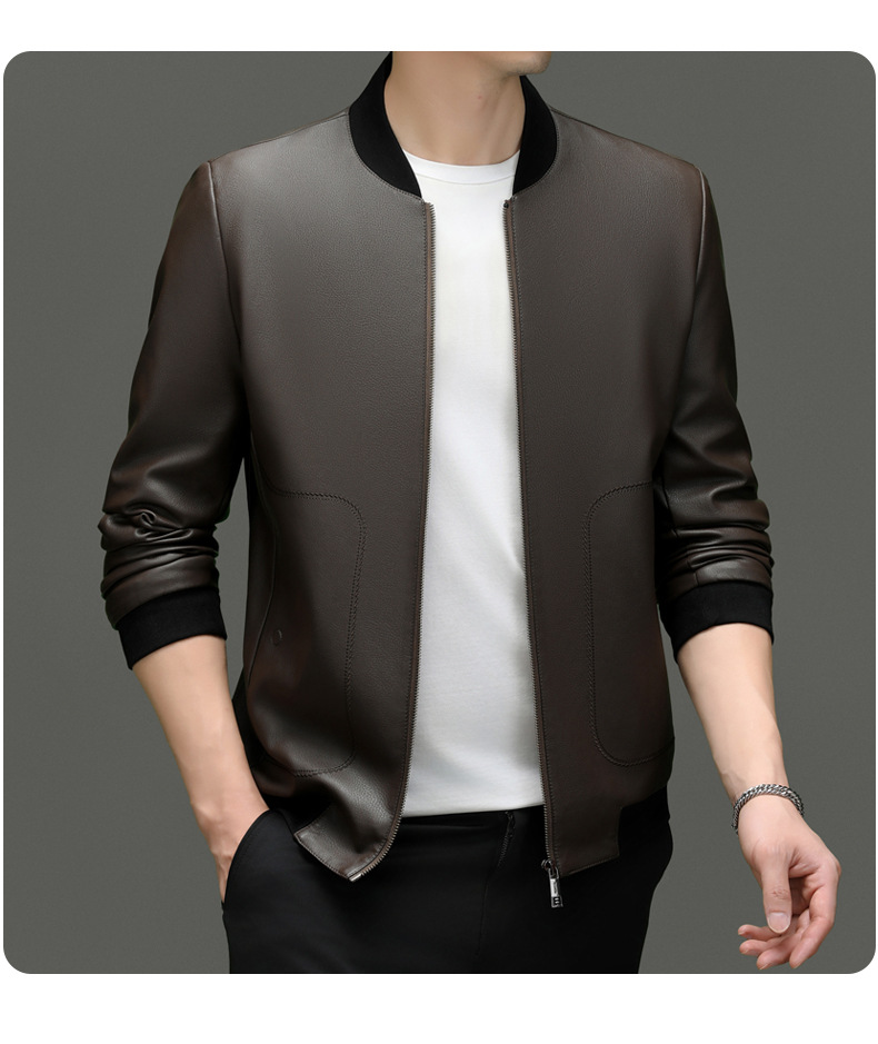 가을과 겨울 새로운 모조 정품 가죽 자켓 남자의 PU 가죽 자켓 얇은 haining 기모 야구 칼라 남자의 캐주얼 재킷