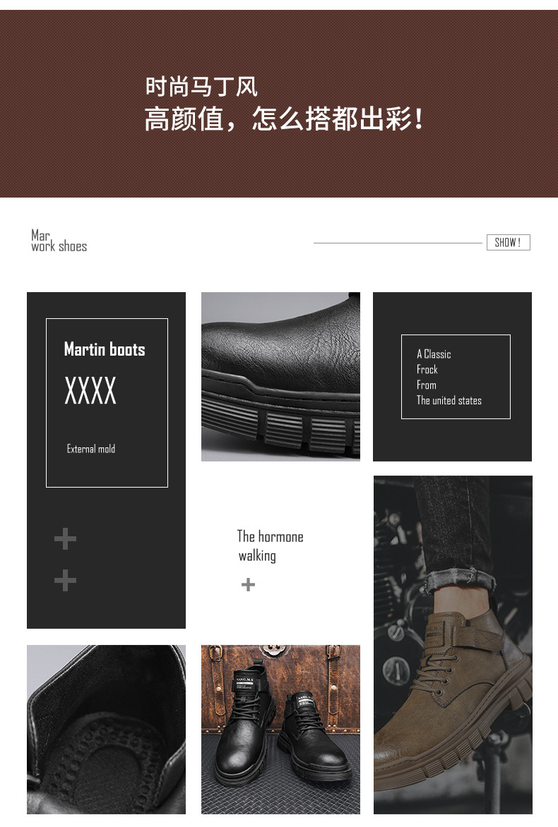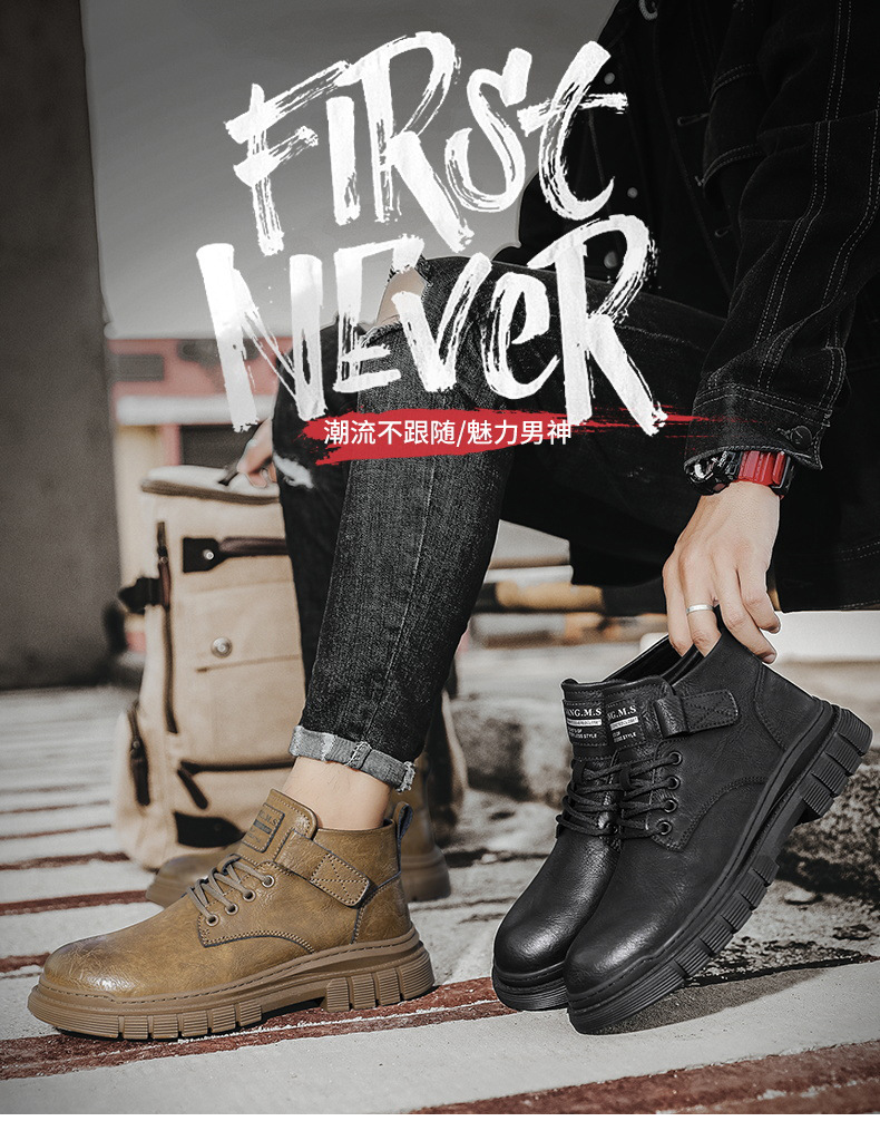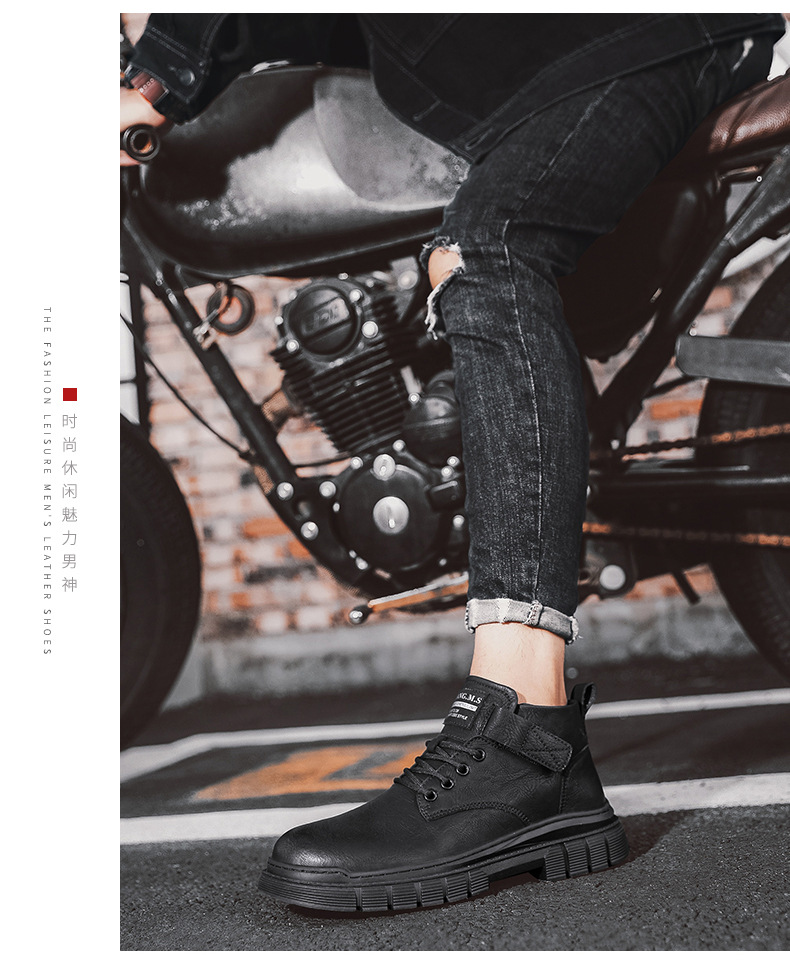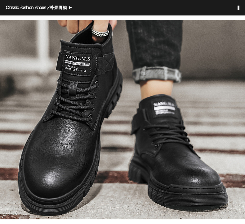 남성 신발 가을과 겨울 하이탑 마틴 부츠 2023 새로운 남성용 영국 로우탑 캐주얼 가죽 신발 복고풍 작업복 신발스토어 가기