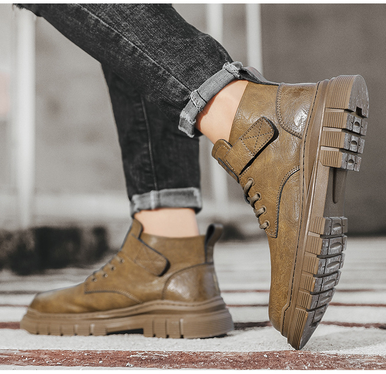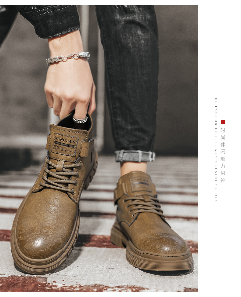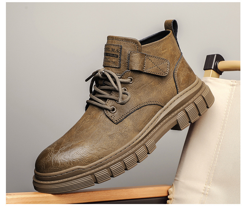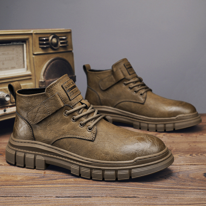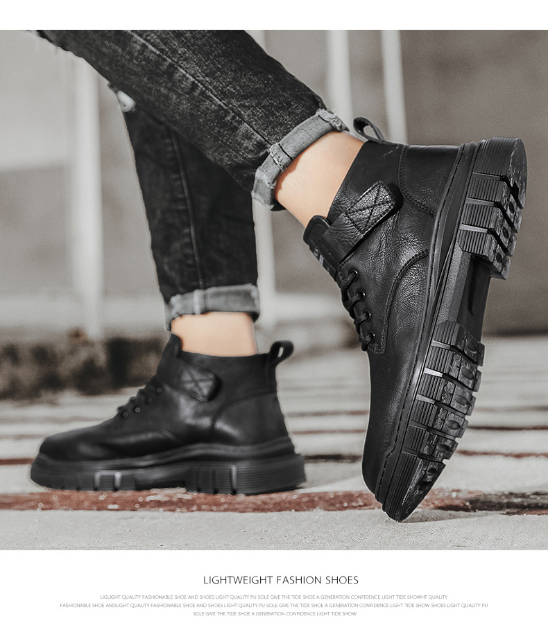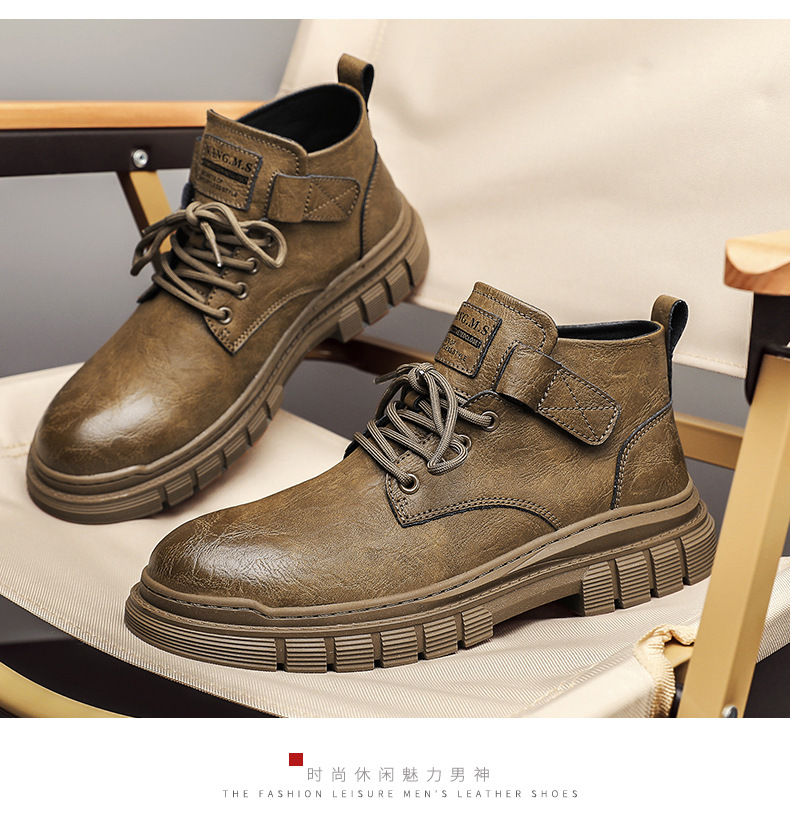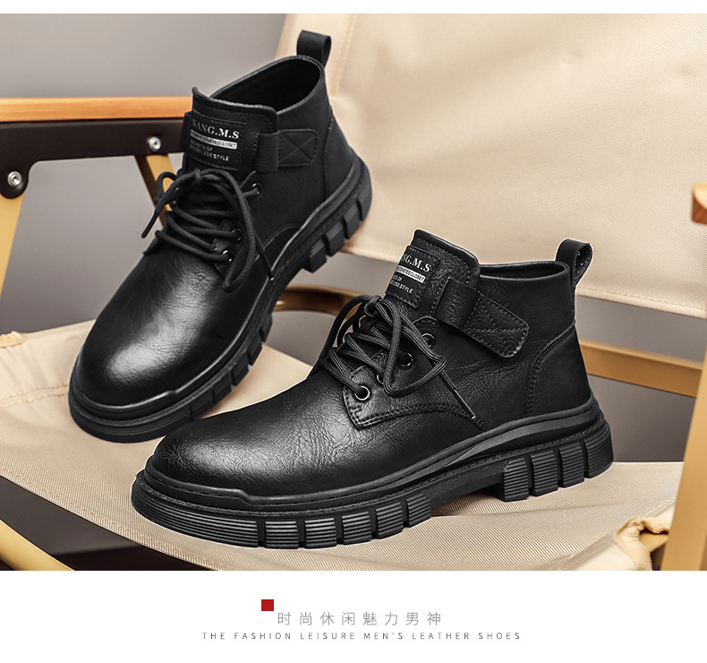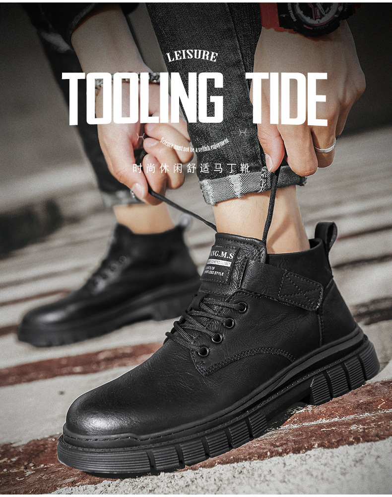 남성 신발 가을과 겨울 하이탑 마틴 부츠 2023 새로운 남성용 영국 로우탑 캐주얼 가죽 신발 복고풍 작업복 신발