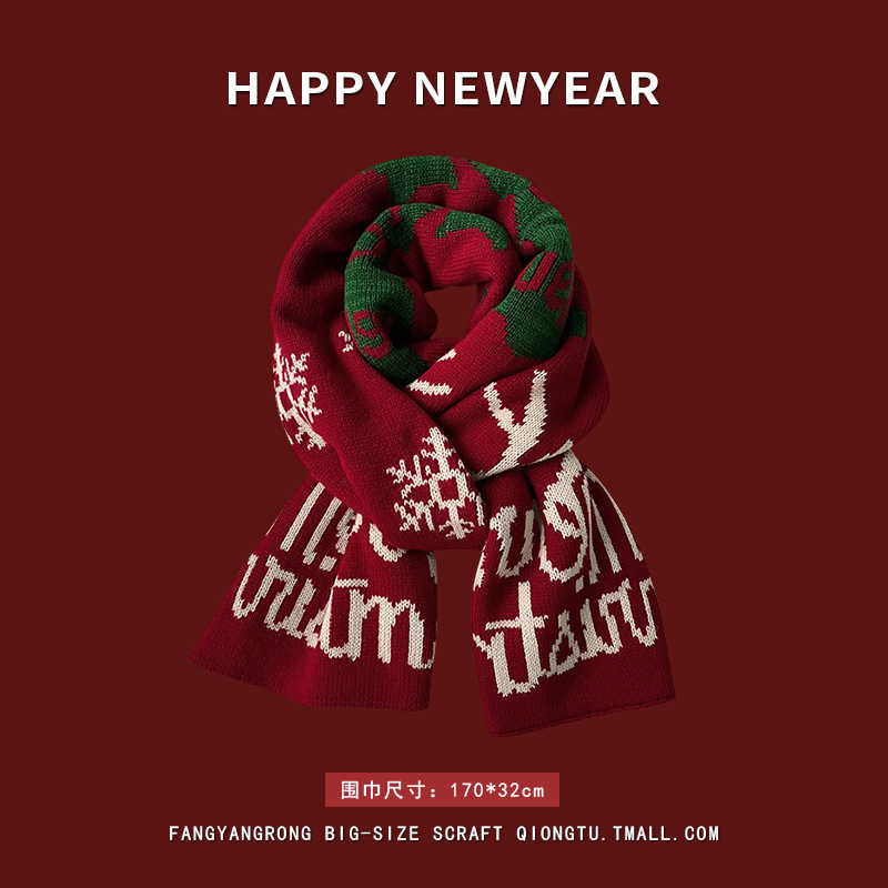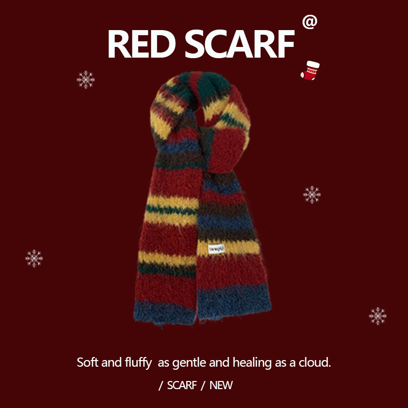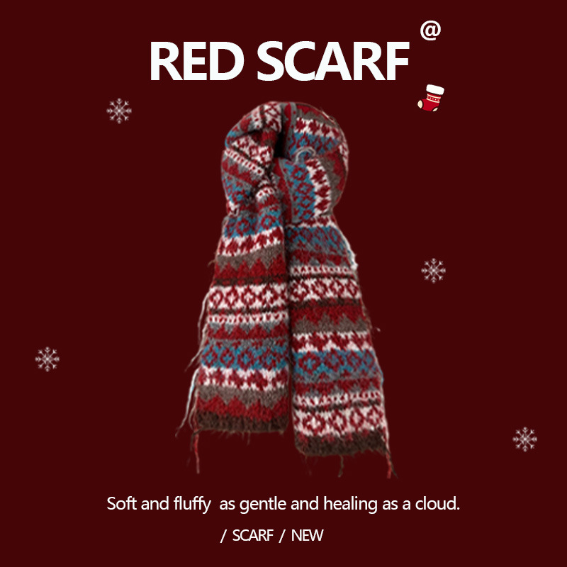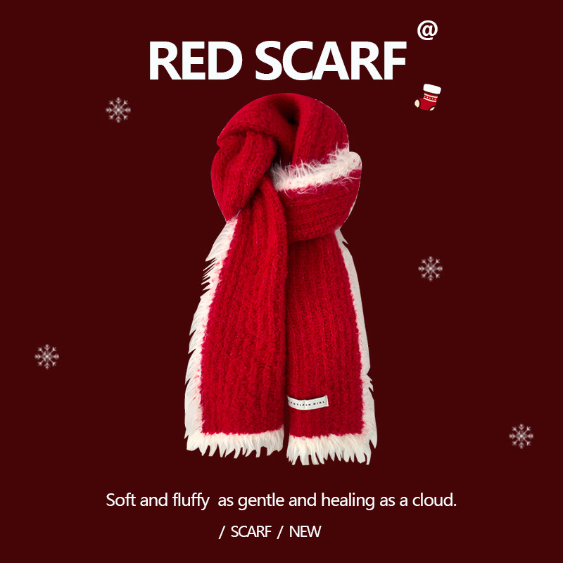 안코라 레드 크리스마스 레드 스카프 여성용 가을 겨울 분위기 있는 겨울 인기상품 2025 신상 두꺼운 보온 도매