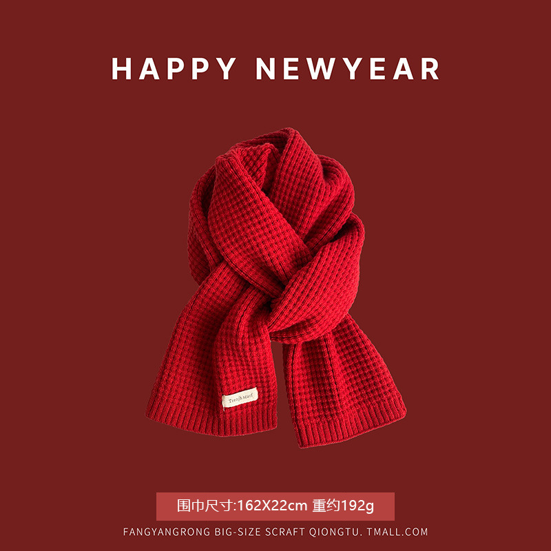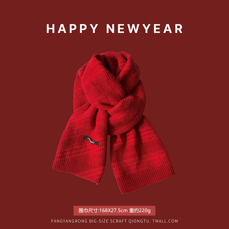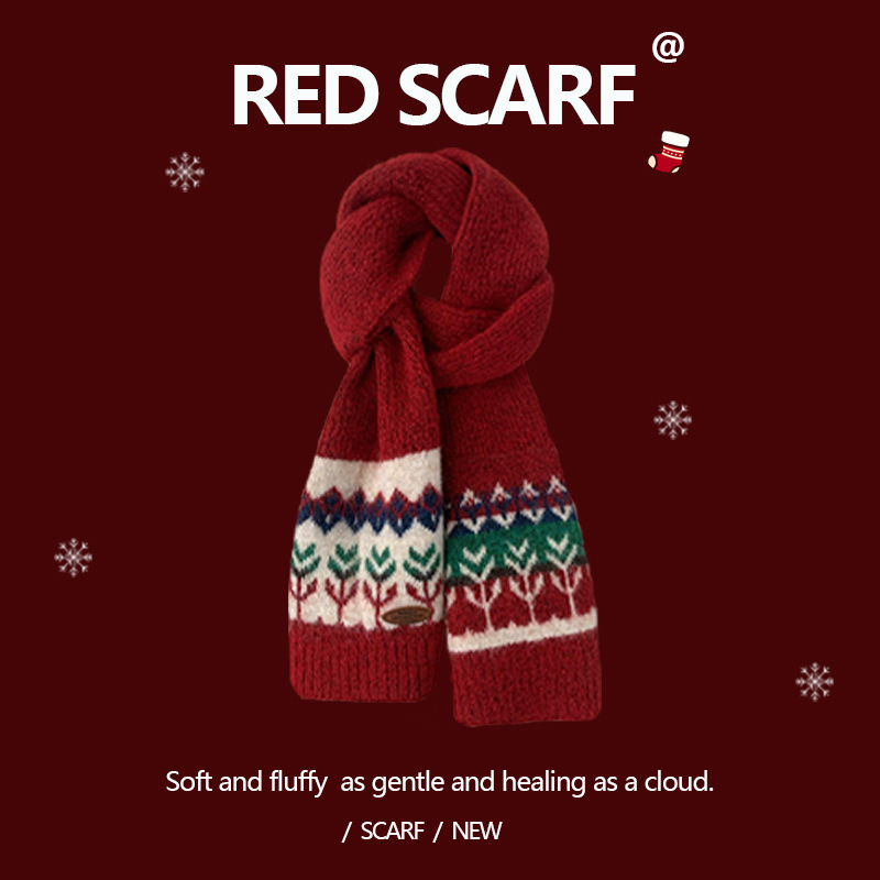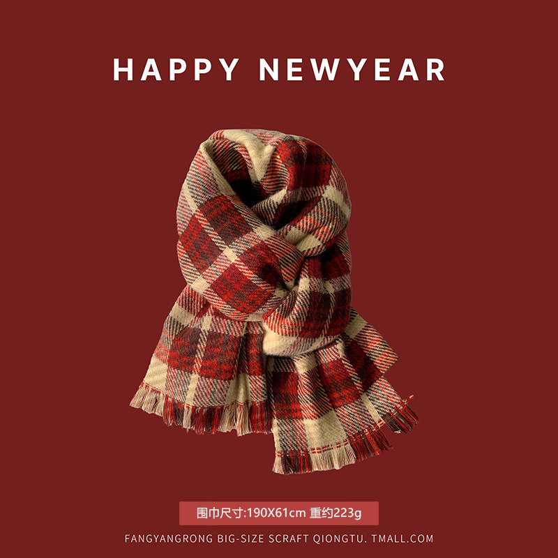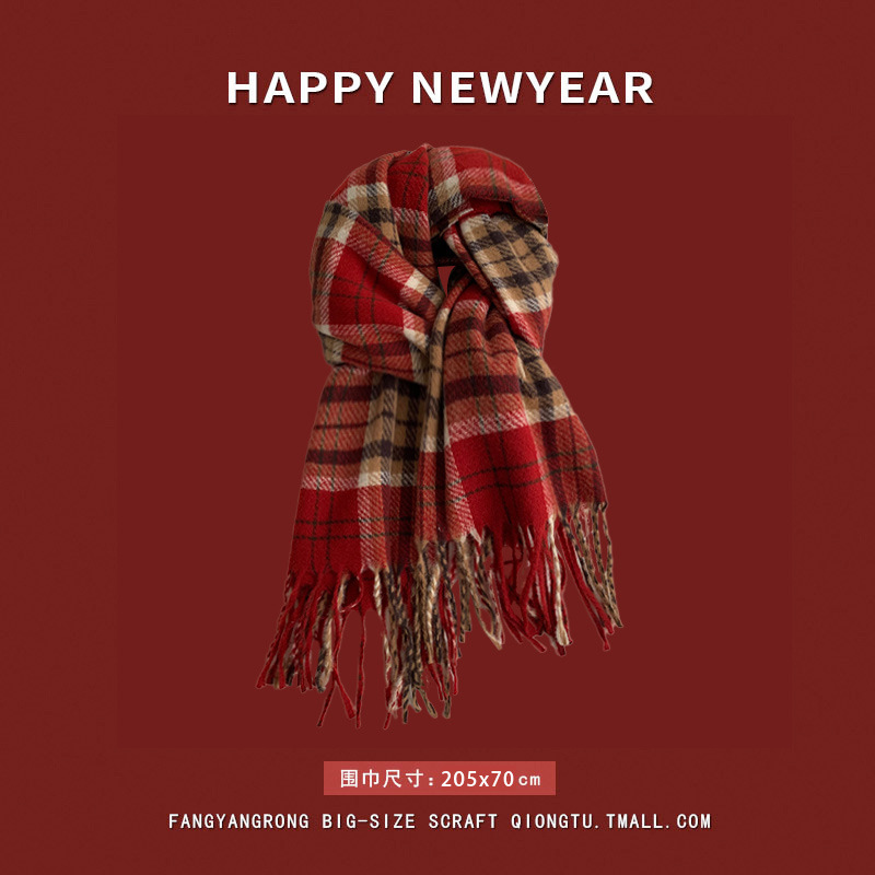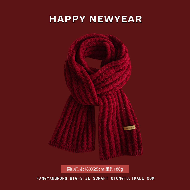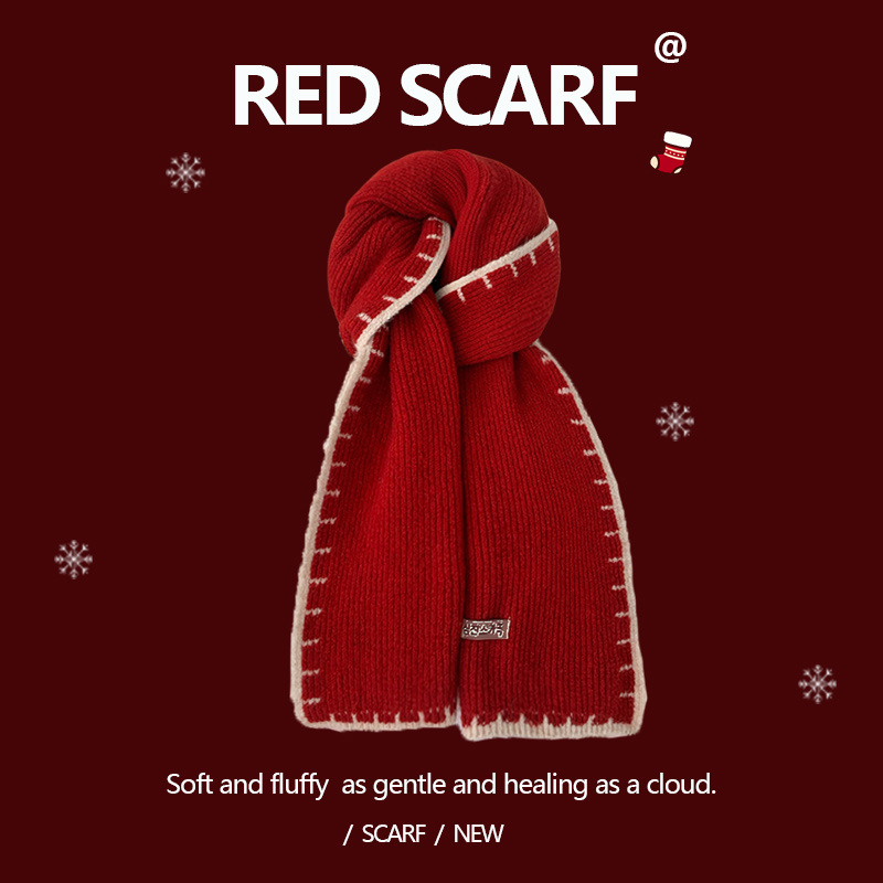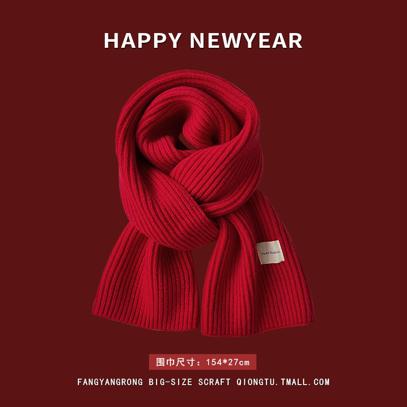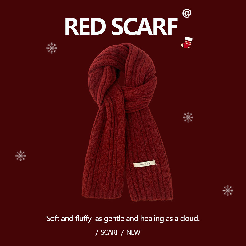 안코라 레드 크리스마스 레드 스카프 여성용 가을 겨울 분위기 있는 겨울 인기상품 2025 신상 두꺼운 보온 도매스토어 가기