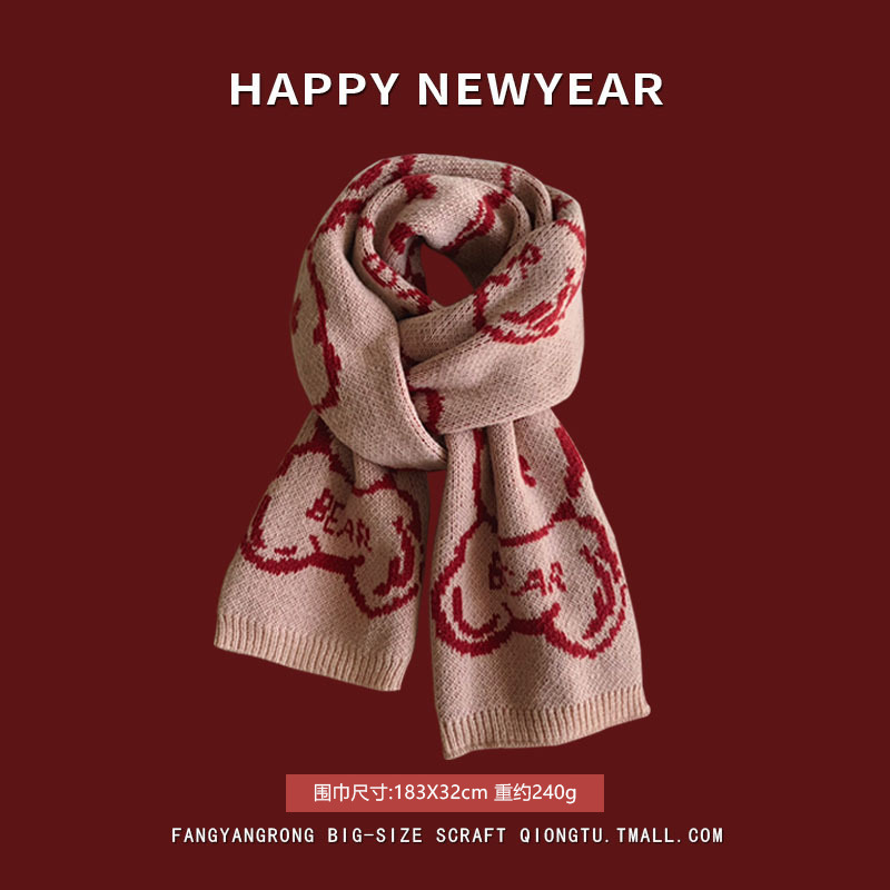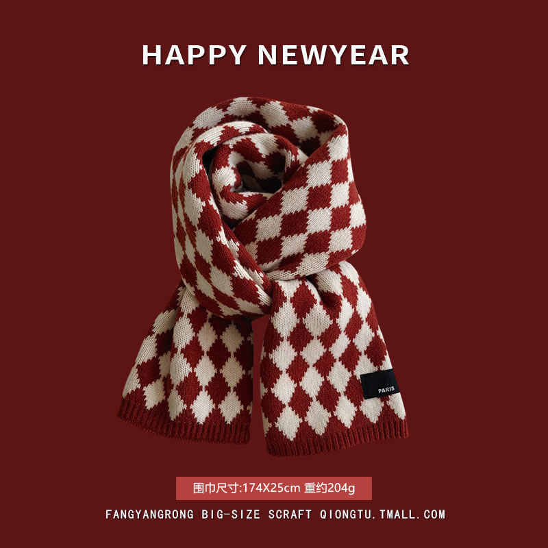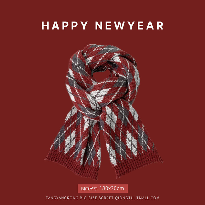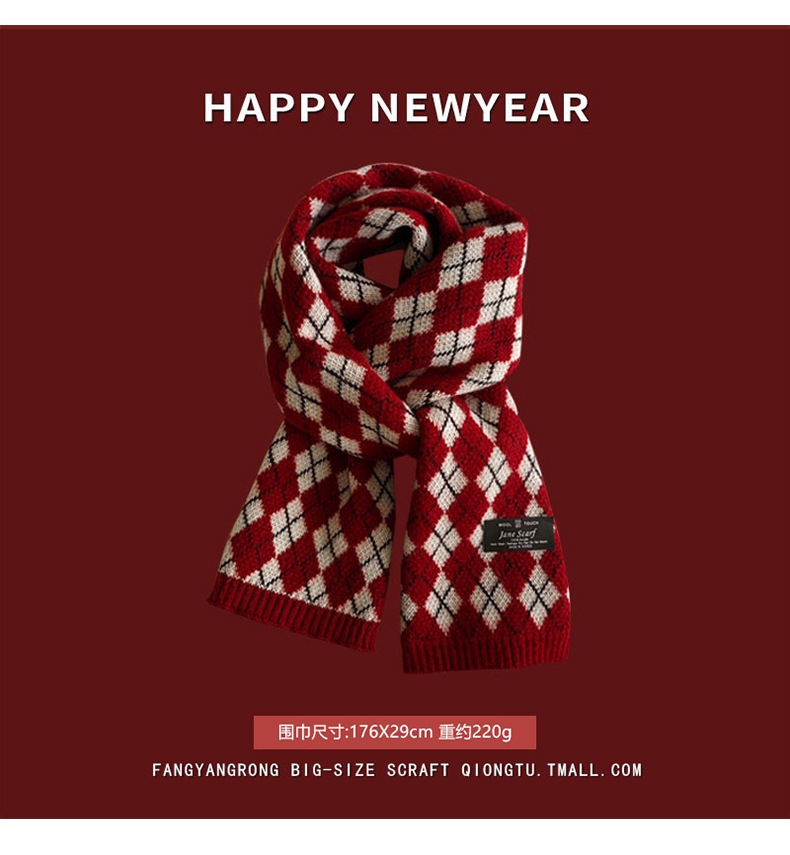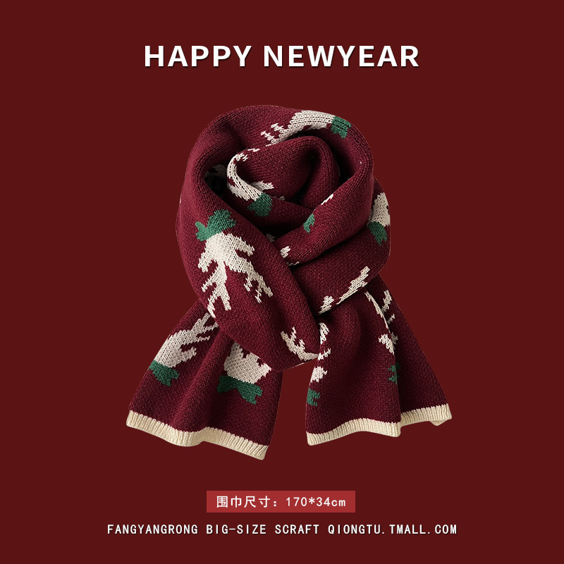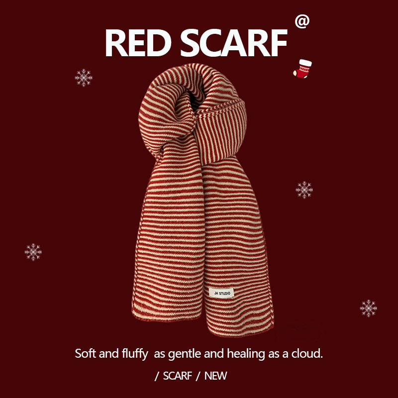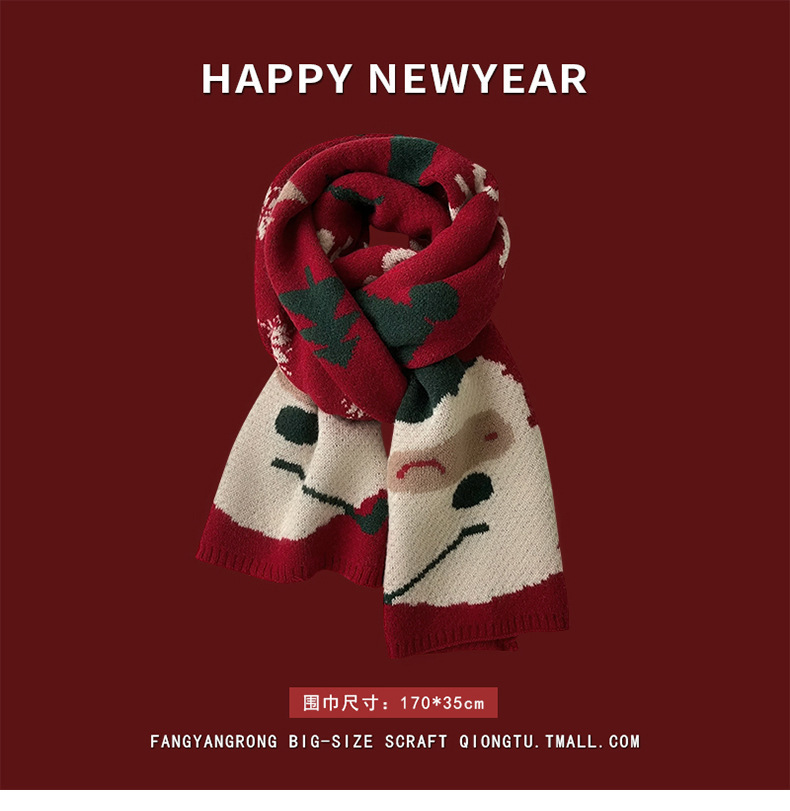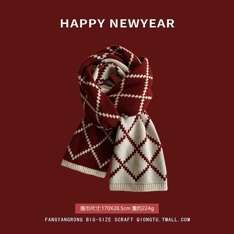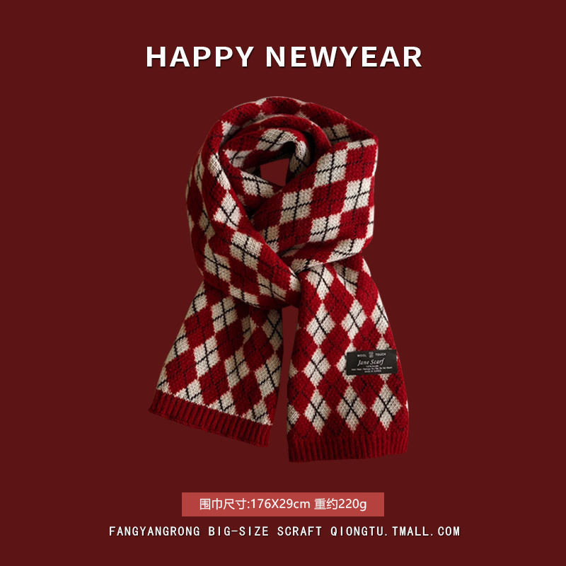 안코라 레드 크리스마스 레드 스카프 여성용 가을 겨울 분위기 있는 겨울 인기상품 2025 신상 두꺼운 보온 도매스토어 가기