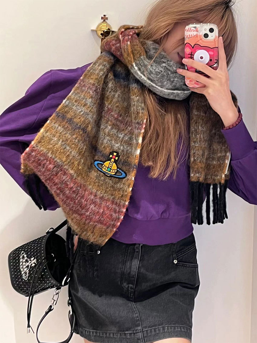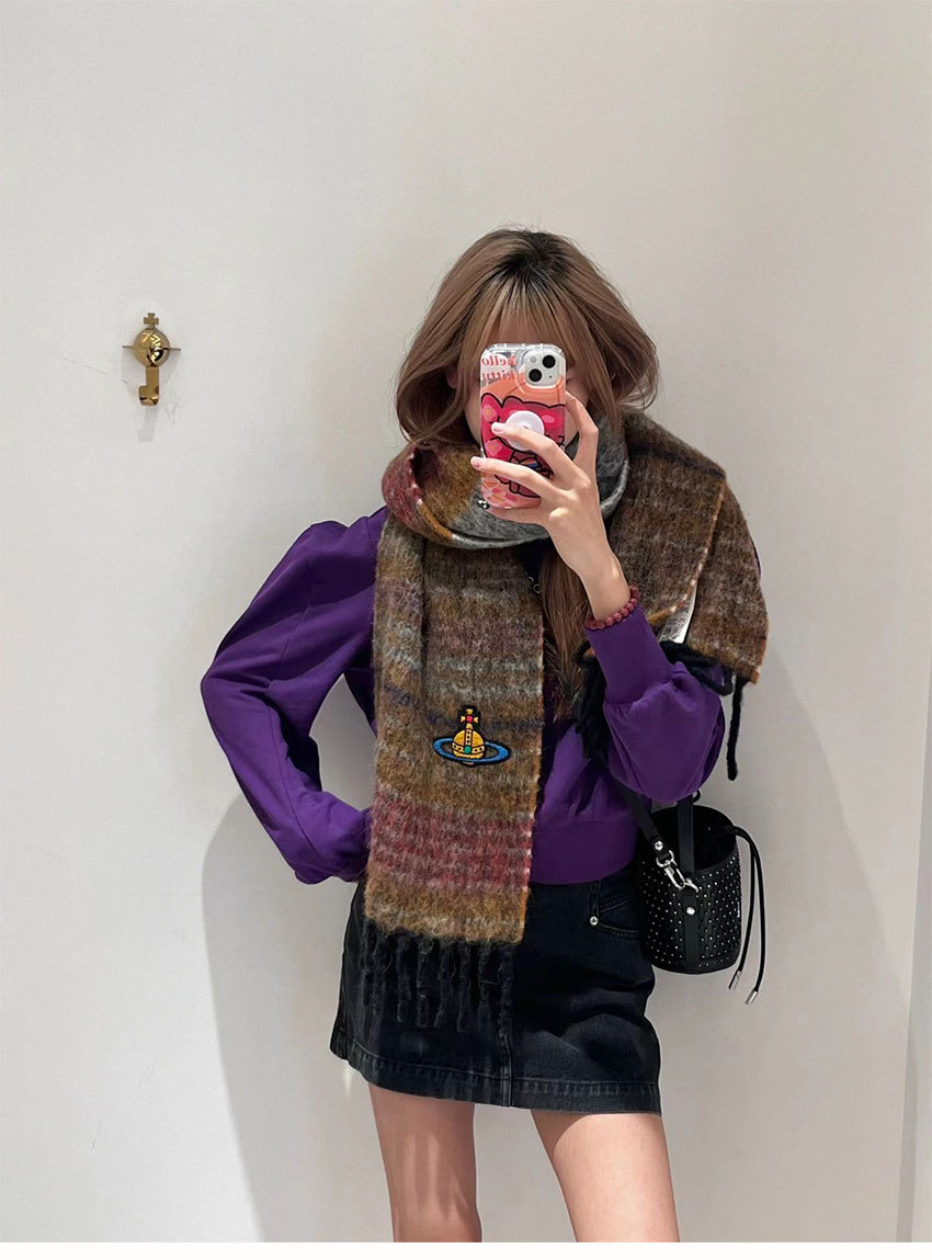 웨스턴 퀸 엘리자베스 알파카 스카프 스트라이프 컬러 블록 따뜻한 외출 고급 심플 모헤어 숄스토어 가기