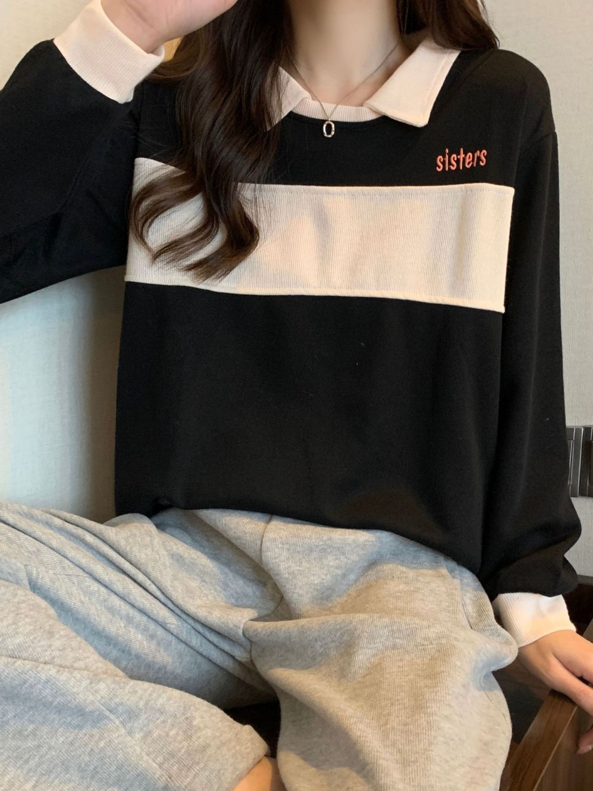 도매 2023 가을 새로운 긴 소매 대비 컬러 폴로 셔츠 여성을위한 대학 느슨한 올 매치 게으른 스타일 티셔츠 탑스토어 가기