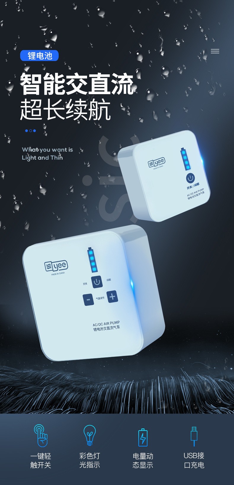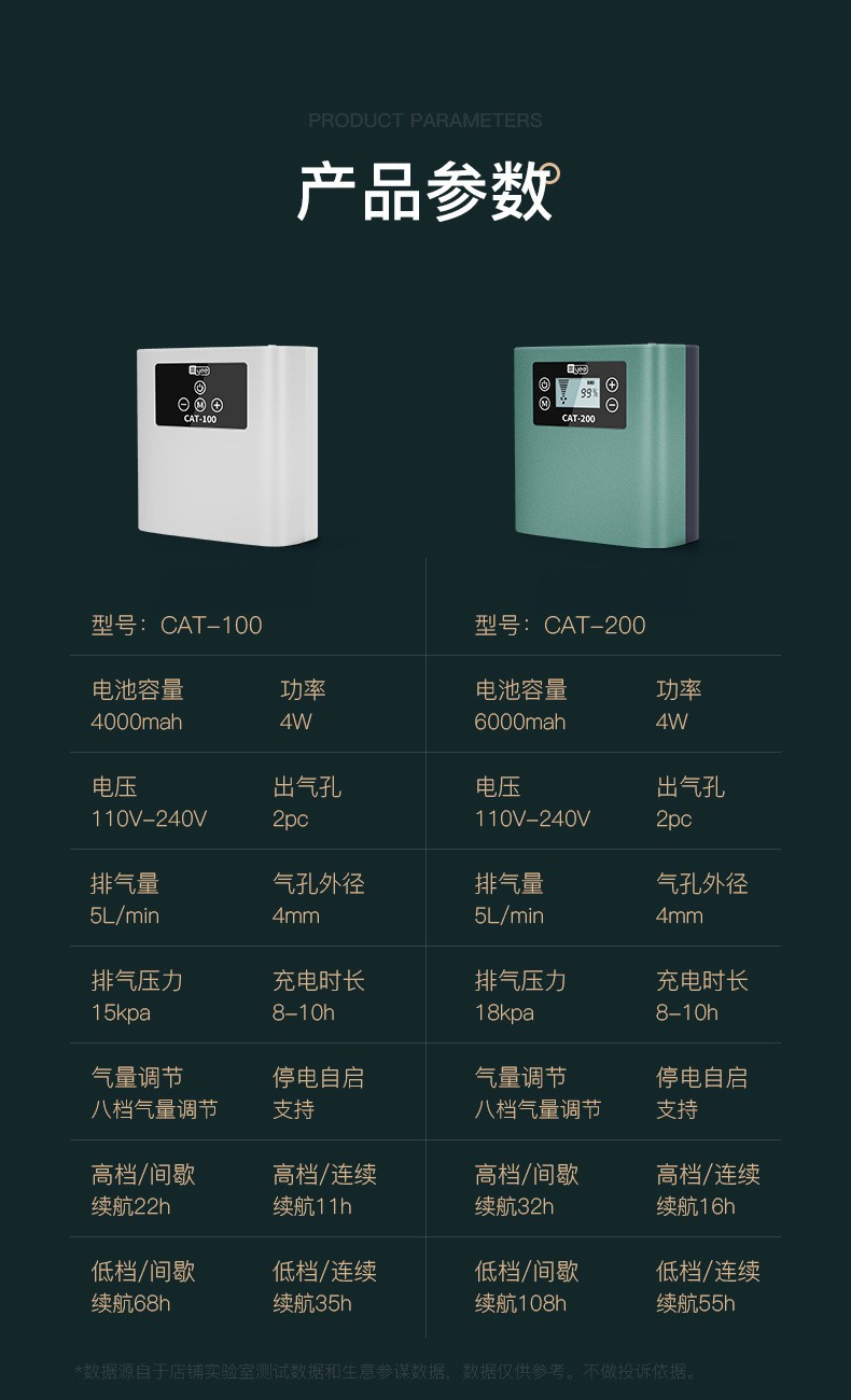 • CAT-200 YEE 중형 리튬 배터리 산소 펌프(화면 디스플레이 버전) 베어 펌프
