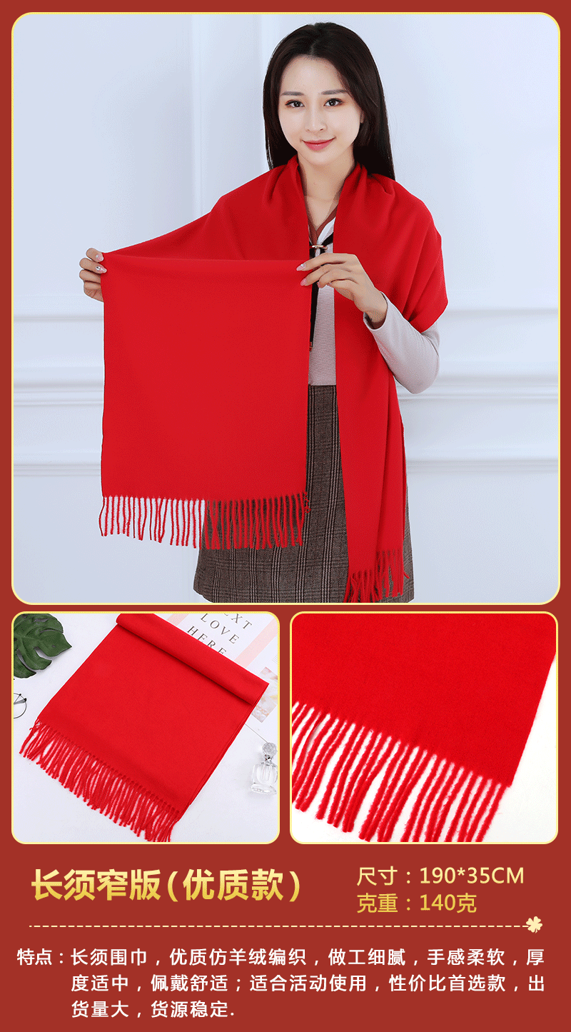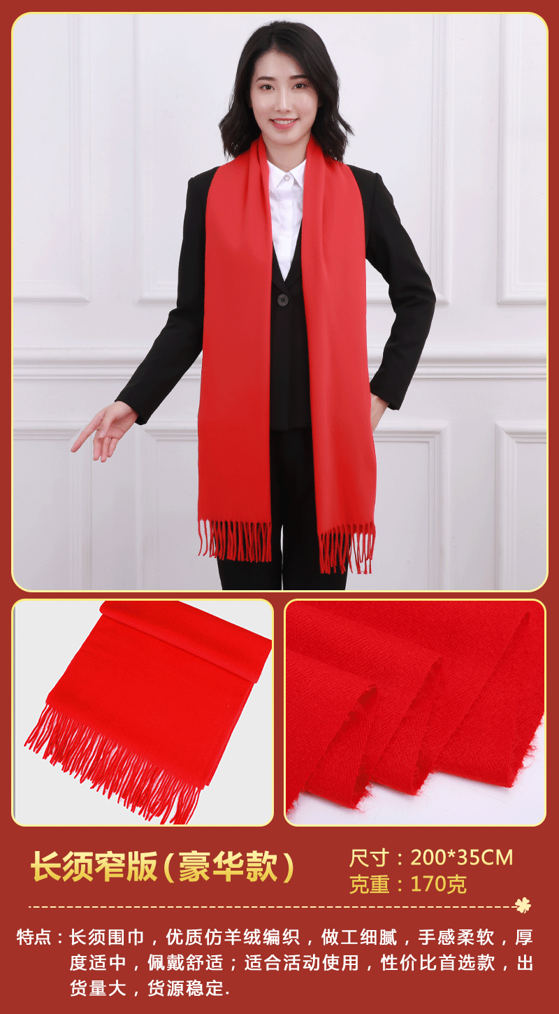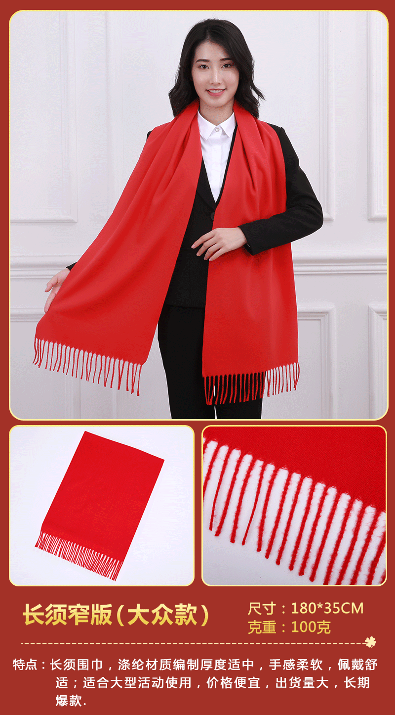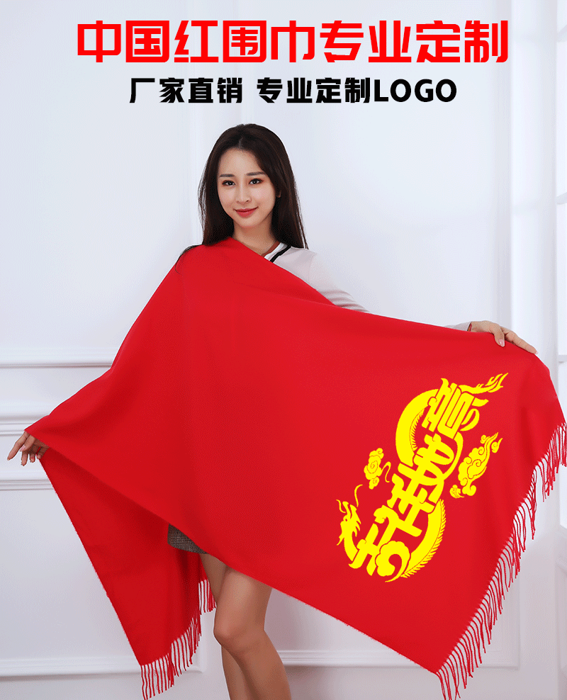 빨간 스카프 중국 레드 연회 활동 축하용 빨간색 스카프 인쇄된 로고 포함 빨간색 스카프 모조 캐시미어스토어 가기