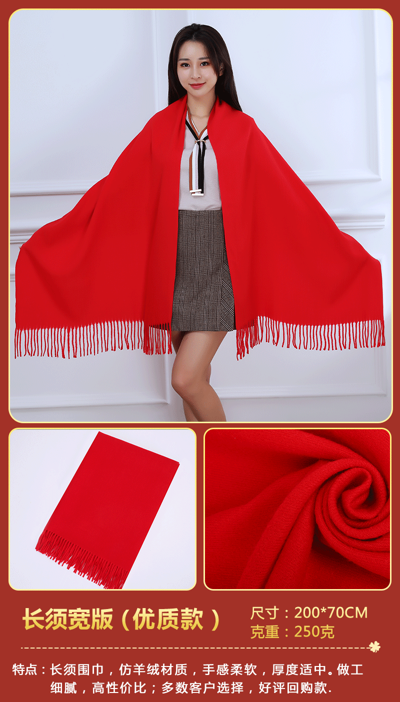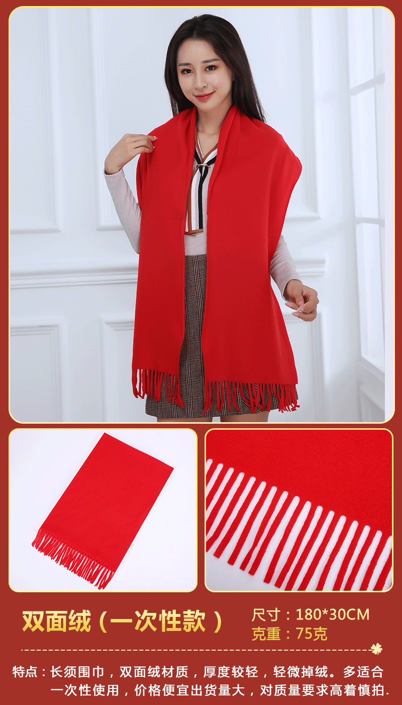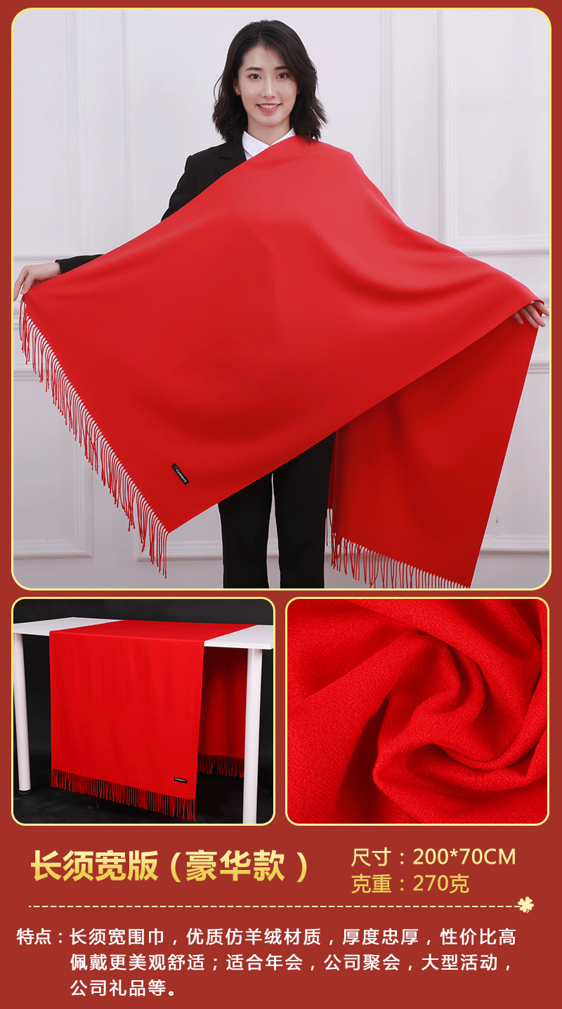 빨간 스카프 중국 레드 연회 활동 축하용 빨간색 스카프 인쇄된 로고 포함 빨간색 스카프 모조 캐시미어스토어 가기