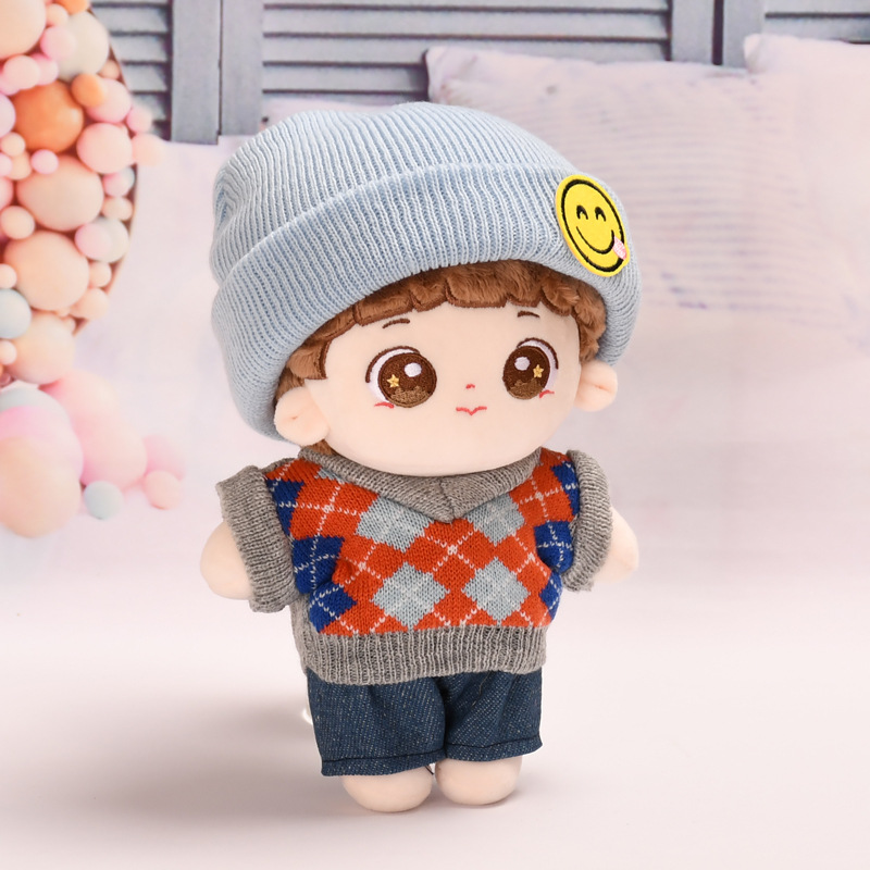 20cm 면 인형 옷 체크 무늬 스웨터 안경 웃는 얼굴 모자 없음 속성 인형 귀여운 인형 옷 교체스토어 가기