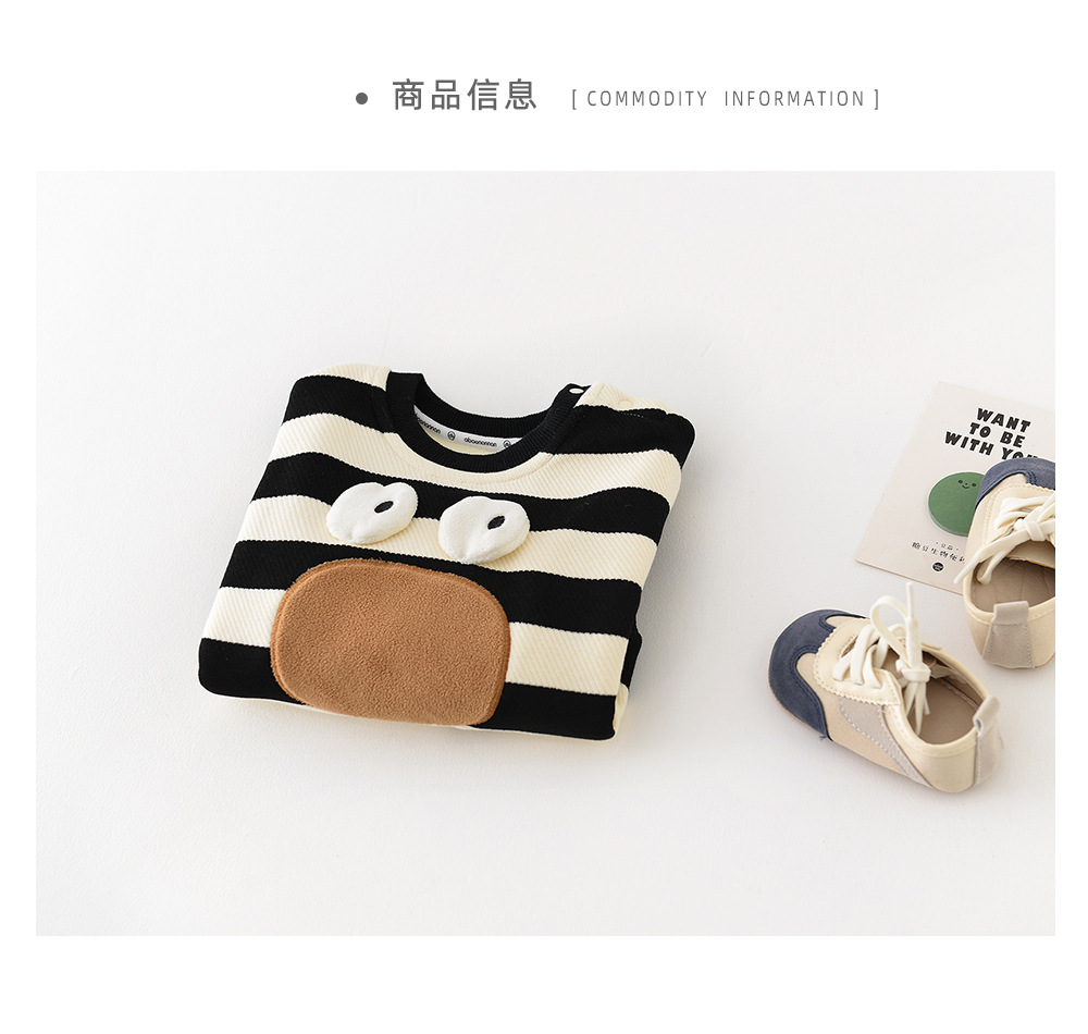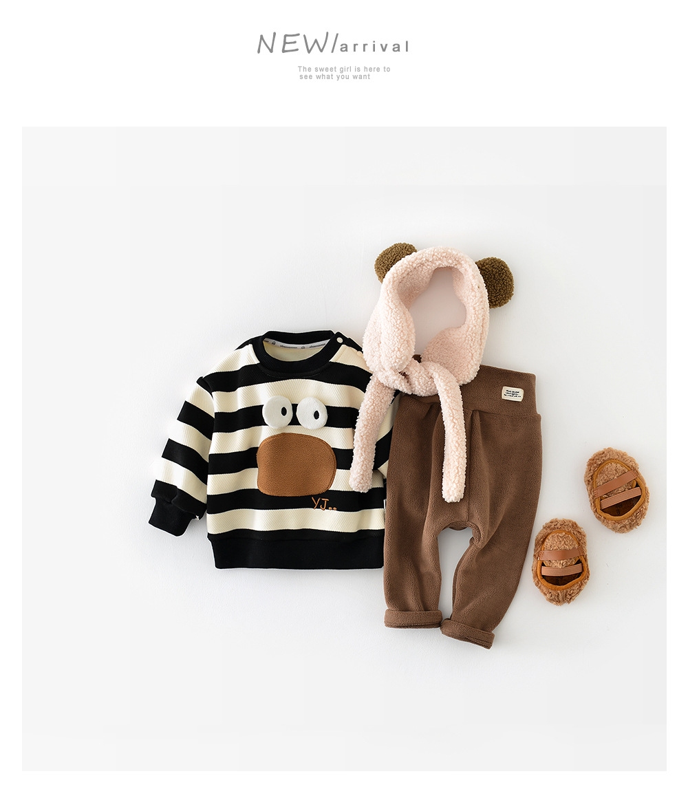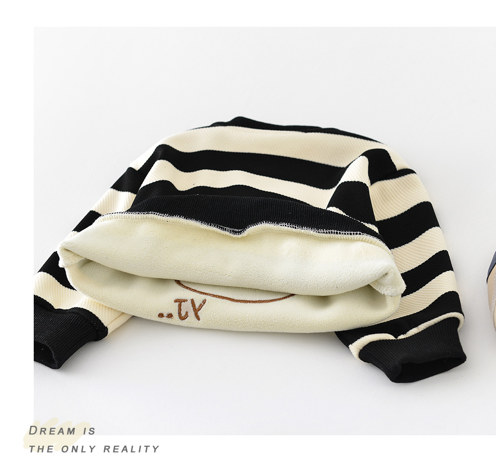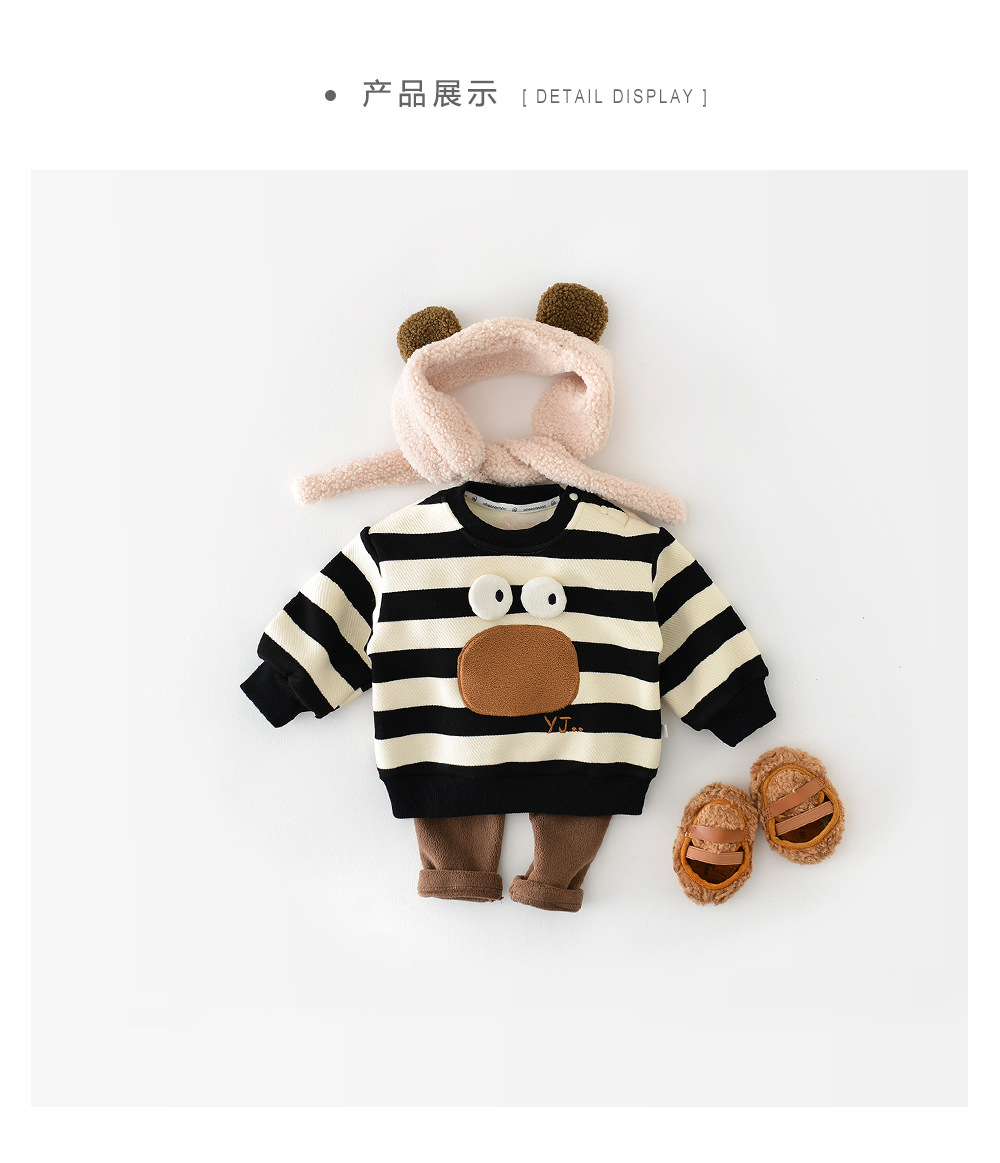 소년과 소녀 기모 스웨터 신생아 아기 서양 스타일 만화 겨울 옷 원피스 캐시미어 아기 캐주얼 탑 긴 소매 스트라이프스토어 가기