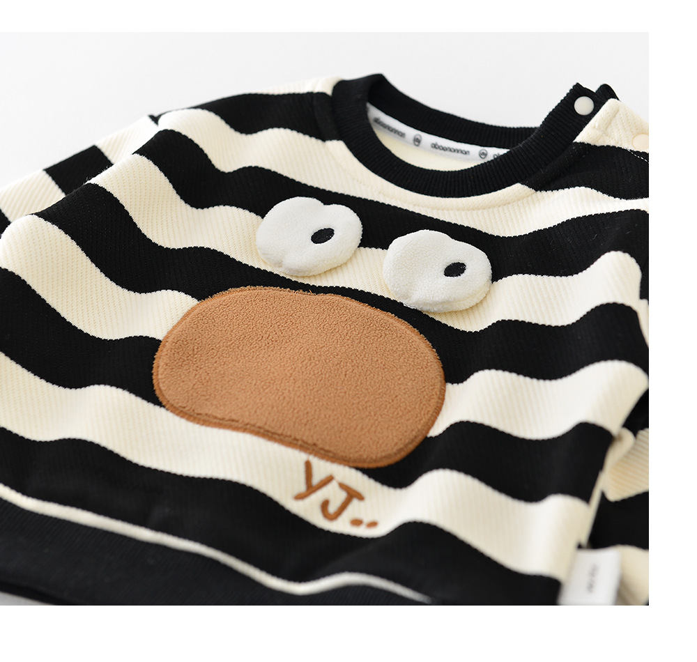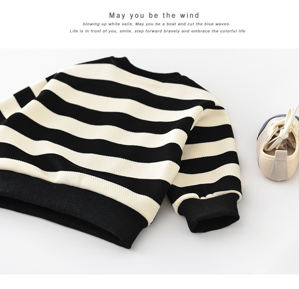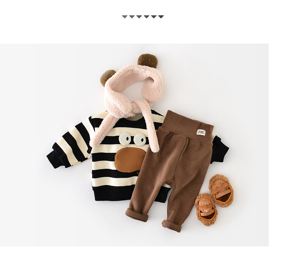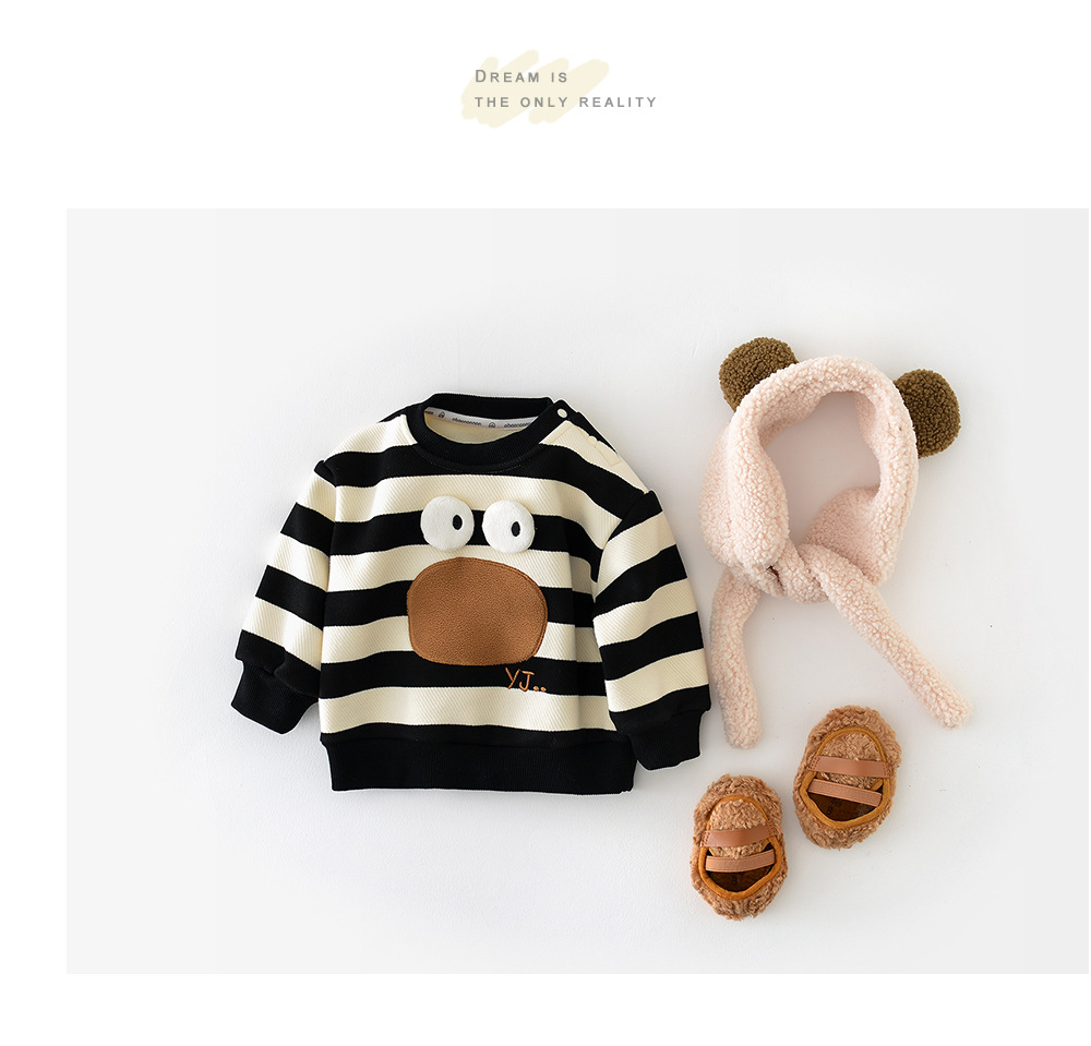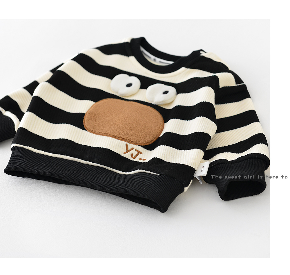 소년과 소녀 기모 스웨터 신생아 아기 서양 스타일 만화 겨울 옷 원피스 캐시미어 아기 캐주얼 탑 긴 소매 스트라이프스토어 가기