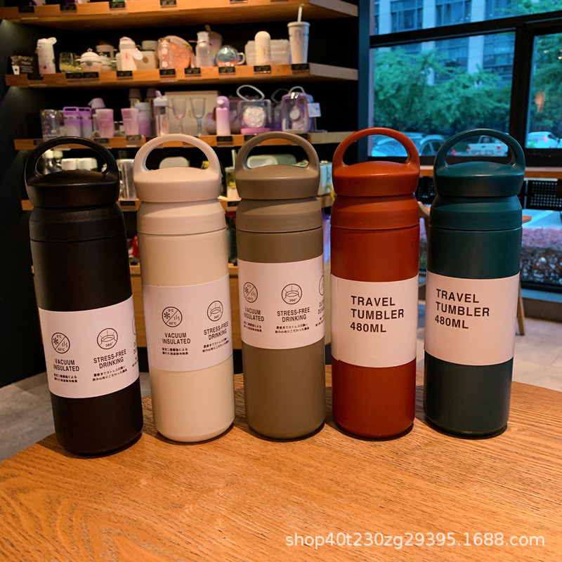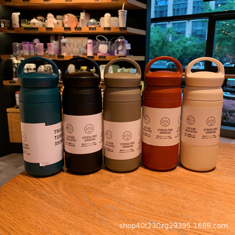 크로스보더 304 일본산 스테인리스 보온병 하라주쿠 커피컵 야외 휴대용 심플 핸드스트랩 학생컵스토어 가기