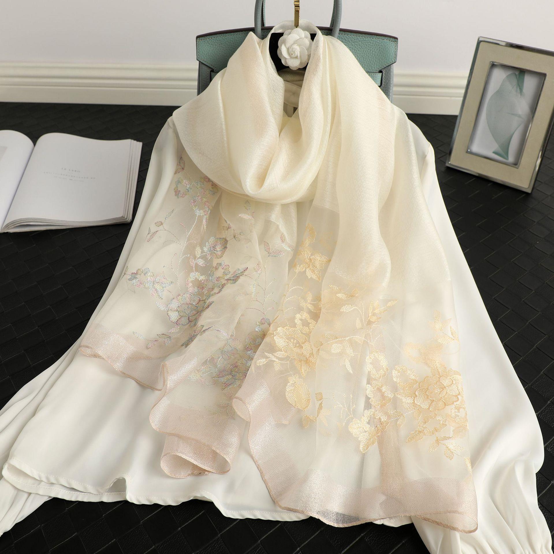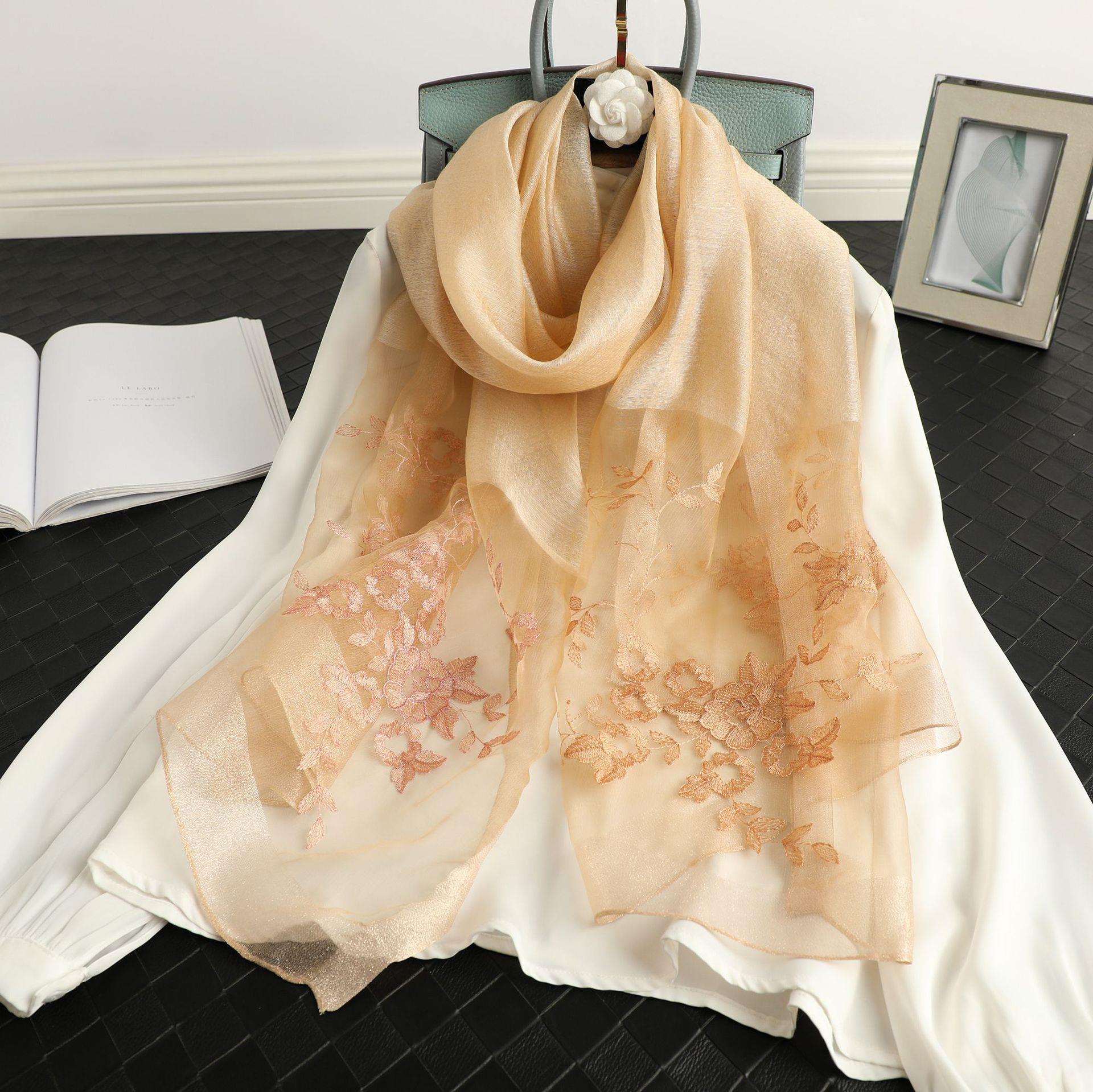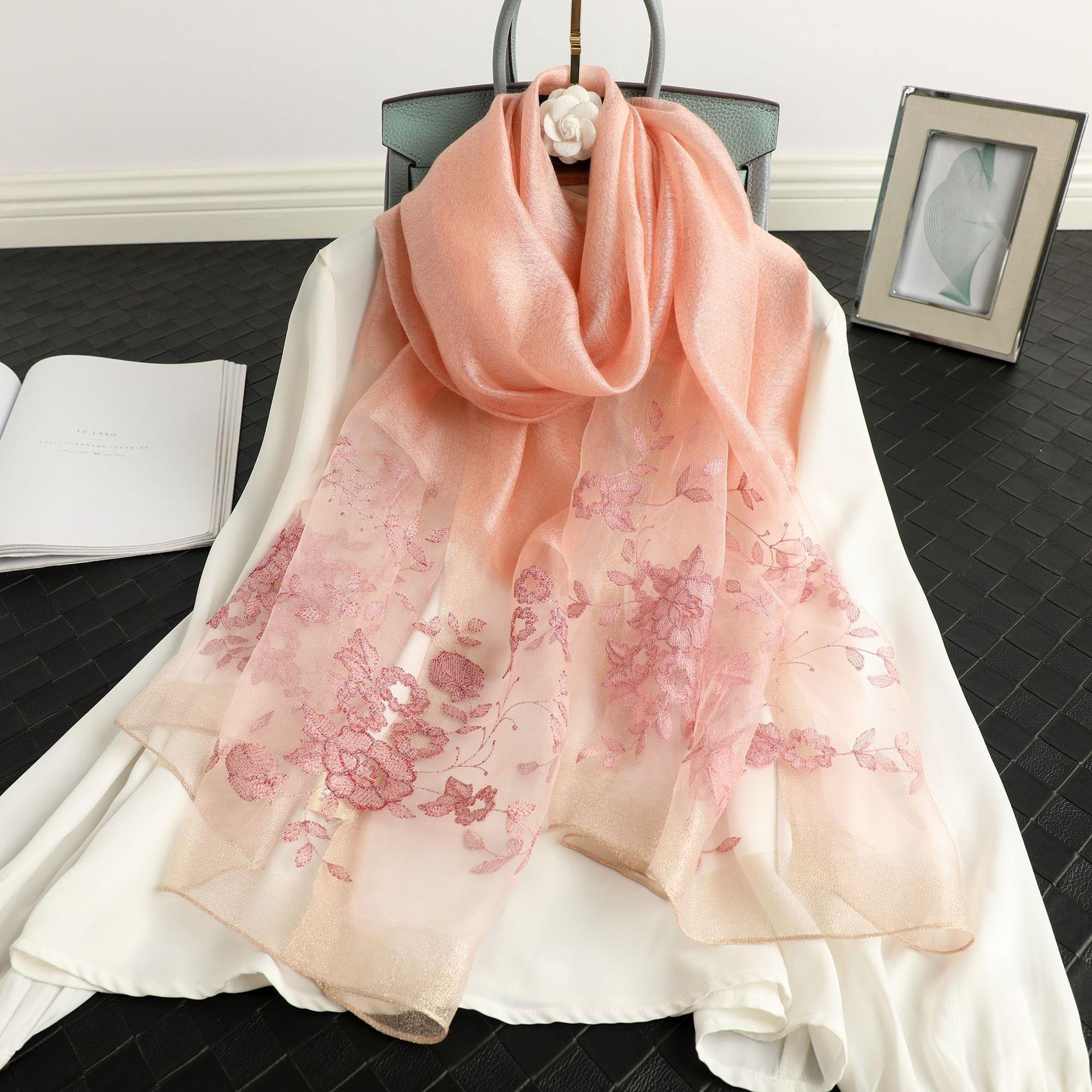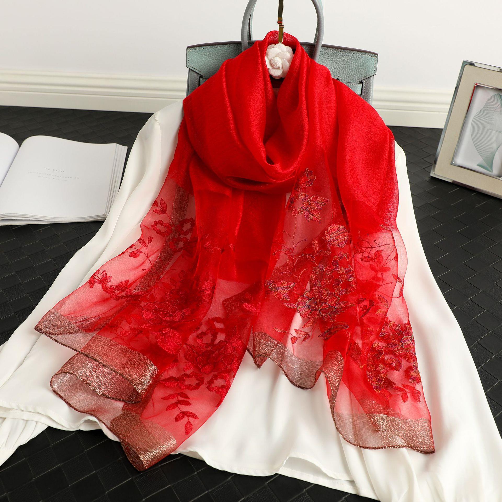 봄과 가을 새로운 뽕나무 실크 스카프 베고니아 꽃 실크 자수 스카프 여성 울 스카프 여성 숄 도매스토어 가기