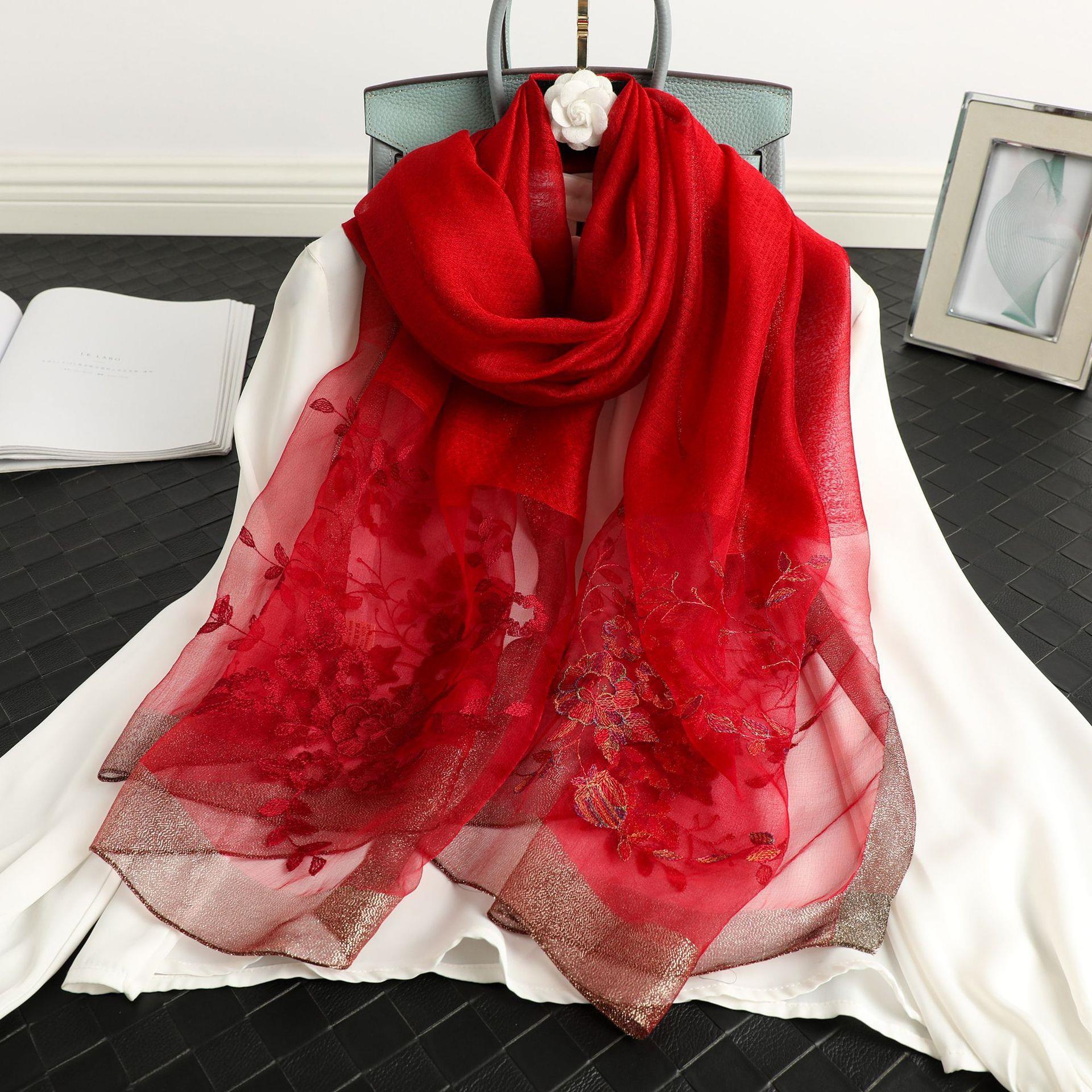 봄과 가을 새로운 뽕나무 실크 스카프 베고니아 꽃 실크 자수 스카프 여성 울 스카프 여성 숄 도매