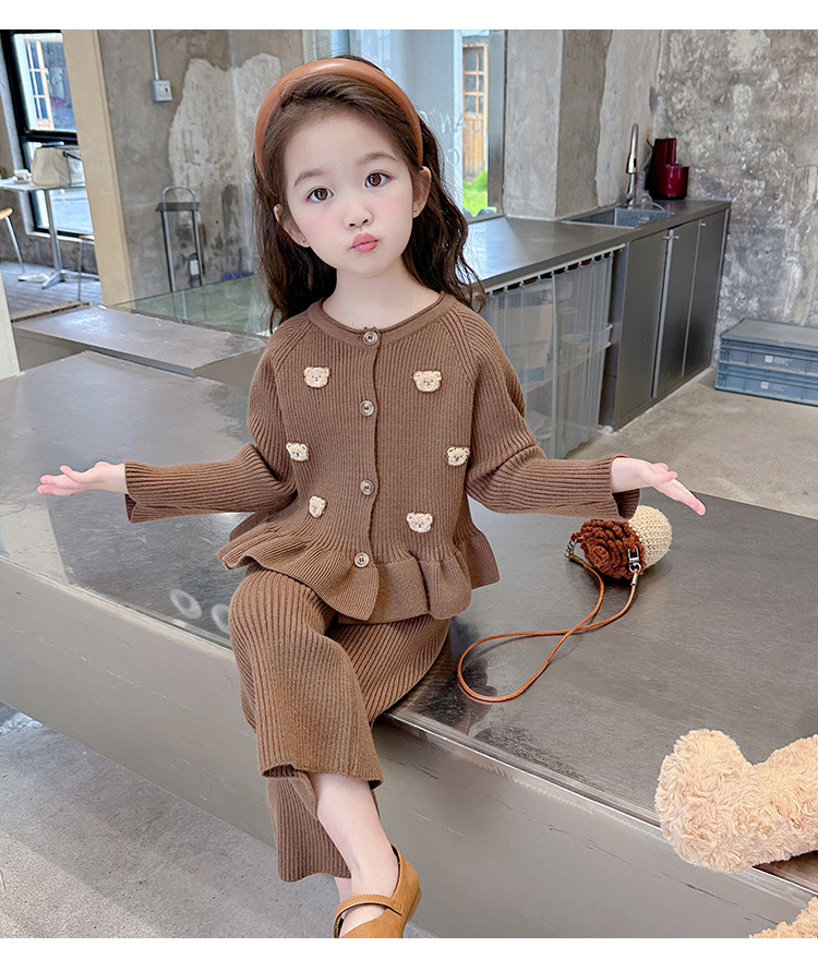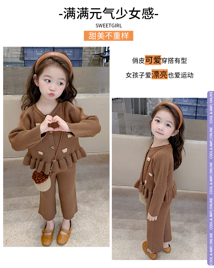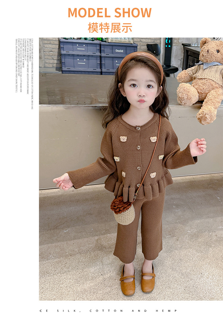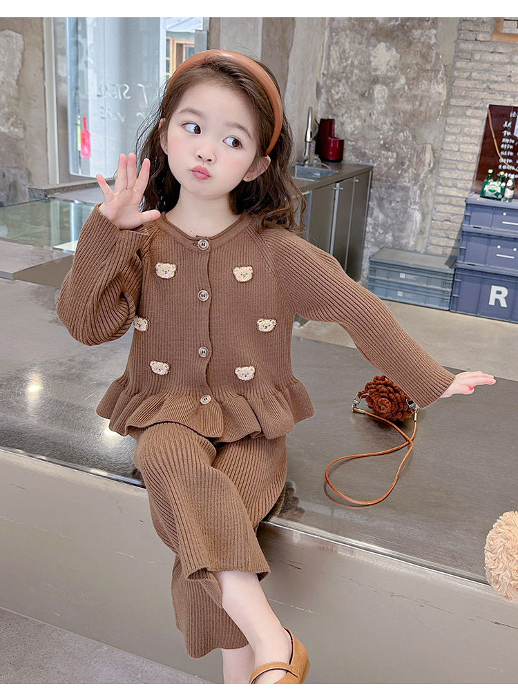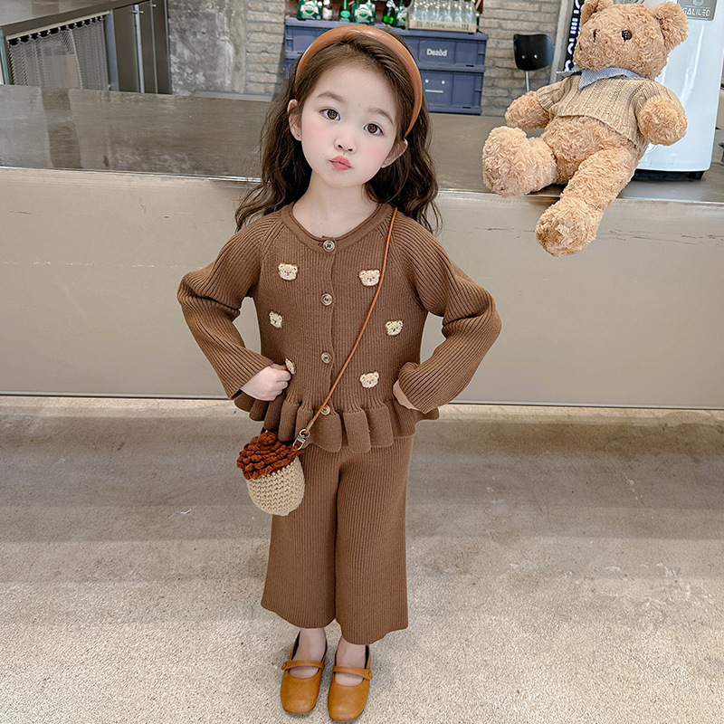 2023 가을 겨울 세트 여아 스웨터 새로운 유행 아동복 새끼 니트 가디건 투피스 유행
