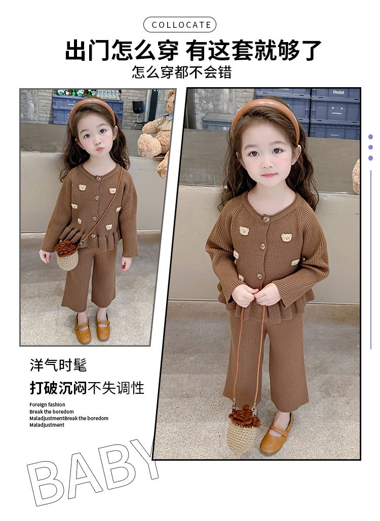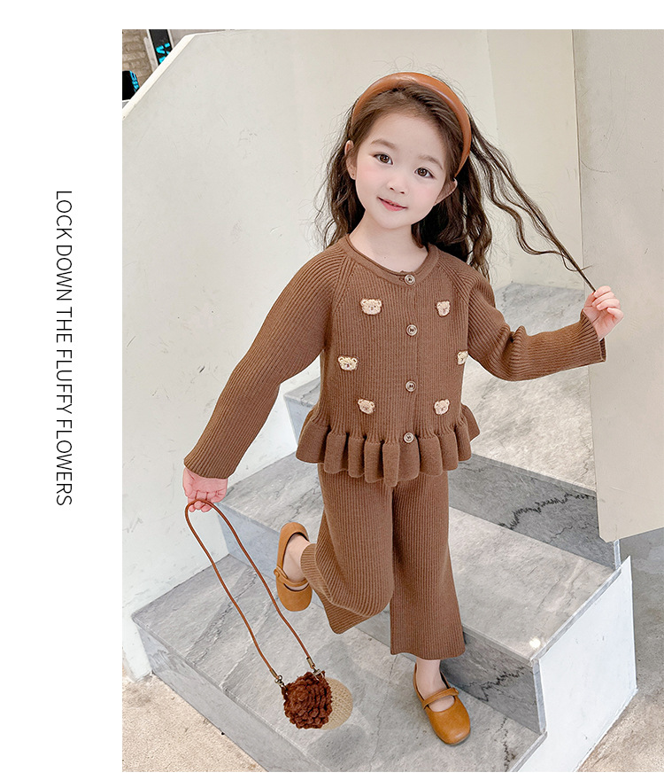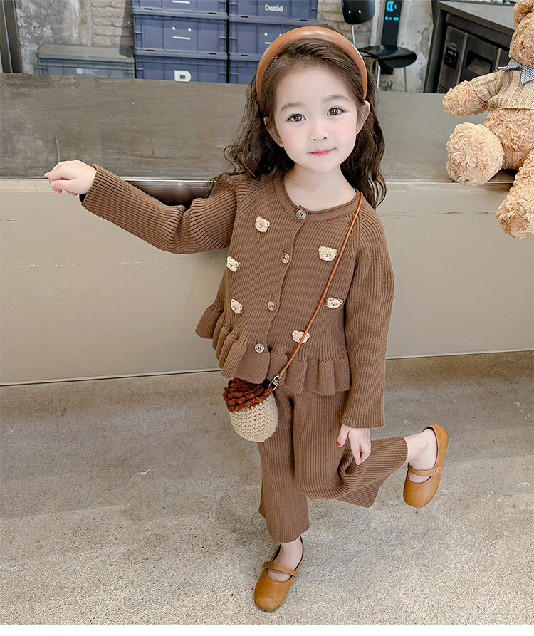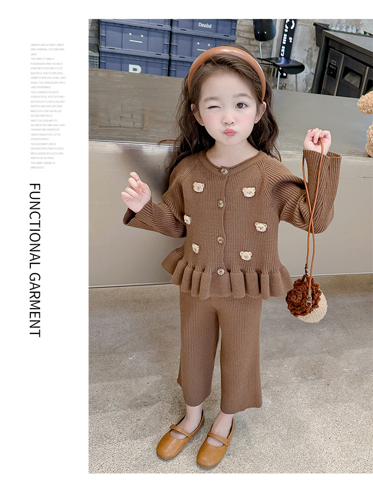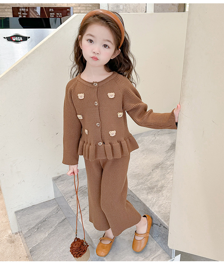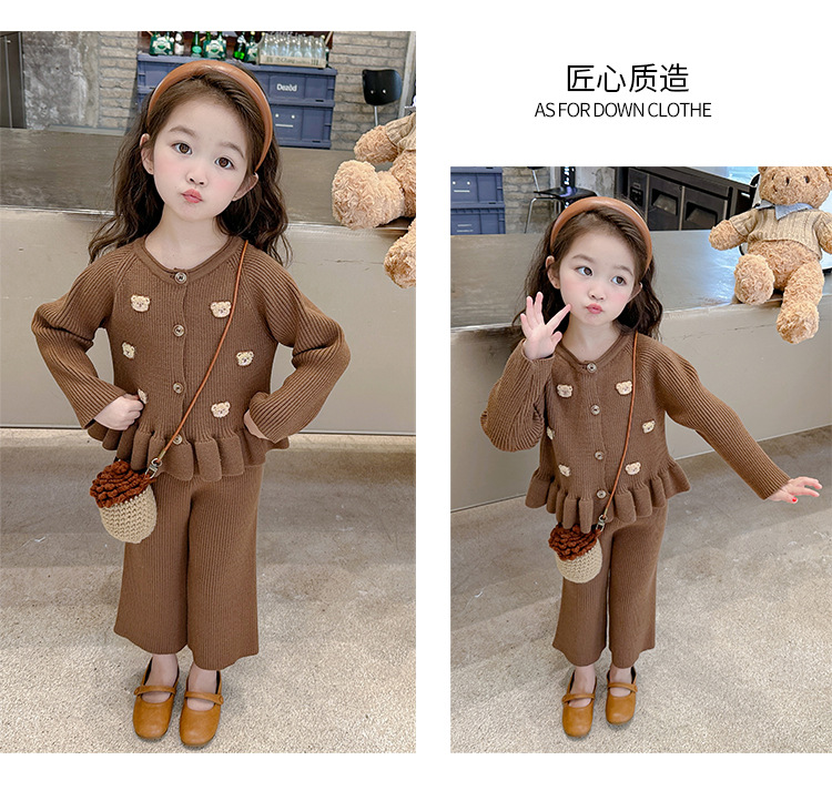 2023 가을 겨울 세트 여아 스웨터 새로운 유행 아동복 새끼 니트 가디건 투피스 유행