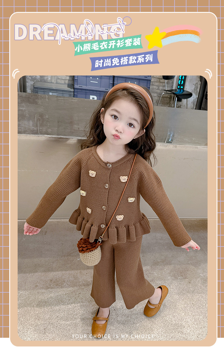 2023 가을 겨울 세트 여아 스웨터 새로운 유행 아동복 새끼 니트 가디건 투피스 유행스토어 가기