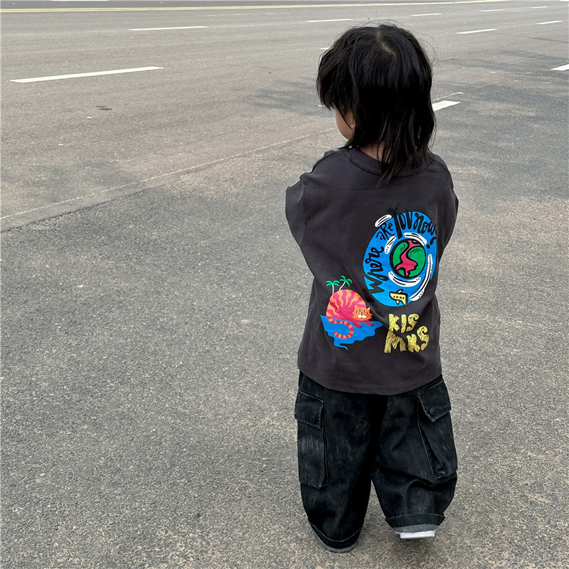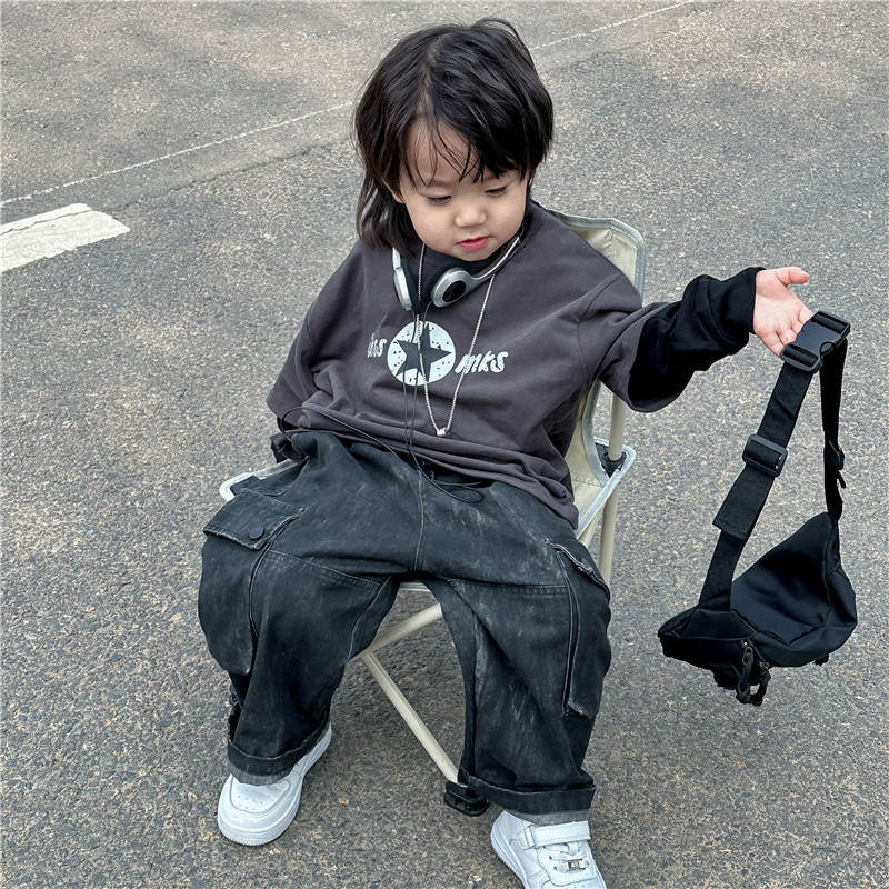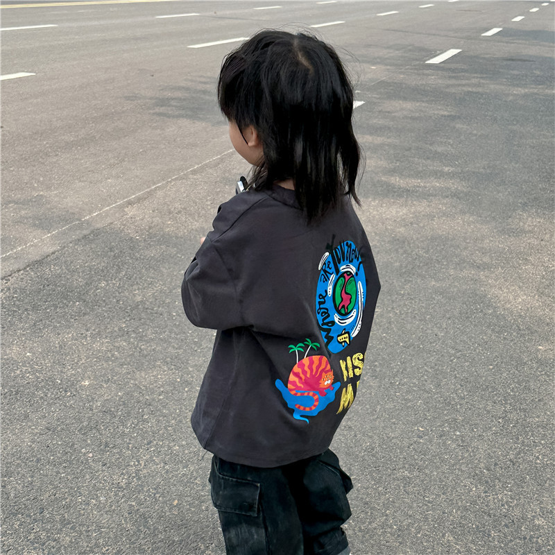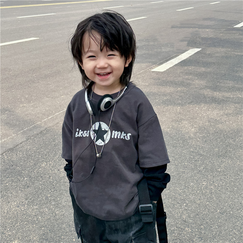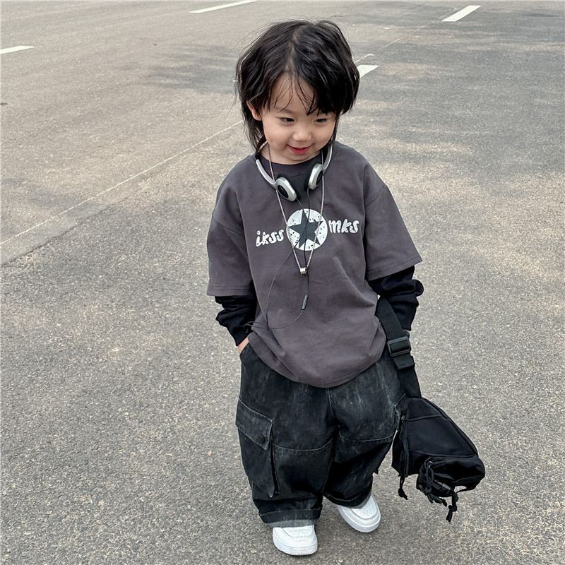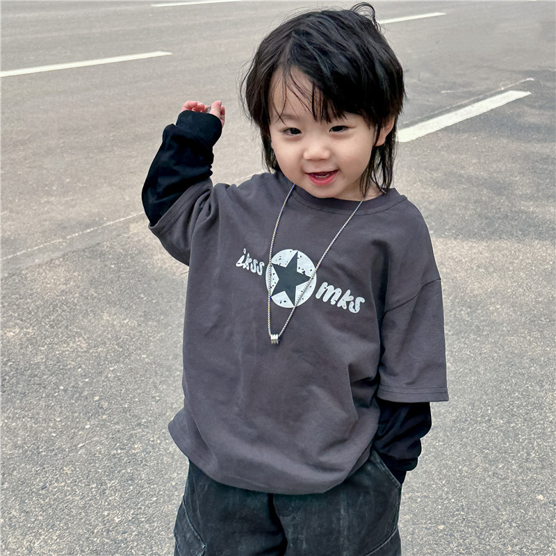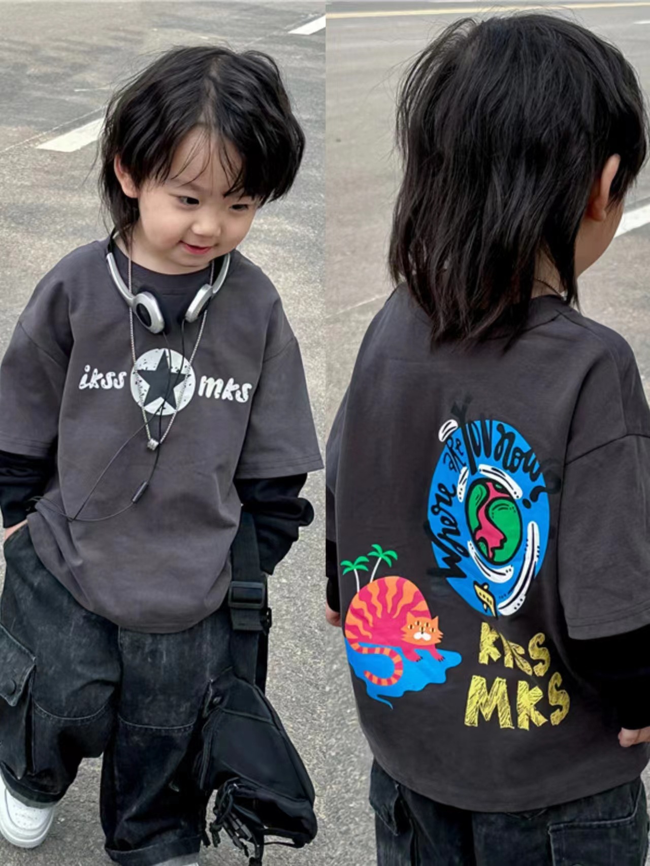 어린이 봄 가을 긴팔 티셔츠 소년용 2025 신상 루즈핏 멋진 투피스 스타일 배색 이너웨어 남아용 상의 트렌디스토어 가기